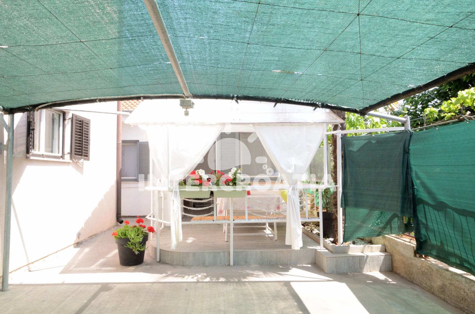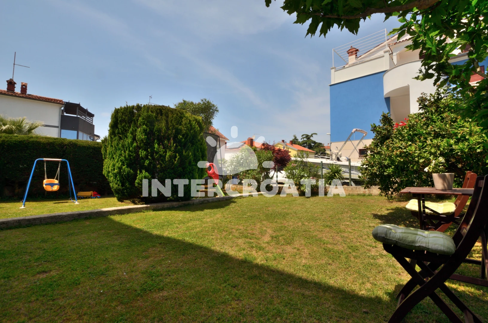Apartmán se nachází 100 m od moře a pláže. Pláž je písčitá a oblázková. Apartmán disponuje bazénem s lehátky pro ubytované hosty. U objektu je k dispozici společná zahrada s posezením a grilem. Parkování je před domem.