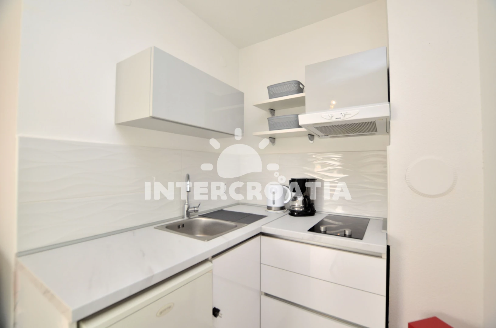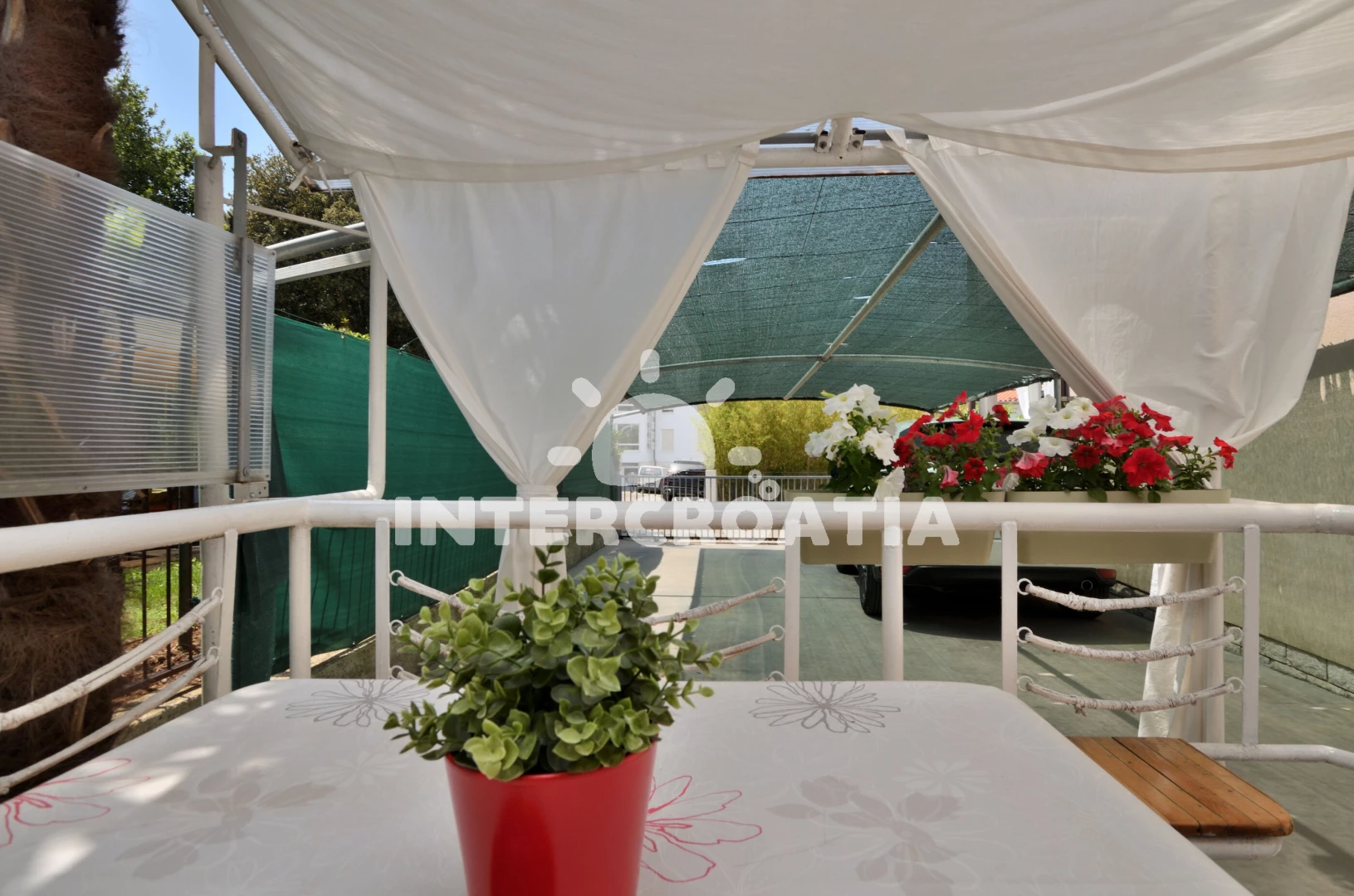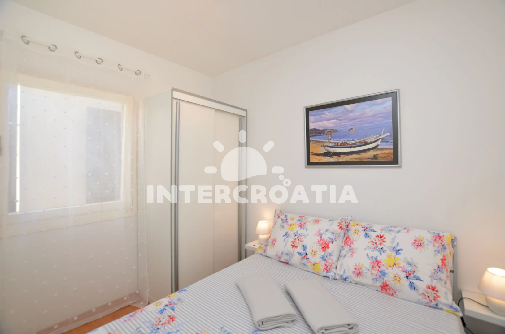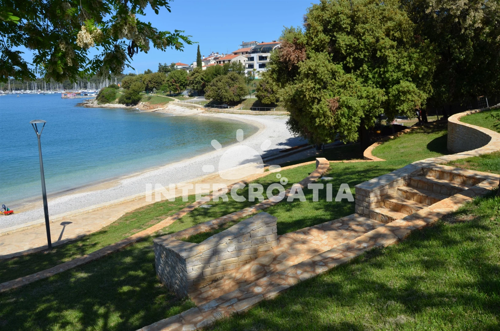 Vzdálenosti: Moře 50 m, pláž 100 m (písčitá a oblázková), centrum 50 m, veřejná doprava 50 m, restaurace 50 m, půjčovna kol 60 m, směnárna 60 m, bar 70 m, supermarket 150 m, půjčovna motorových člunů 150 m, kotviště pro čluny 300 m, potápění 400 m, čerpací stanice 400 m, marina 400 m, mini golf 1 km, tenisové kurty 1 km, pošta 1 km, banka 1 km, lékárna 1,5 km, ambulance 2 km, muzeum 2 km, diskotéka 2 km, trajekt (Pula) 3 km, letiště (Pula) 10 km,