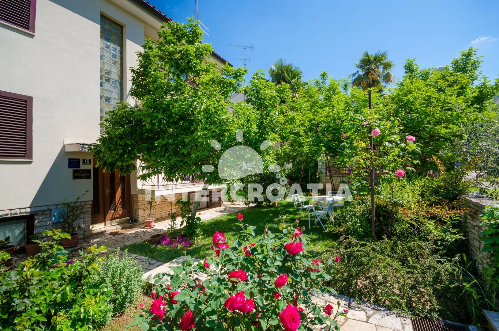 Dvoupodlažní apartmánový dům v klidné rezidenční čtvrti, se zahradou, zelení a venkovním posezením se nachází 5 minut od pláže a moře.