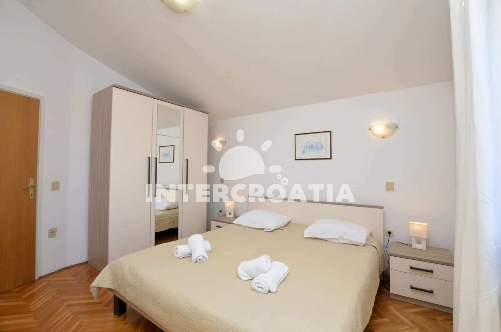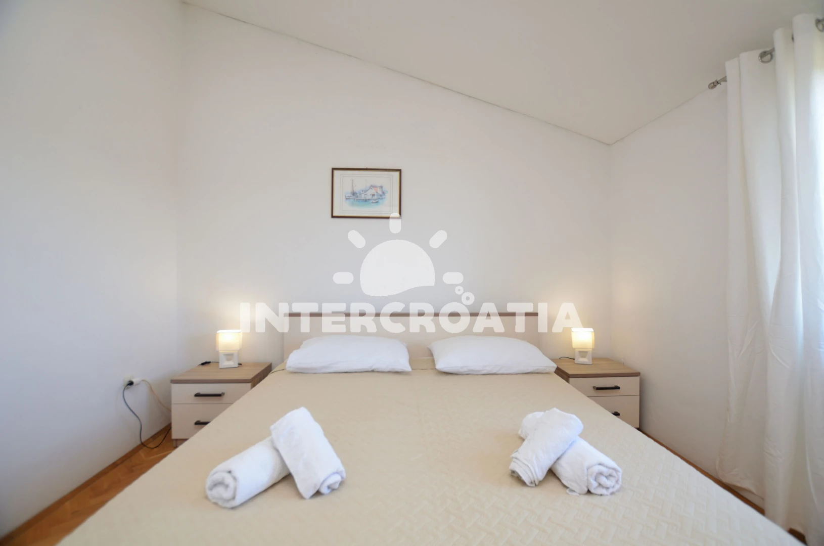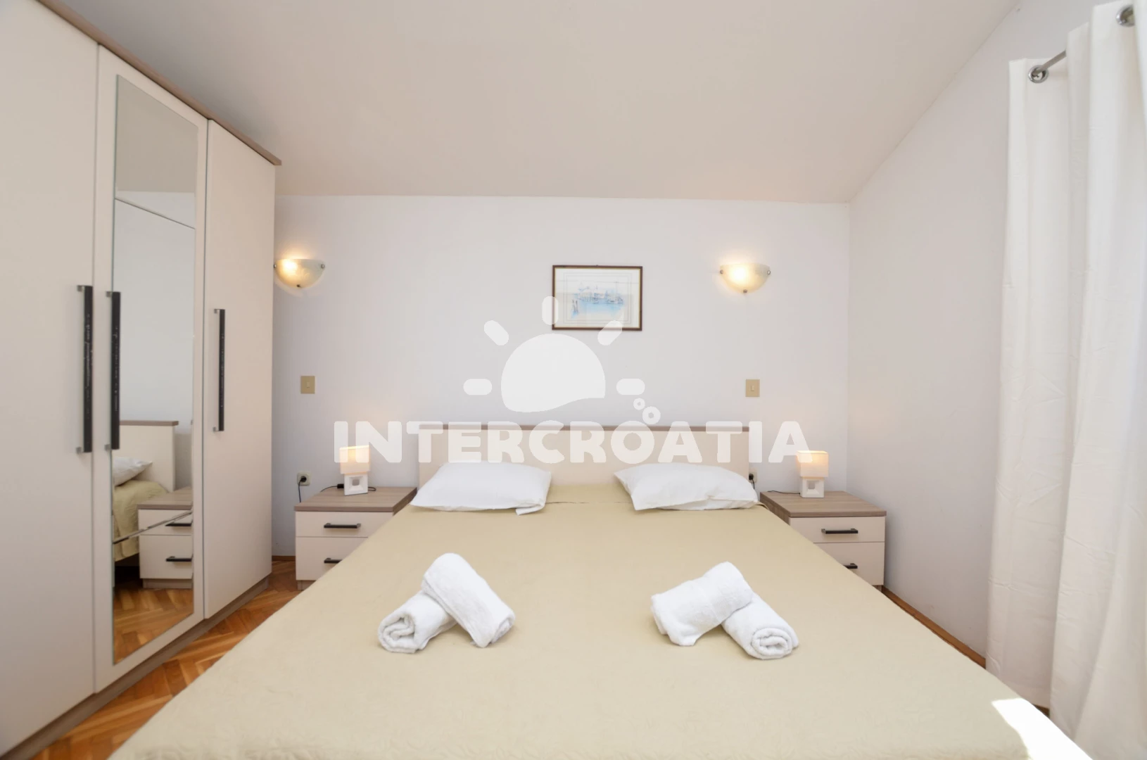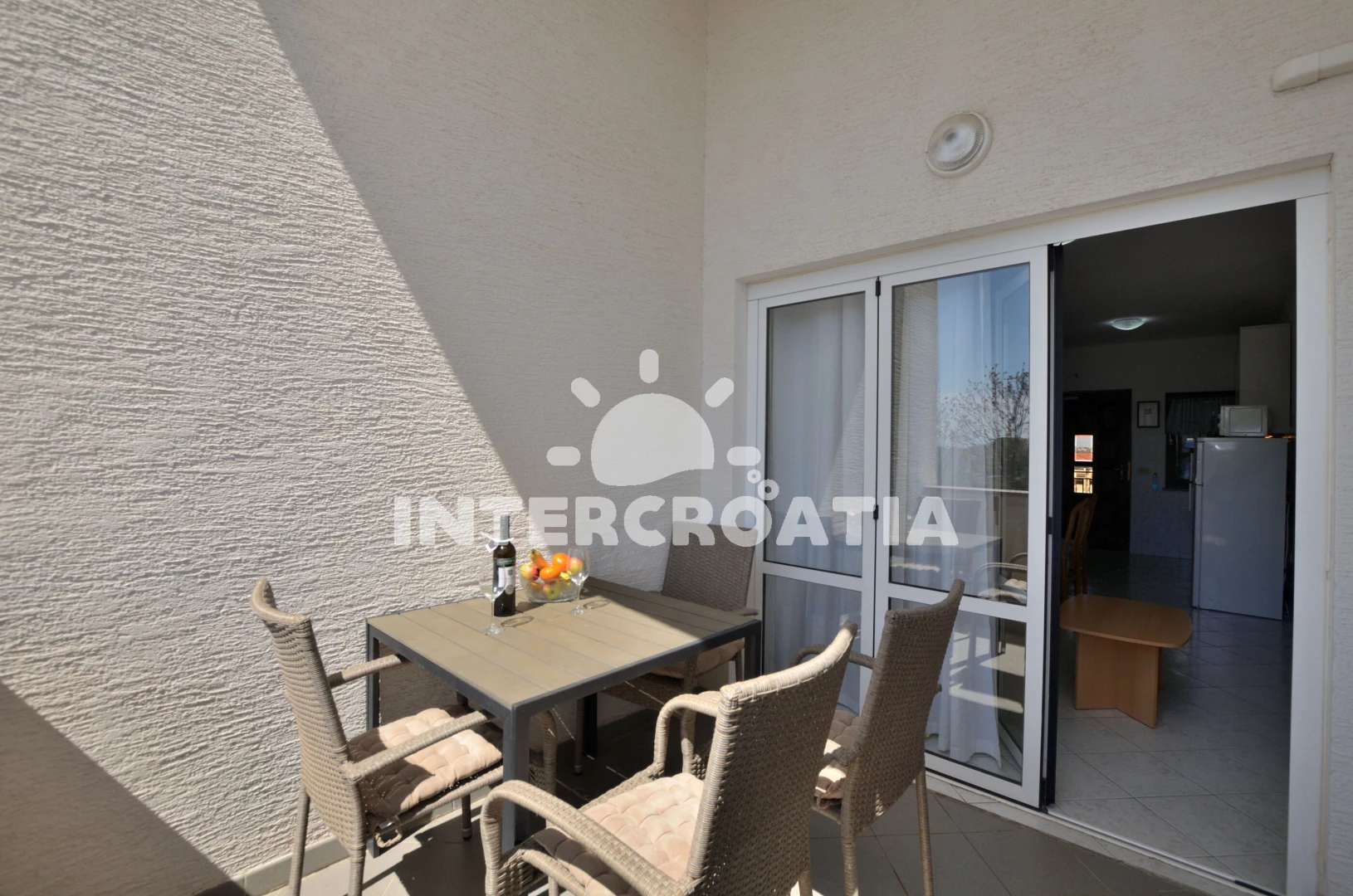 Apartmán se nachází 900 m od moře a pláže. Pláž je skalnatá, oblázková a betonové desky. U objektu je k dispozici společná zahrada s posezením a grilem. Parkování je před domem.