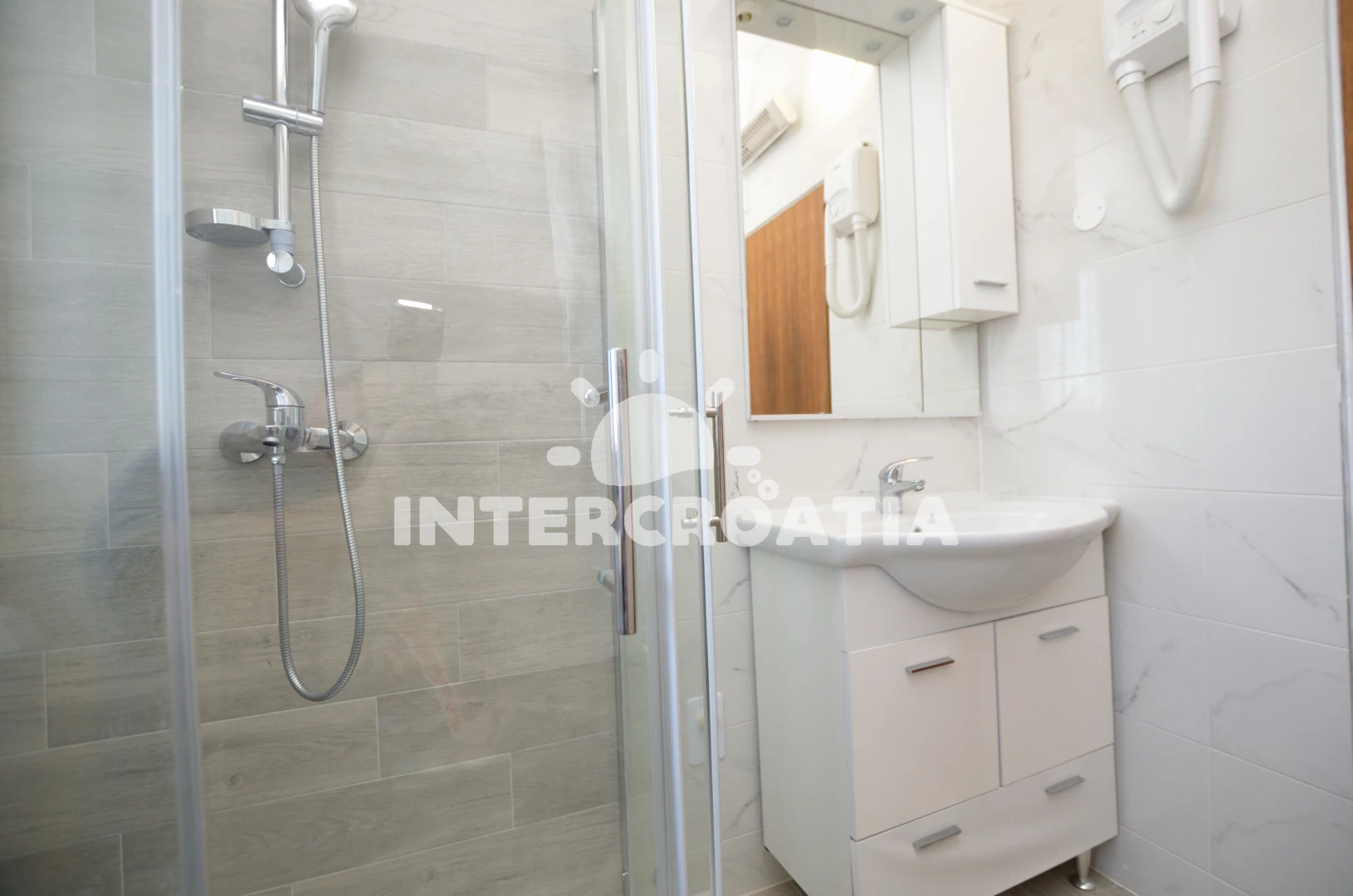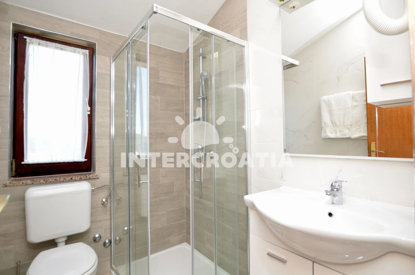 Vzdálenosti: Moře 600 m, pláž 900 m (skalnatá, oblázková a betonové desky), veřejná doprava 50 m, restaurace 50 m, bar 50 m, supermarket 200 m, směnárna 200 m, mini golf 500 m, tenisové kurty 500 m, čerpací stanice 600 m, půjčovna motorových člunů 1 km, potápění 1 km, lékárna 1 km, banka 1 km, pošta 1 km, ambulance 1 km, centrum 1,2 km, trajekt (Pula) 55 km, park Plitvice 55 km, letiště (Pula) 60 km,
