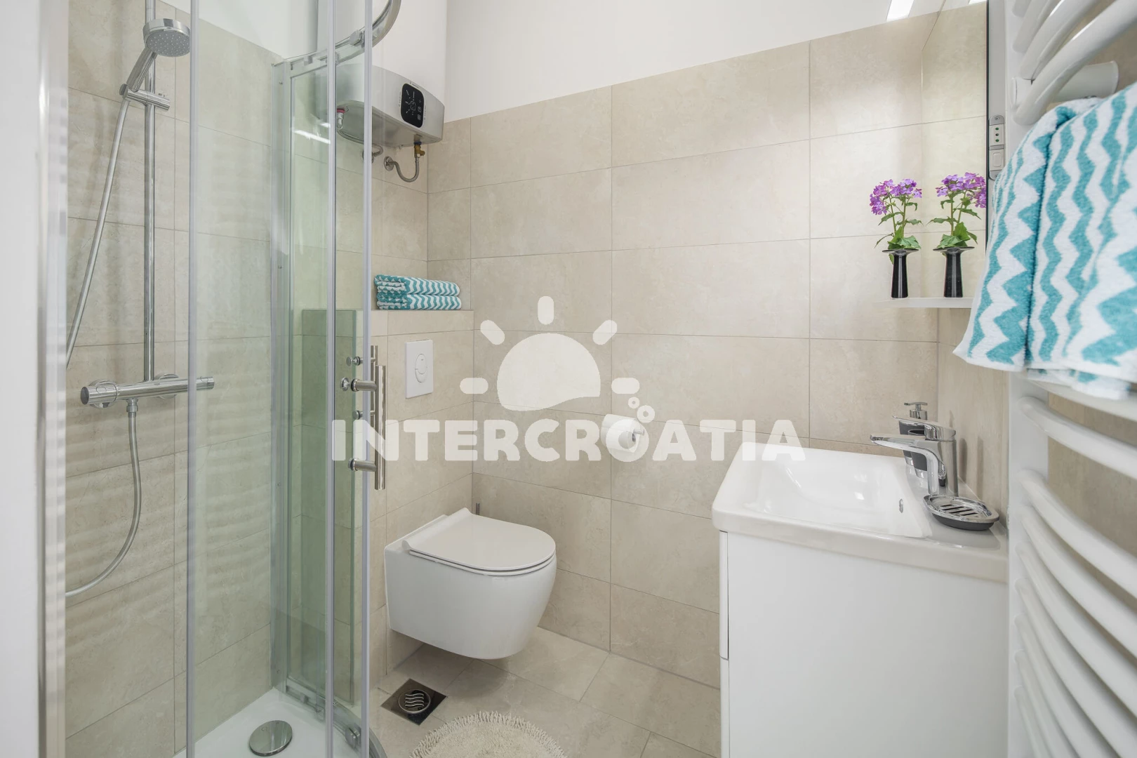 Vzdálenosti: Moře 900 m, pláž 2 km (oblázky), ambulance 300 m, bar 300 m, směnárna 500 m, supermarket 500 m, veřejná doprava 500 m, restaurace 500 m, centrum 500 m, lékárna 700 m, banka 900 m, pošta 900 m, čerpací stanice 1 km, trajekt (Rovinj) 36 km, park Plitvice 55 km, letiště (Pula) 57 km,
