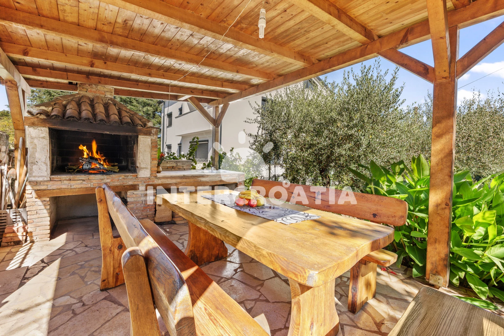 Apartmán se nachází 1200 m od moře a pláže. Pláž je skalnatá, oblázková a betonové desky. U objektu je k dispozici společná zahrada s posezením a grilem.