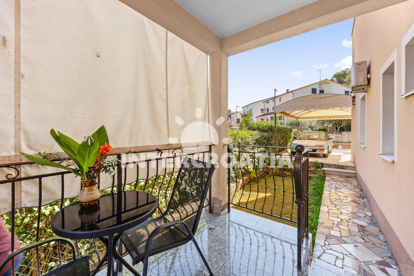 Vzdálenosti: Moře 700 m, pláž 1,2 km (skalnatá, oblázková a betonové desky), restaurace 200 m, supermarket 500 m, bar 500 m, centrum 700 m, půjčovna kol 1,5 km, čerpací stanice 1,5 km, banka 1,5 km, marina 1,5 km, potápění 1,5 km, mini golf 1,5 km, půjčovna motorových člunů 1,5 km, diskotéka 1,5 km, muzeum 1,5 km, pošta 1,5 km, směnárna 1,5 km, ambulance 1,5 km, lékárna 1,5 km, tenisové kurty 2 km, veřejná doprava 2 km, letiště (Pula) 55 km, trajekt (Pula) 55 km,