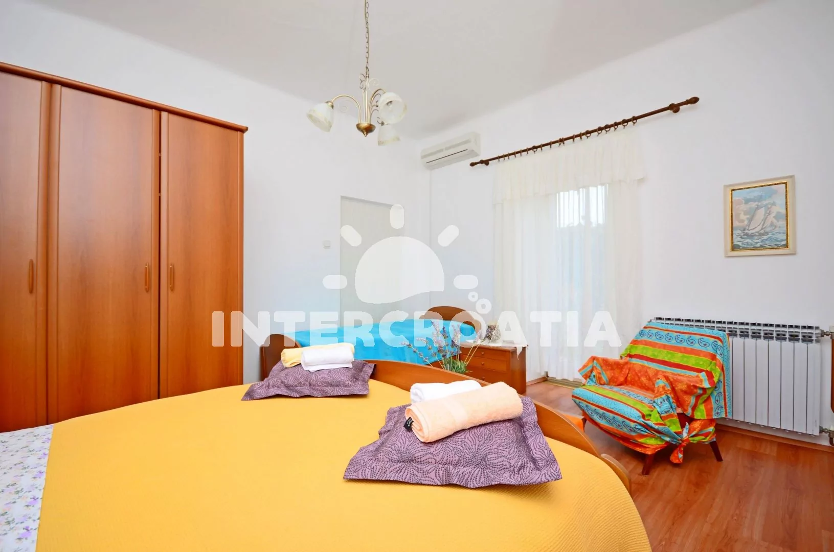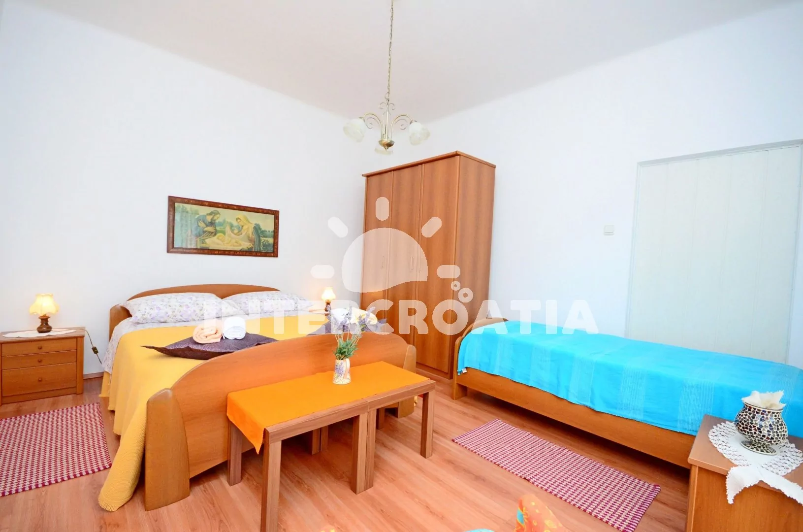 Apartmán pro 2 až 3 osoby v přízemí domu s posezením na terase a výhledem do zahrady. Kuchyň je vybavena pracovní deskou, nádobím, plynovým sporákem, digestoří, troubou, kávovarem, toustovačem, lednicí s mrazákem, jídelním stolem a televizí se satelitním programem. Ložnice s jedním manželským dvoulůžkem a jedním jednolůžkem. Koupelna se sprchovým koutem, umyvadlem a wc. K dispozici: klimatizace, WiFi a posezení na terase. Pračka, žehlička a fén k dispozici (služba na požádání).