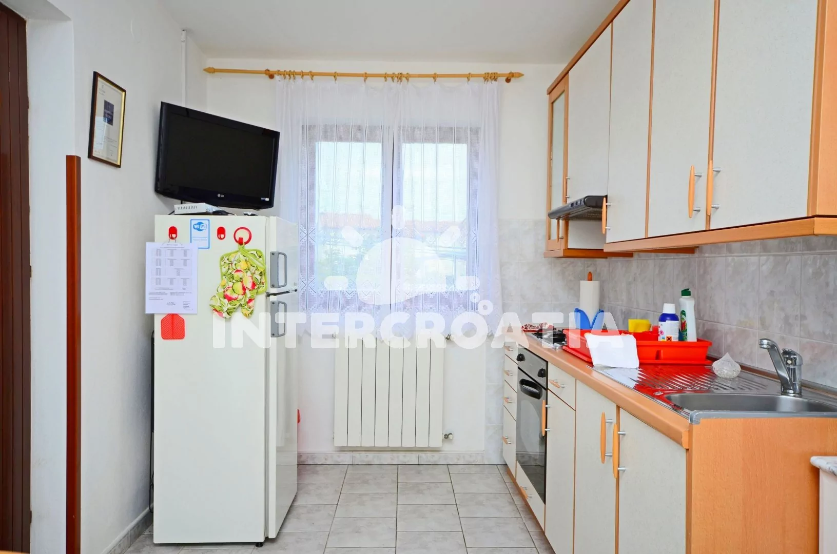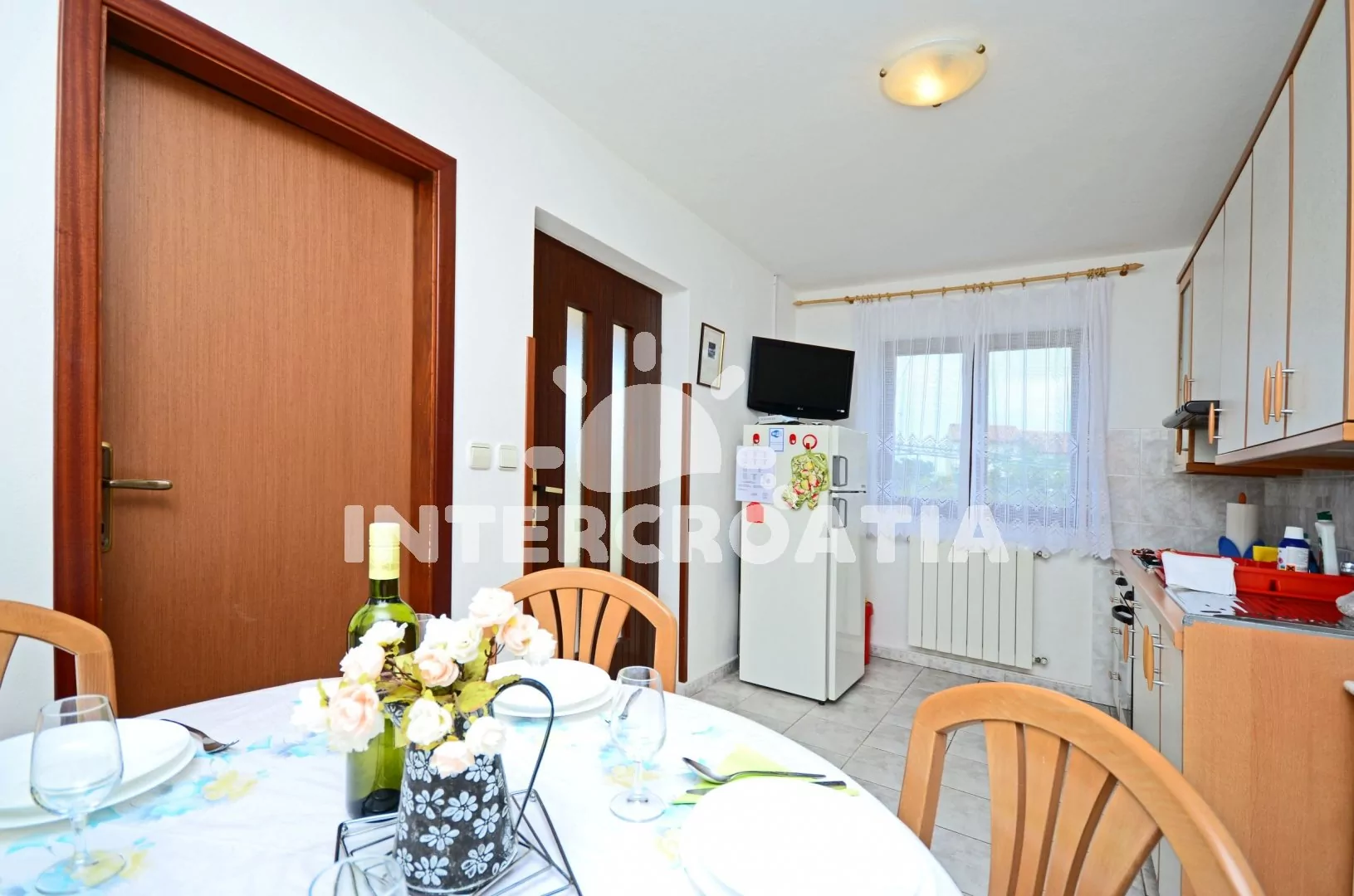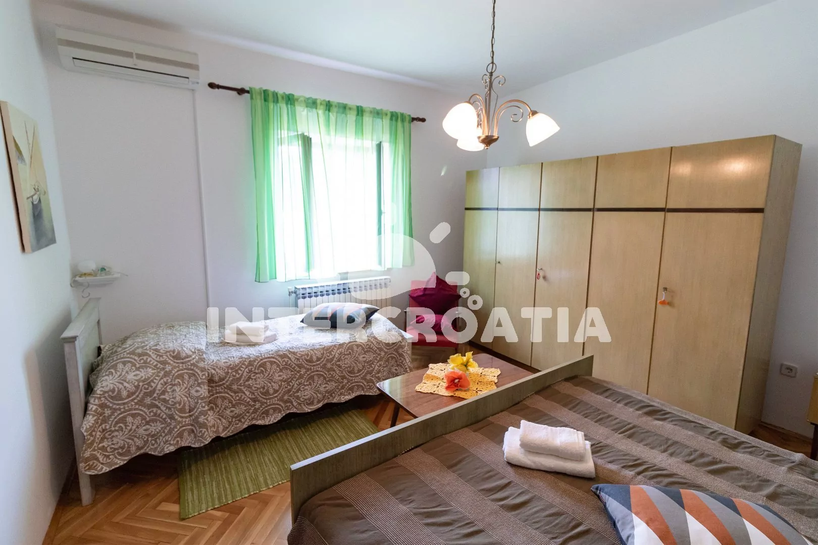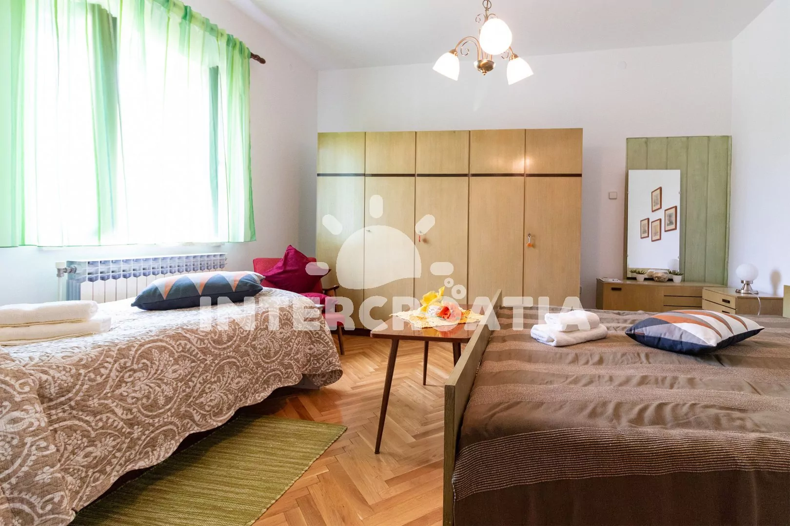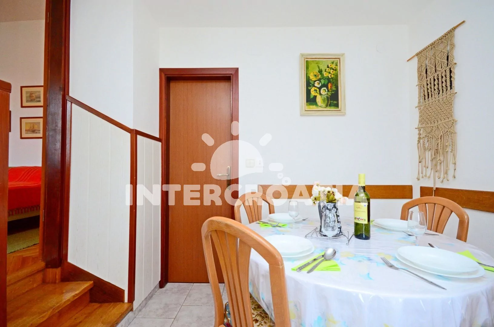 Apartmán pro 4 až 5 osob v přízemí domu s velkou terasou a posezením. Kuchyň je vybavena pracovní deskou, nádobím, sporákem, digestoří, vestavěnou troubou, toustovačem, kávovarem, lednicí s mrazákem,…