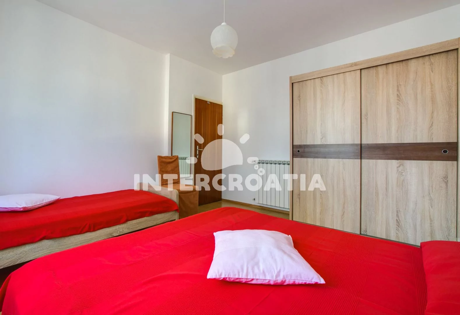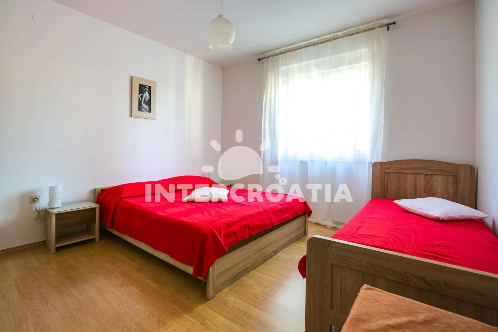 Apartmán (50 m2) s balkonem a venkovním posezením je vhodný pro 3 až 5 osob, nachází se v prvním patře domu. Obývací pokoj je spojený s kuchyní. Kuchyňská linka se sporákem, digestoří, troubou, kávovarem, nádobím a lednicí s mrazákem. Obývací pokoj s jídelním stolem, pohovkou (rozložitelná na extra lůžko pro 2 osoby), televizí se satelitním programem a vstupem na balkon. Ložnice je vybavena jedním dvoulůžkem a jedním jednolůžkem. Koupelna se sprchovým koutem, umyvadlem, fénem, pračkou, bidetem a wc. Hostům je k dispozici parkování u objektu zdarma.