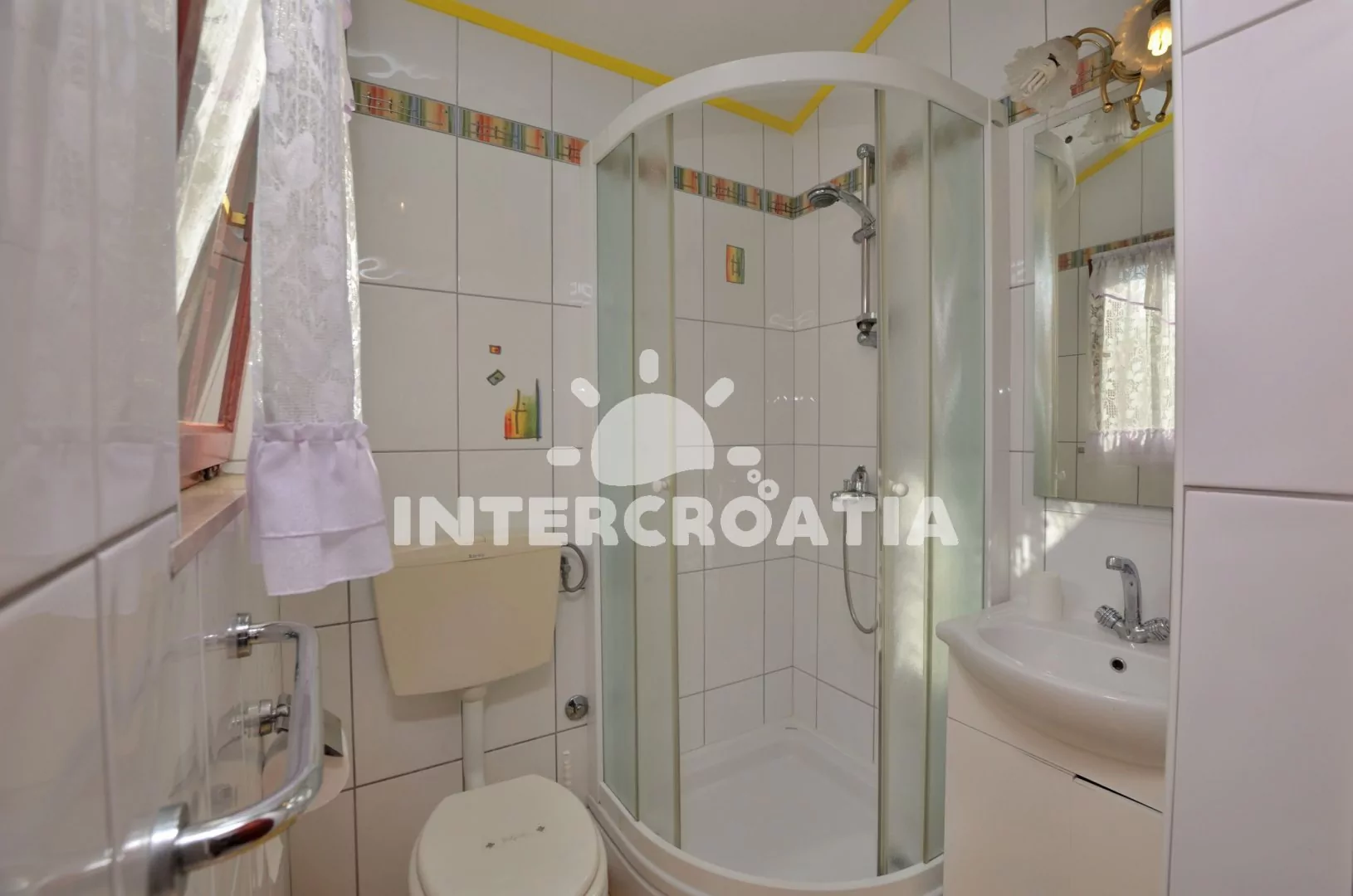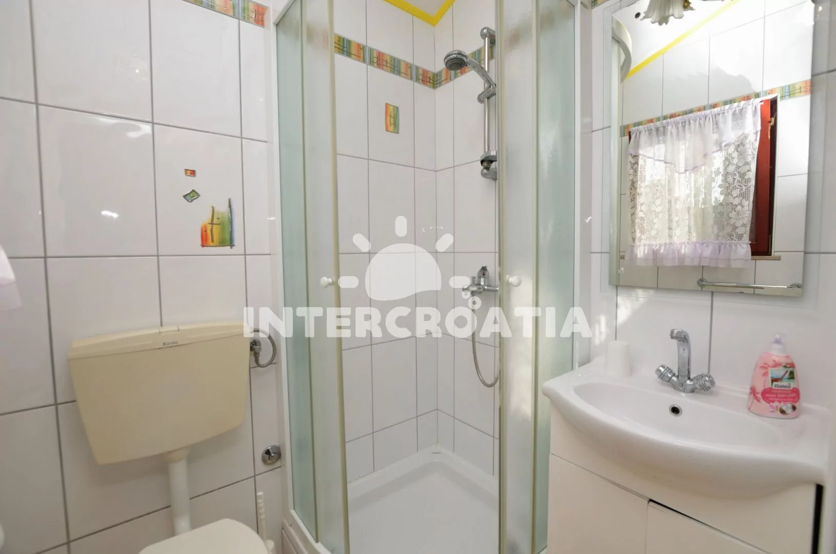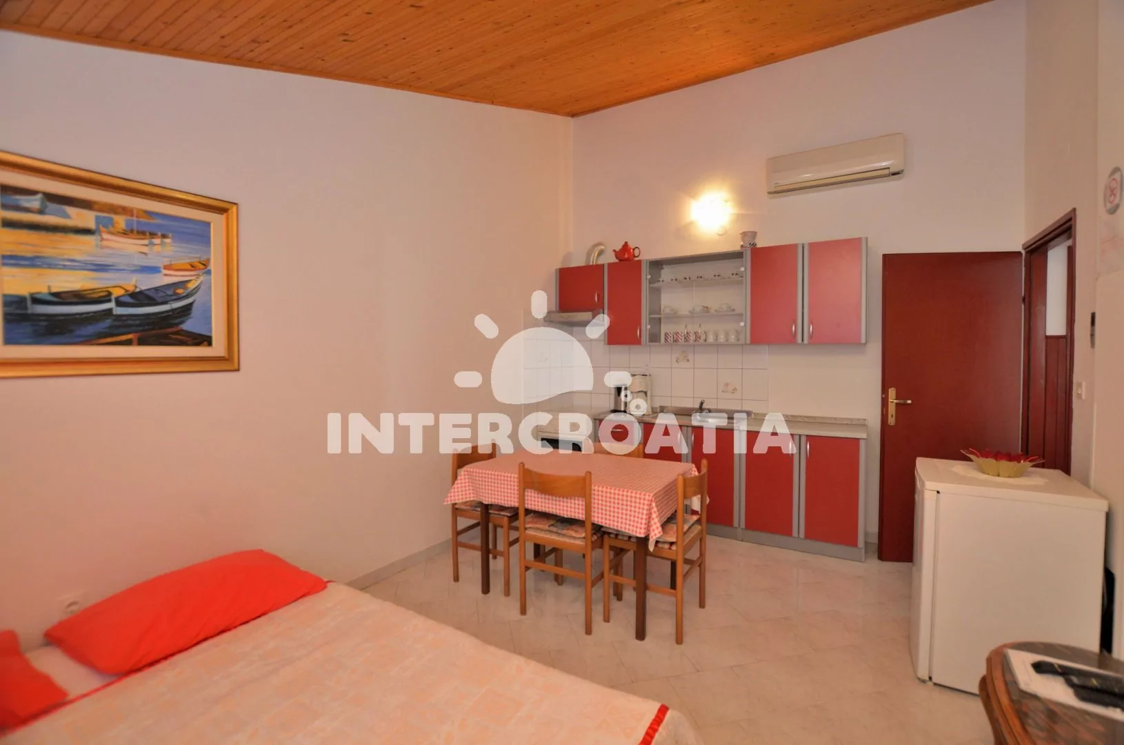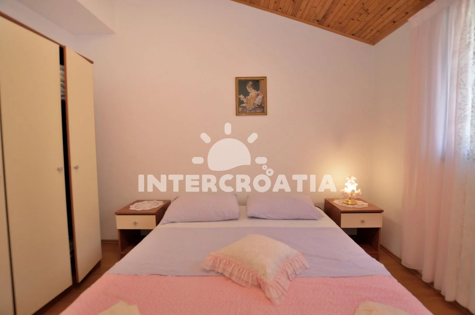 Apartmán (40 m2) s terasou a posezením se nachází v přízemí domu. Apartmán je vhodný pro 2 až 4 osoby. Obývací pokoj je spojený s kuchyní. Kuchyňská linka je vybavena sporákem s troubou, digestoří, rychlovarnou konvicí, toustovačem, kávovarem, nádobím a lednicí s mrazákem. Obývací pokoj s jídelním stolem pro 4 osoby, pohovkou (rozložitelná na extra lůžko pro 2 osoby), televizí se satelitním programem a klimatizací. Ložnice s jedním dvoulůžkem. Koupelna se sprchovým koutem, umyvadlem, fénem a wc. Hostům je k dispozici parkování (150 až 300 m) od objektu zdarma.
