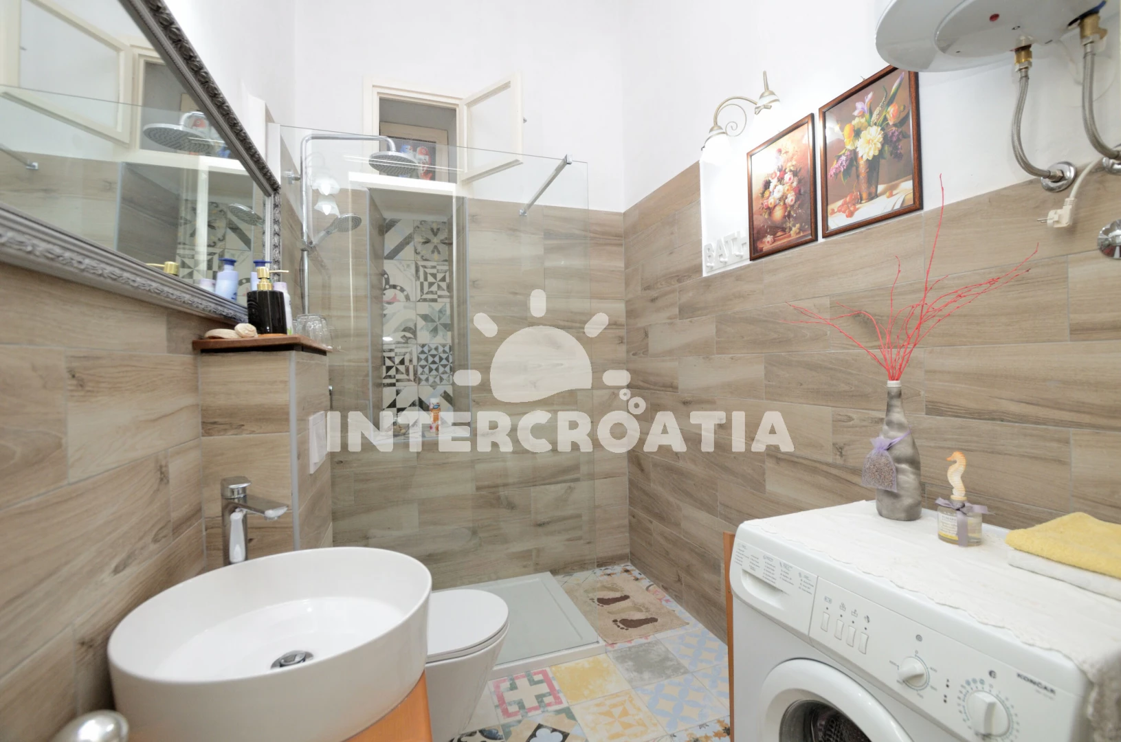 Vzdálenosti: Moře 1,1 km, pláž 2 km (skalnatá, oblázková a betonové desky), supermarket 300 m, veřejná doprava 500 m, pošta 600 m, lékárna 600 m, banka 600 m, centrum 600 m, restaurace 600 m, ambulance 600 m, bar 600 m, směnárna 600 m, čerpací stanice 1 km, marina 2,8 km, trajekt (Pula) 7,1 km, letiště (Pula) 8,9 km, park Plitvice 10,1 km,