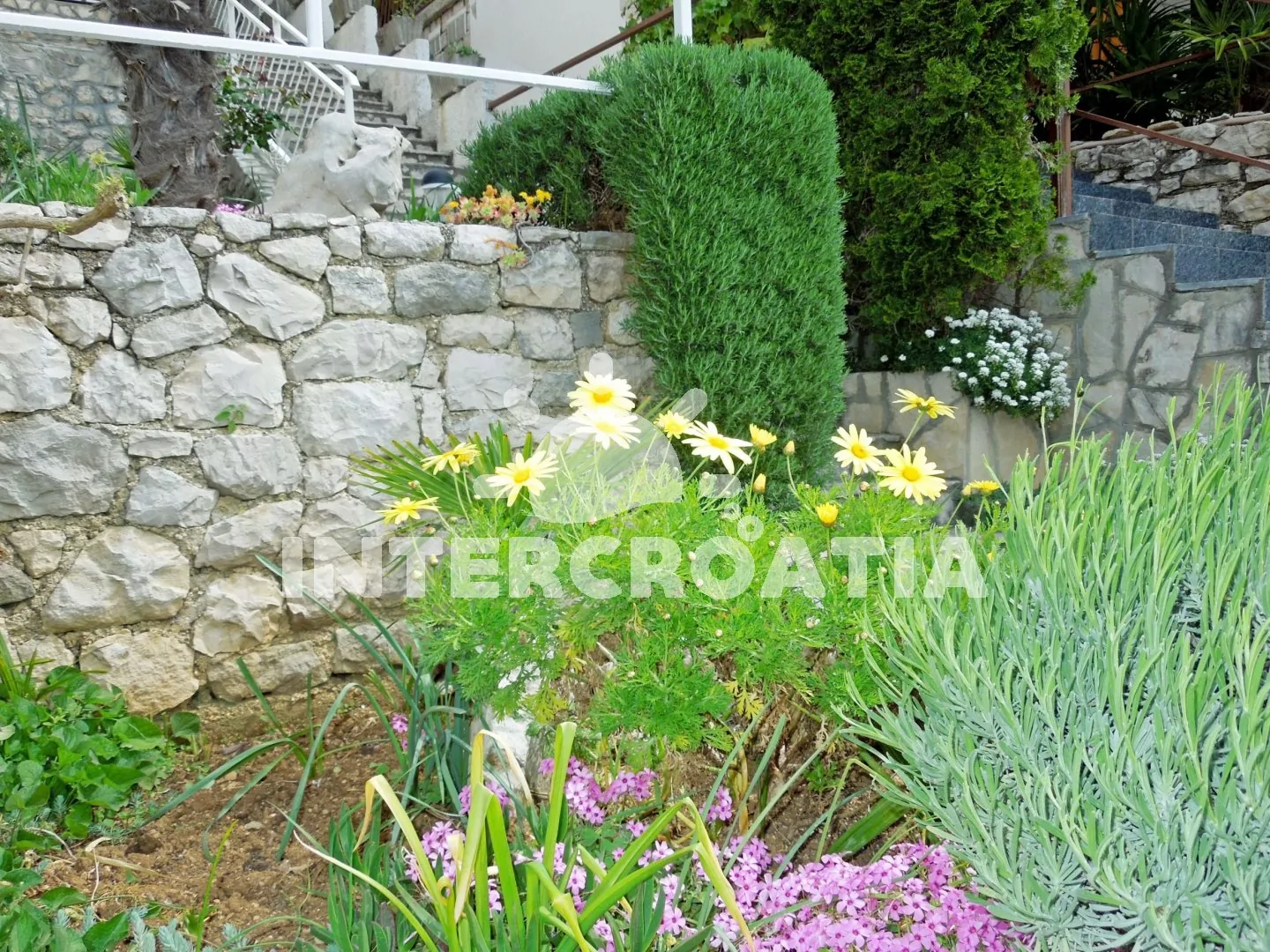 Vila s okrasnou zahradou, výhledem na moře a okolní pohoří. Apartmány s terasami a posezením. Parkování u objektu.