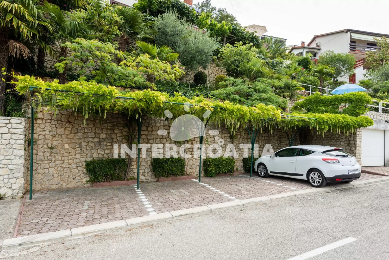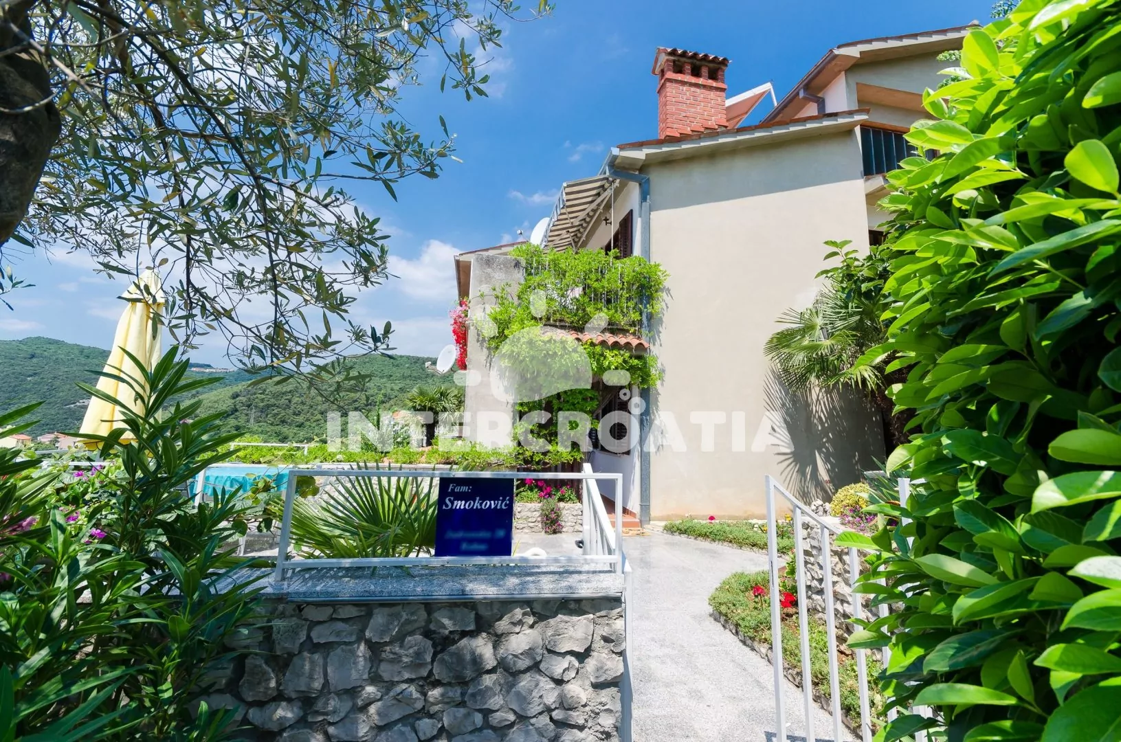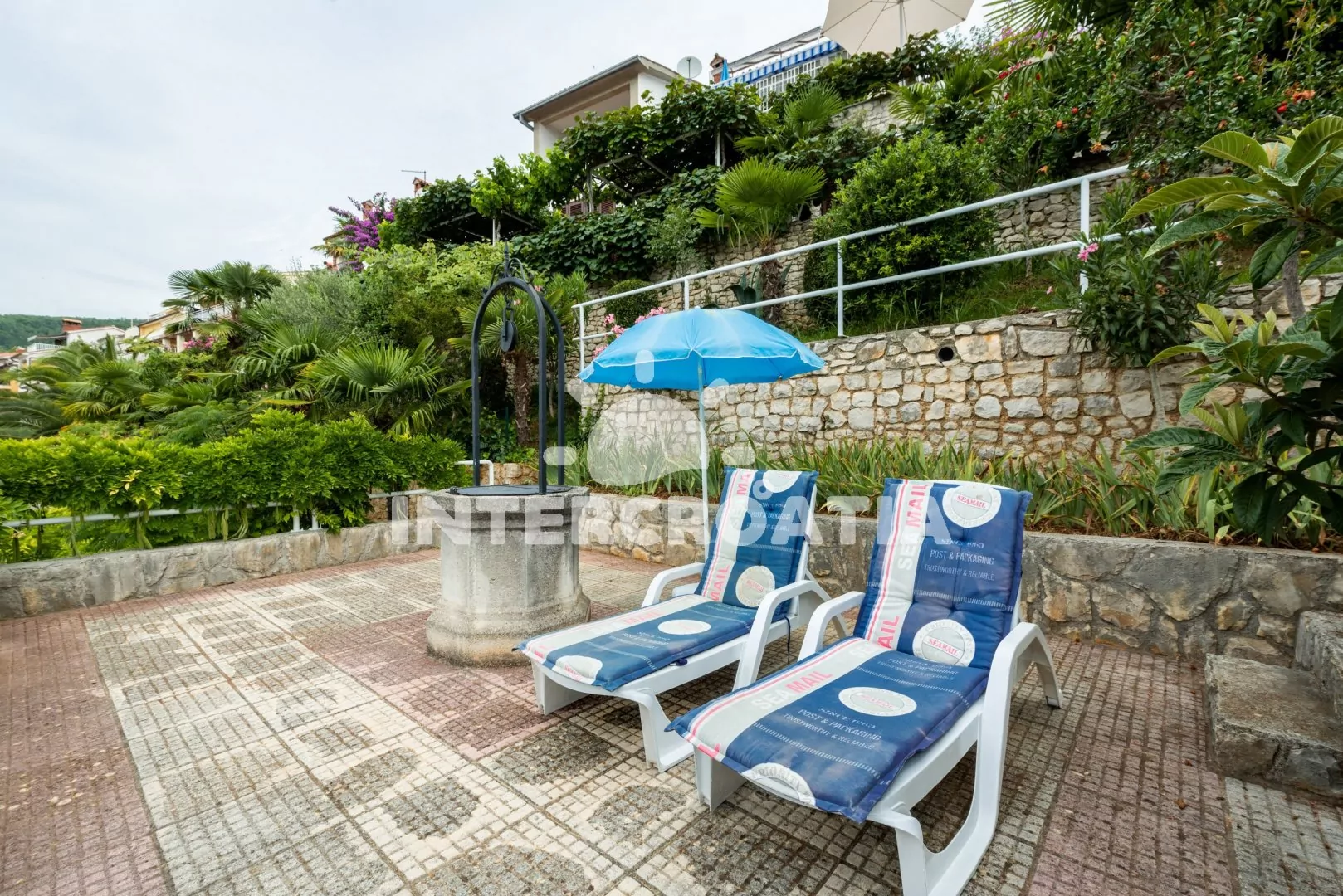 Vilka s upravenou kaskádovitou zahradou, terasou s venkovním posezením a grilem nabízí jedinečný výhled na moře. Příjemné prostředí v klidné ulici a s vlastními parkovacími místy přímo u vily.