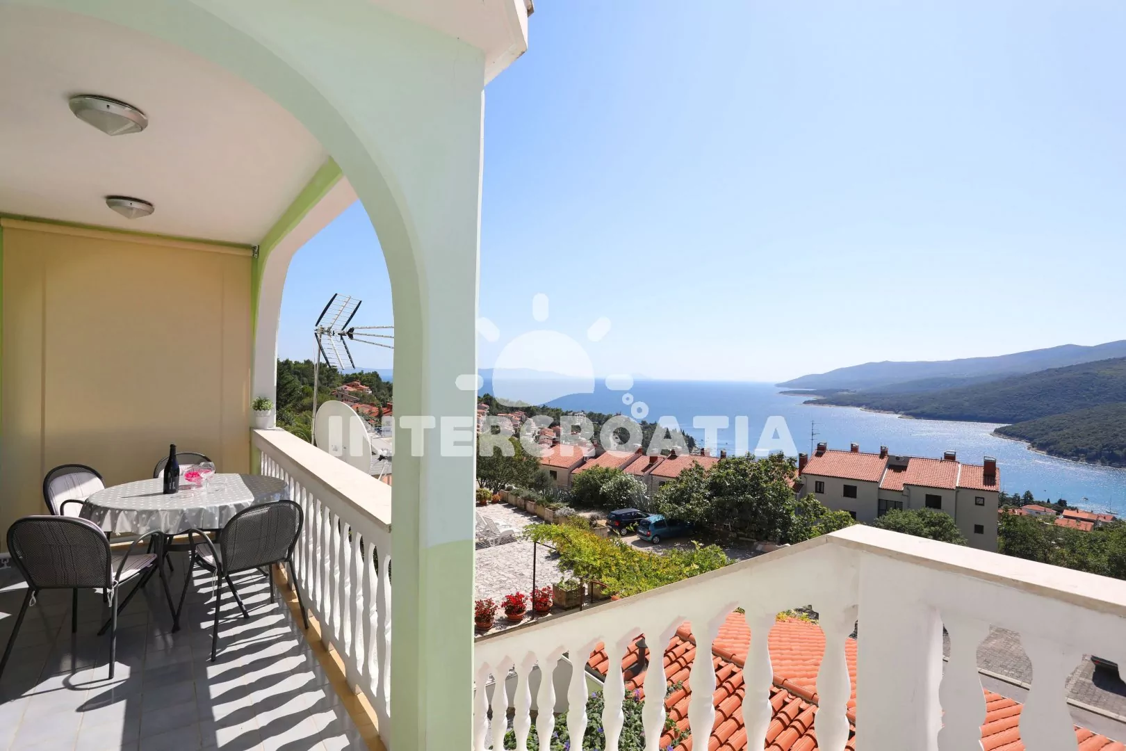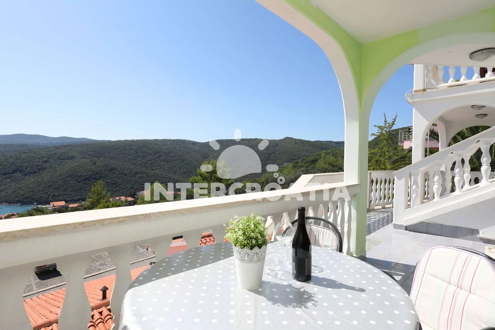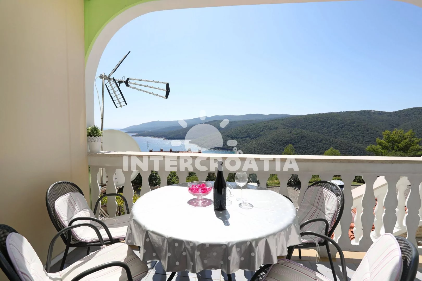 Apartmán (60 m2) s terasou a výhledem na moře se nachází v 1. patře domu a je vhodný pro 4 až 5 osob. Obývací místnost je spojena s kuchyní. Kuchyňská linka je vybavena, digestoří, myčkou na nádobí, mikrovlnnou troubou, kávovarem, nádobím a lednicí s mrazákem. Obývací místnost s jídelním stolem pro 4 osoby, televizí se satelitním programem a klimatizací. První ložnice s dvoulůžkem, přistýlkou a vstupem na terasu. Druhá ložnice s dvoulůžkem. Koupelna s vanou, umyvadlem a wc. Hostům je k dispozici parkování u objektu zdarma.