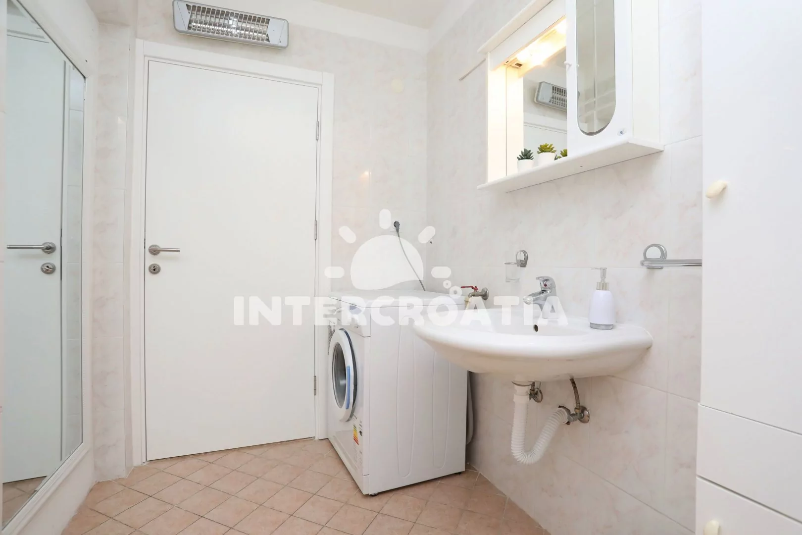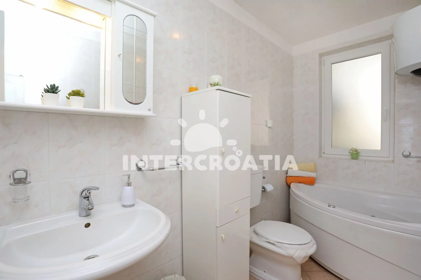 Apartmán (60 m2) s terasou a výhledem na moře se nachází v 1. patře domu a je vhodný pro 4 až 5 osob. Obývací místnost je spojena s kuchyní. Kuchyňská linka je vybavena, digestoří, myčkou na nádobí,…