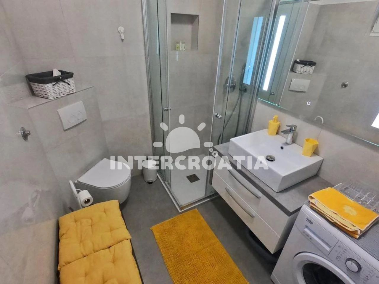 Vzdálenosti: Moře 20 m, pláž 100 m (oblázky), bar 50 m, restaurace 50 m, veřejná doprava 200 m, supermarket 200 m, lékárna 200 m, směnárna 200 m, centrum 200 m, pošta 300 m, banka 300 m, ambulance 300 m, čerpací stanice 300 m, trajekt (Brestova) 27,3 km, letiště (Pula) 43,3 km, park Plitvice 45,4 km,
