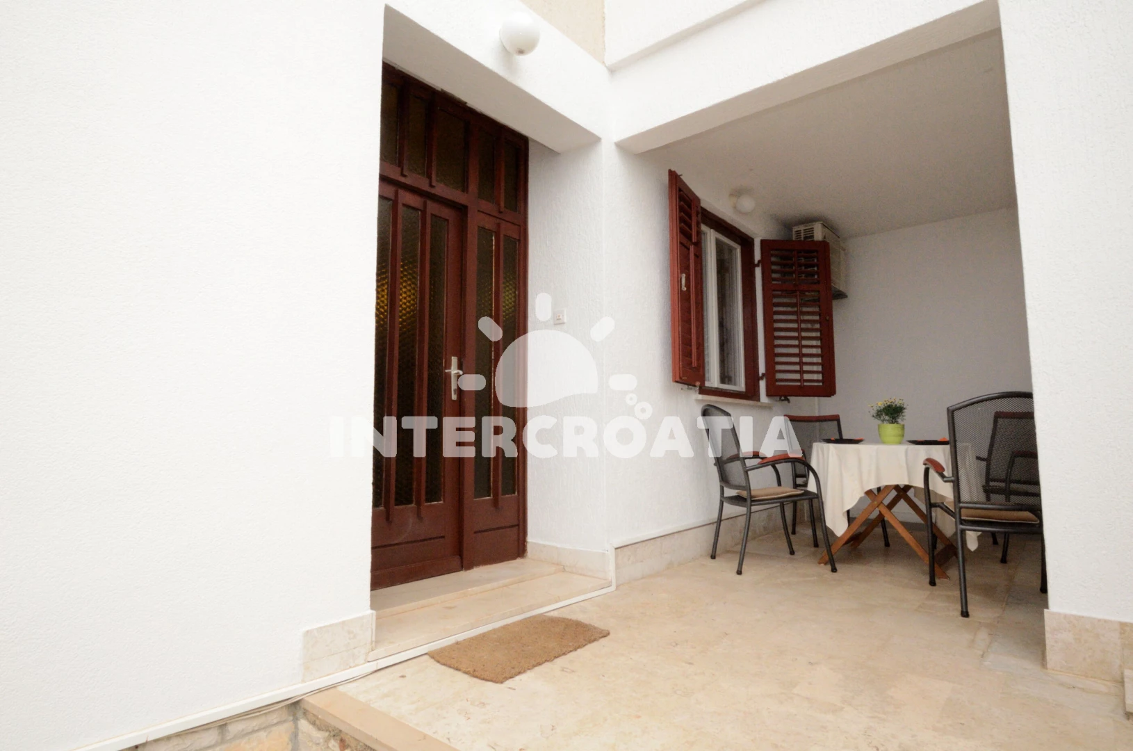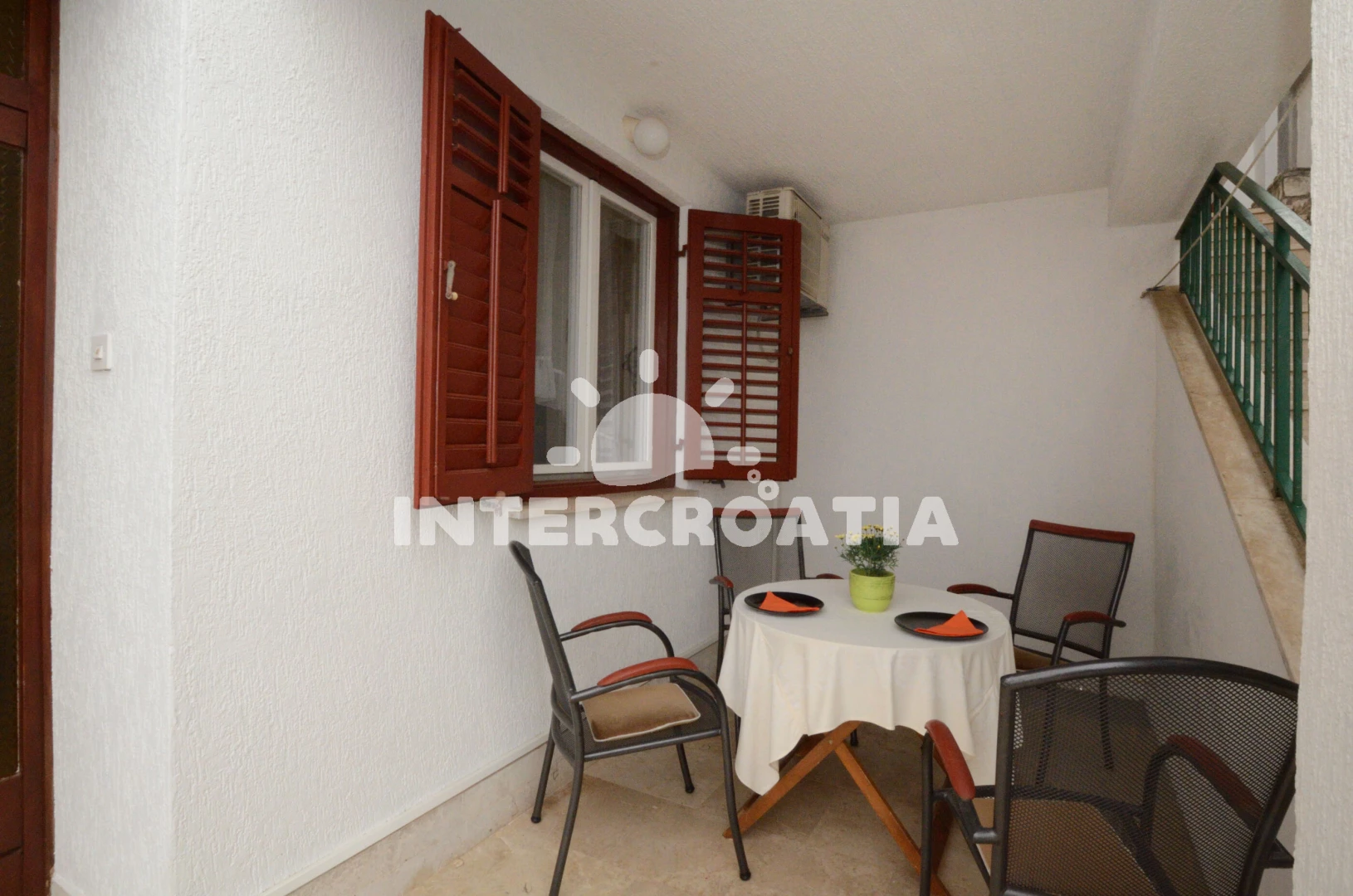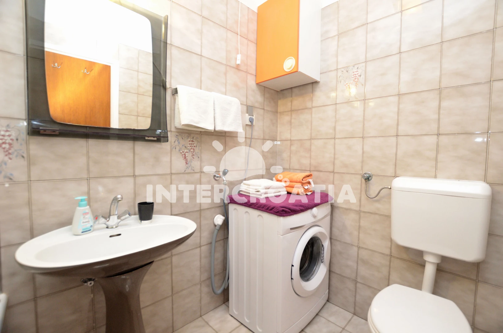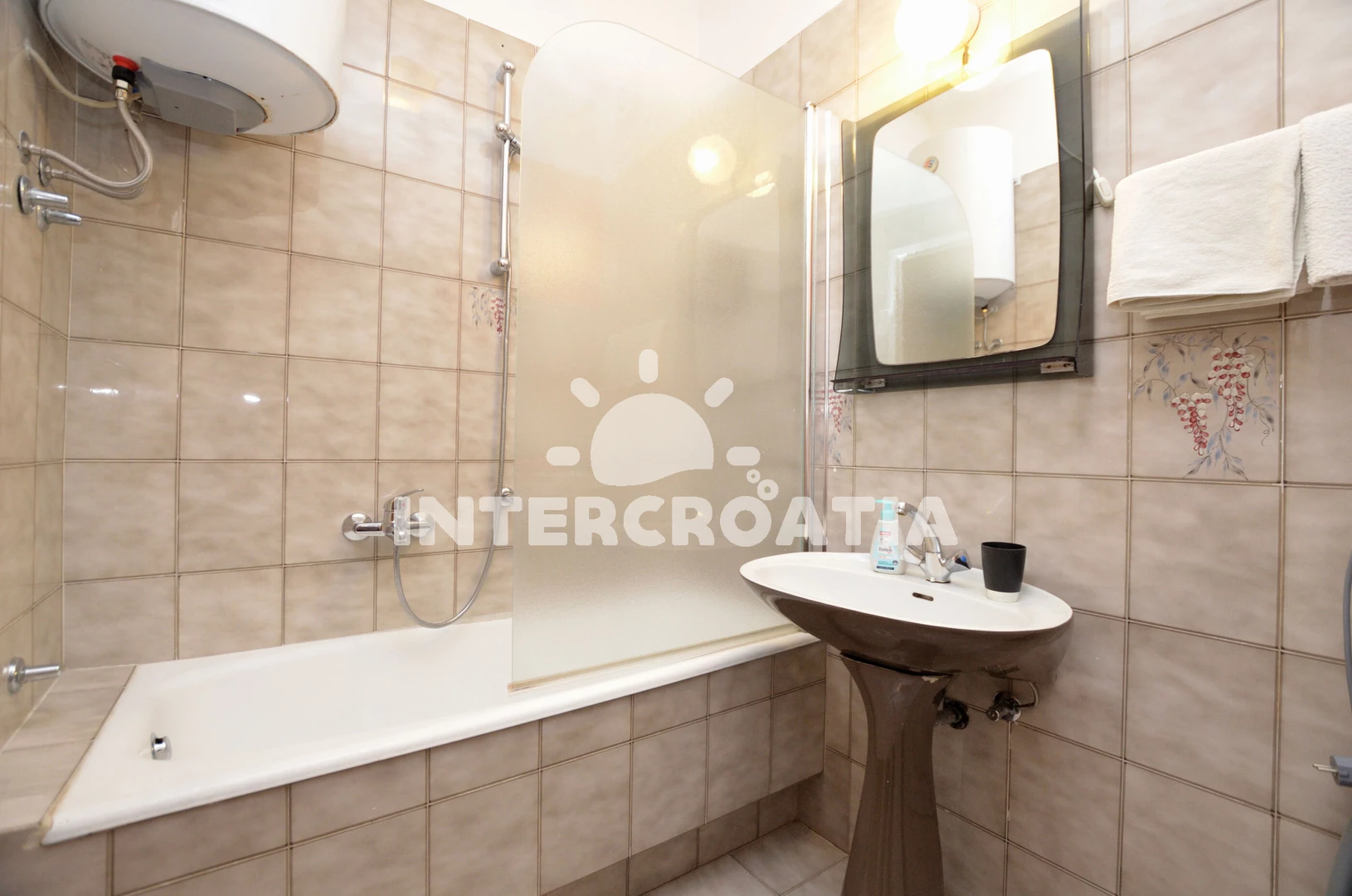 Apartmán se nachází 500 m od moře a pláže. Pláž je skalnatá, oblázková, větší kamení a betonové desky. Apartmán disponuje bazénem s lehátky pro ubytované hosty. Parkování je před domem.