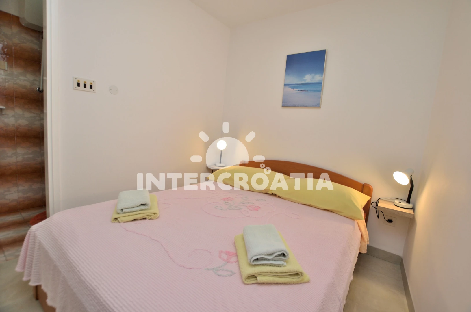 Apartmán (22 m2) typu studio s terasou, a výhledem na moře. Nachází se v přízemí objektu. Kuchyňská linka je vybavena varnou deskou, kávovarem, toustovačem, mikrovlnnou troubou, rychlovarnou konvicí, nádobím, lednicí. K dispozici dvoulůžko, televize se satelitním programem, žehlička. Koupelna se sprchovým koutem, umyvadlem, fénem a WC.