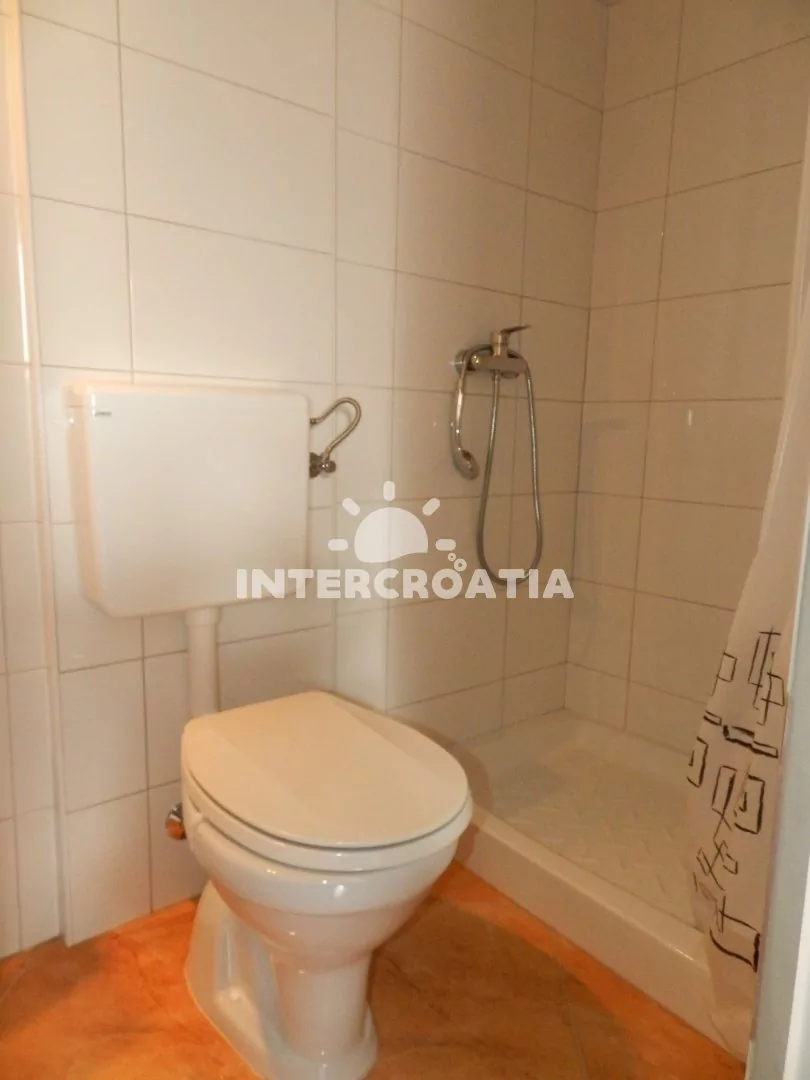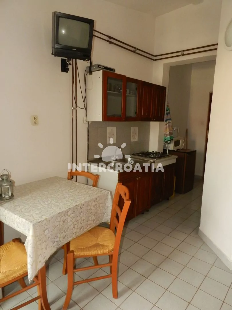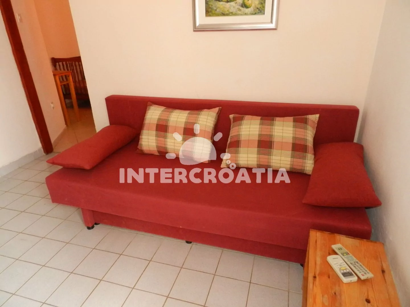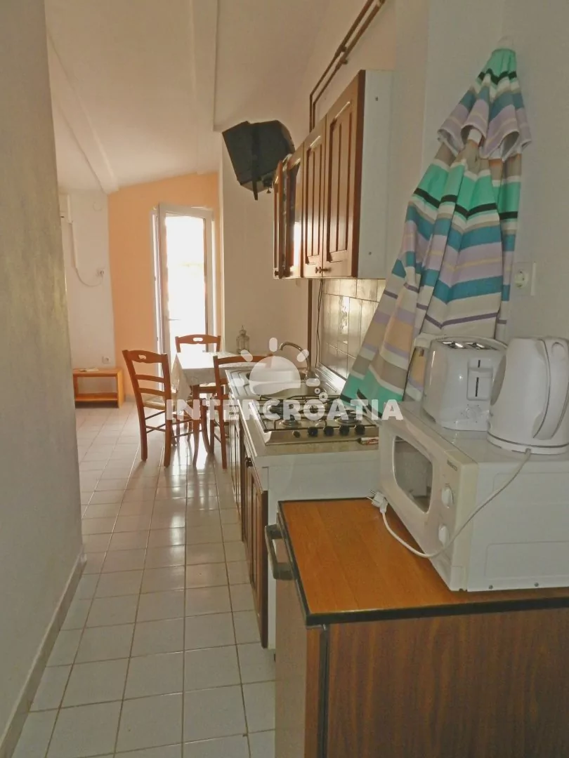 Apartmán typu studio s terasou a venkovním posezením se nachází ve 2. patře domu. Apartmán je vhodný pro 2 až 3 osoby. Obývací místnost je spojena s kuchyní. Kuchyňská linka je vybavena varnou deskou, rychlovarnou konvicí, mikrovlnnou troubou, toustovačem, kávovarem, nádobím a lednicí s mrazákem. Obývací místnost s jídelním stolem, pohovkou (rozložitelná na extra lůžko pro 1 osobu), televizí se satelitním programem, dvoulůžkem, klimatizací a vstupem na terasu. Koupelna se sprchovým koutem, umyvadlem, fénem a wc. Hostům je k dispozici parkování u objektu zdarma.