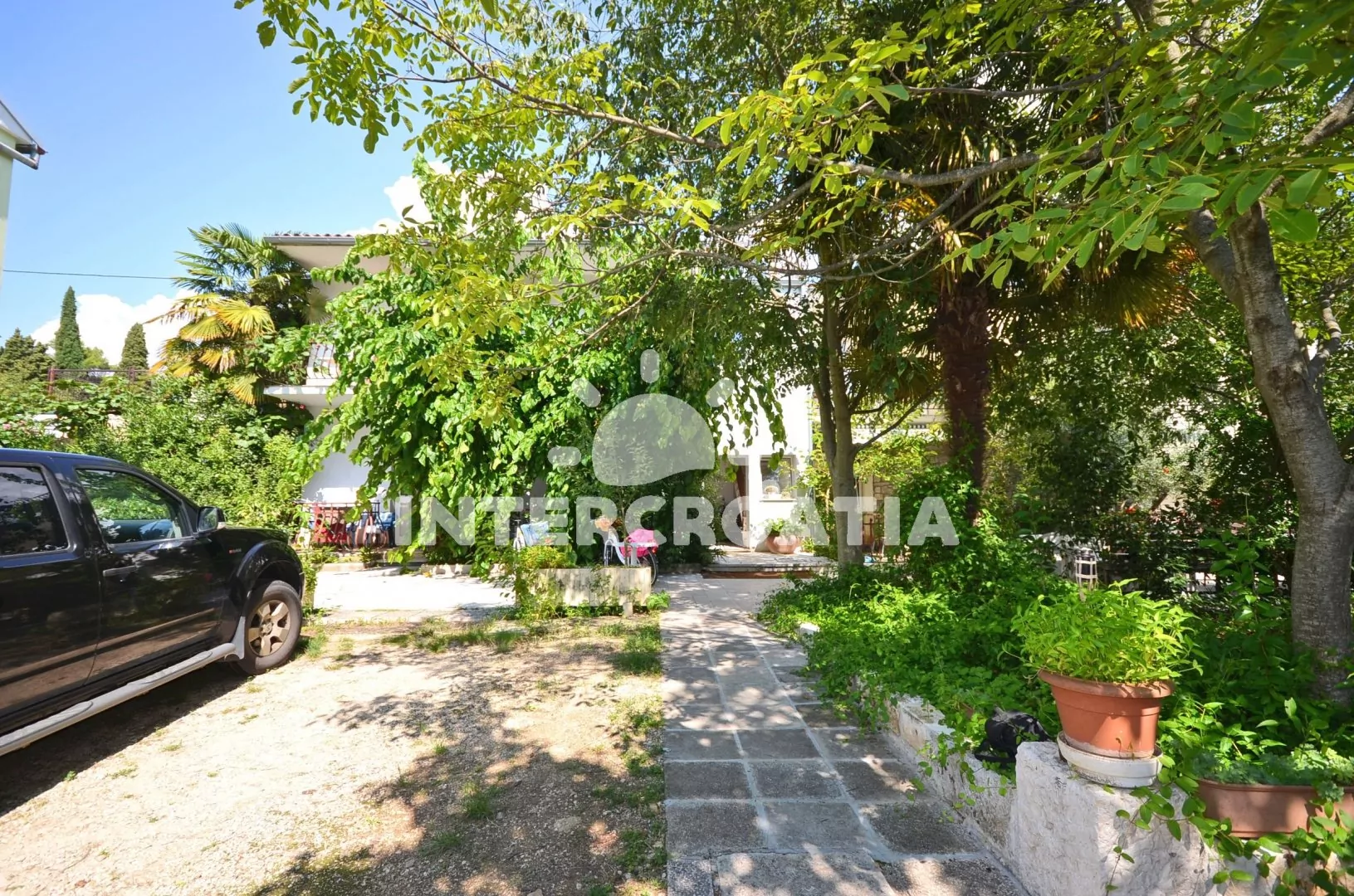 Apartmánová vilka s velkým pozemkem (1000 m2), zahradou, zelení a venkovním posezením na terase. Dům se nachází v dobré dostupnosti oblázkové pláže jménem Plaža Biondi. Parkovací místa k dispozici u objektu.