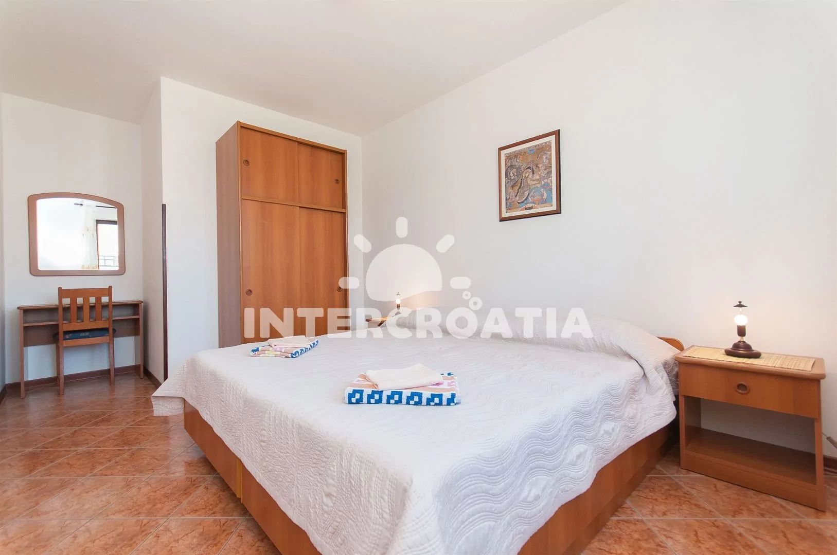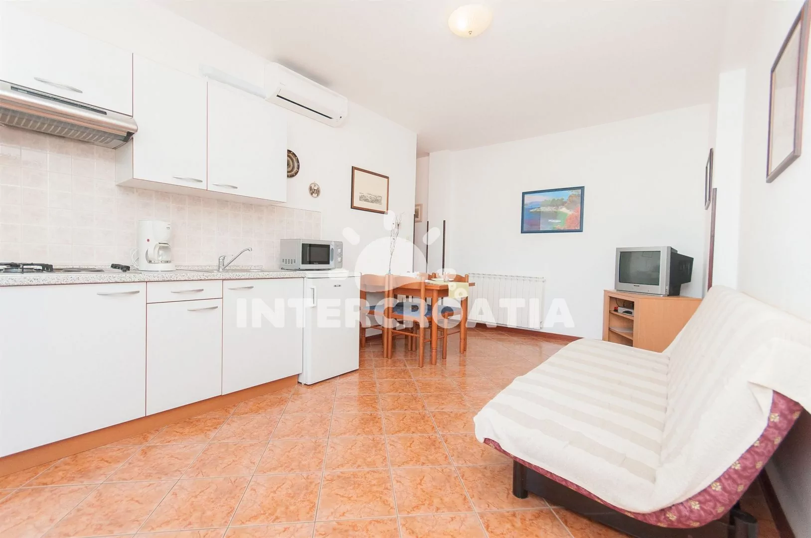 Apartmán v prvním patře domu s výhledem do klidné ulice je vhodný pro 2 osoby. Obývací pokoj je spojený s kuchyní. Kuchyňská linka je vybavena varnou deskou, digestoří, kávovarem, rychlovarnou konvicí, nádobím a lednicí s mrazákem. Obývací pokoj s jídelním stolem pro 4 osoby, pohovkou, televizí, klimatizací a vstupem na balkon. Ložnice je vybavena jedním dvoulůžkem. Koupelna se sprchovým koutem, umyvadlem a wc. Hostům je k dispozici parkování u objektu zdarma.