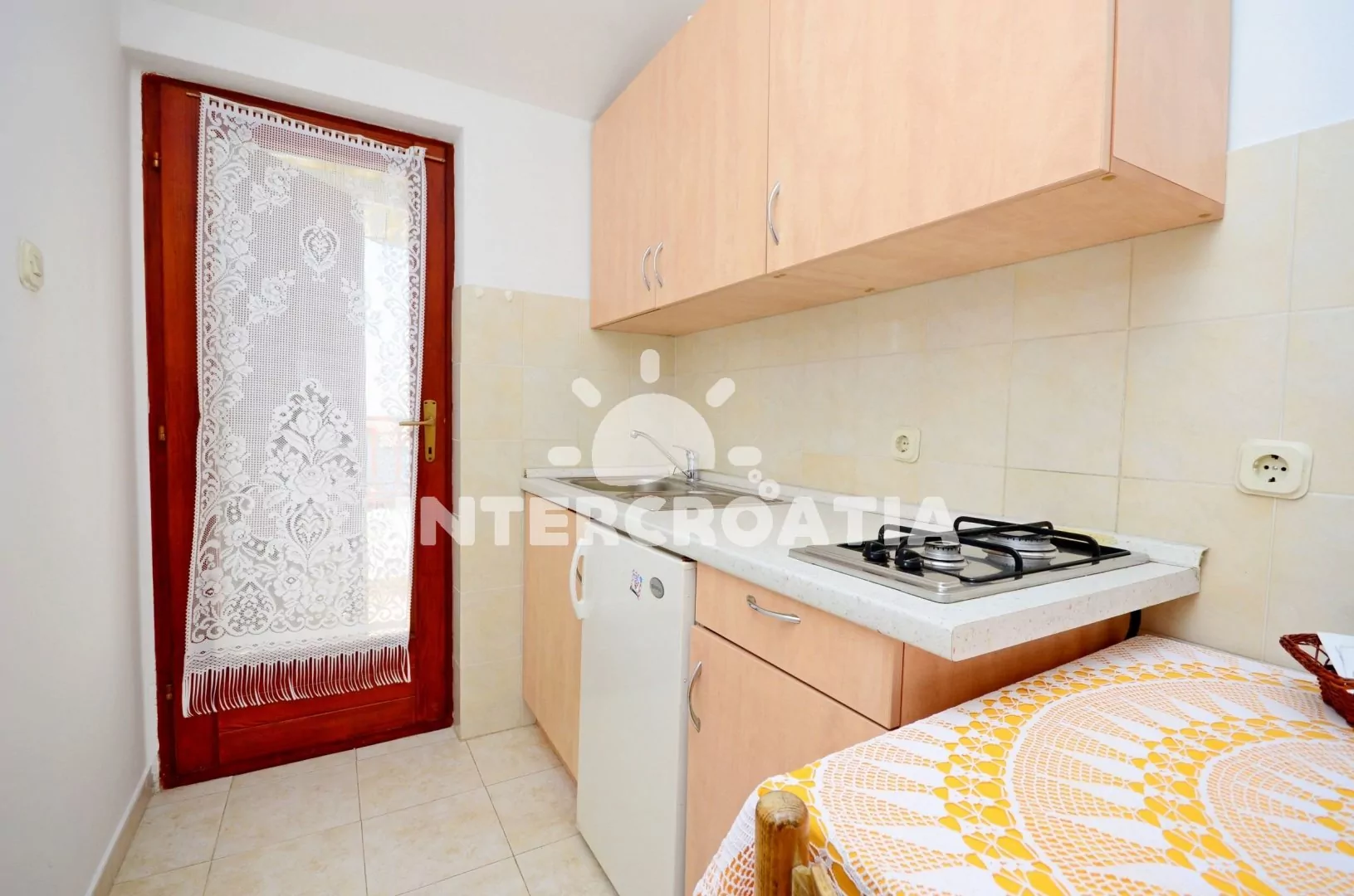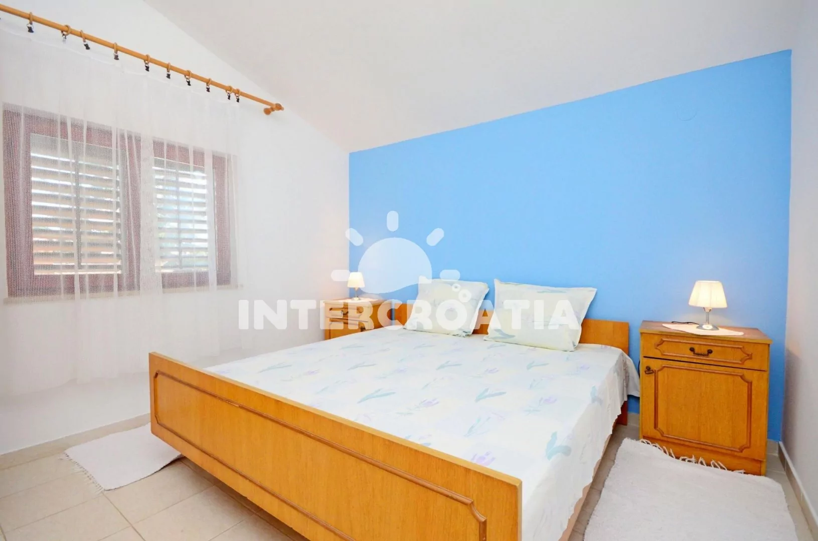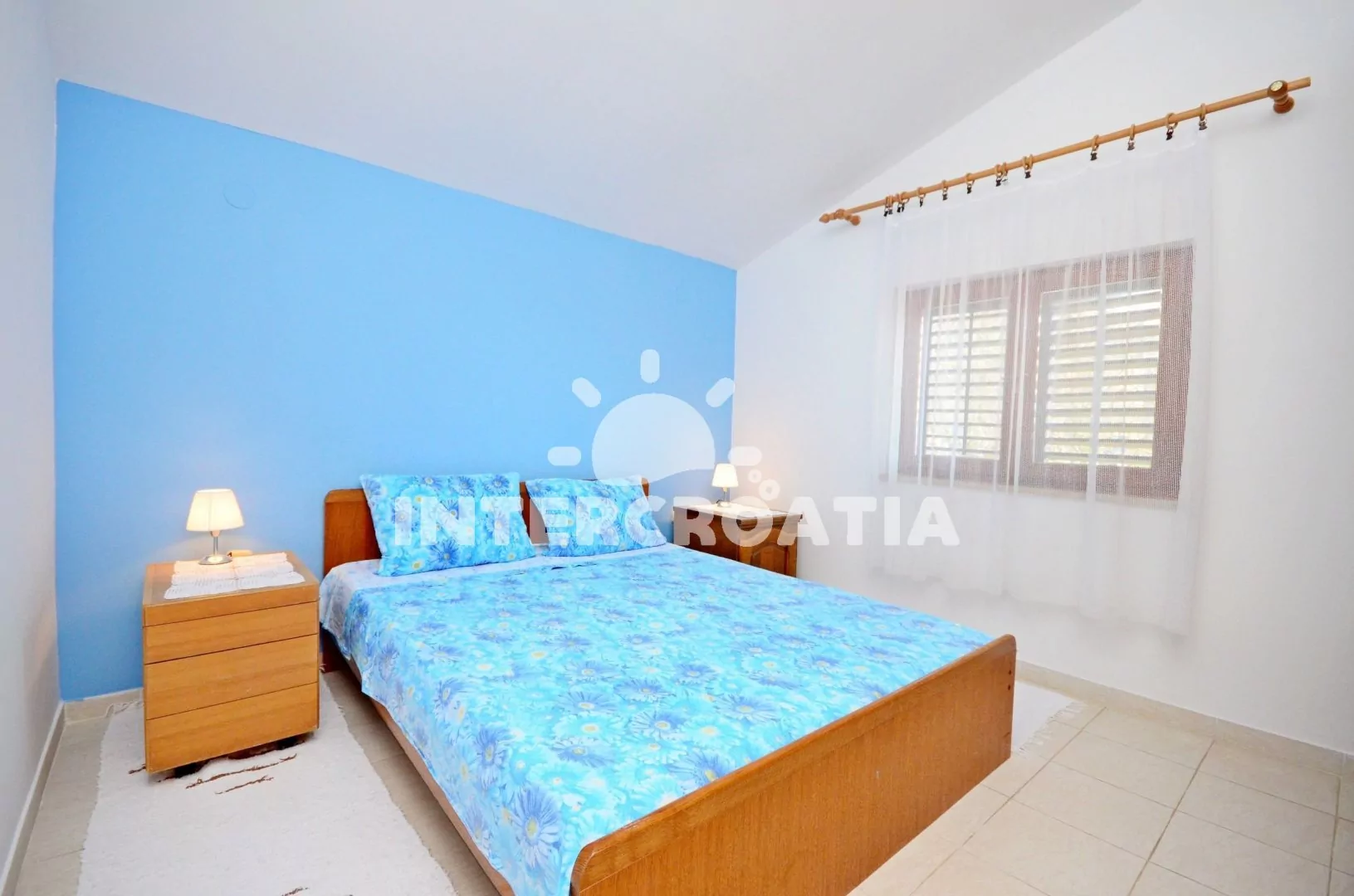 Apartmán (50 m2) s terasou a venkovním posezením se nachází ve 2. patře domu a je vhodný pro 4 osoby. Kuchyň je vybavena jídelním stolem a kuchyňskou linkou s dvouplotýnkovým vařičem, kávovarem, nádobím a lednicí s mrazákem. První i druhá ložnice je zařízena vždy s jedním dvoulůžkem. Koupelna se sprchovým koutem, umyvadlem, bidetem a wc. Dále je apartmán vybavený klimatizací a televizí se satelitním programem. Hostům je k dispozici parkování u objektu zdarma.