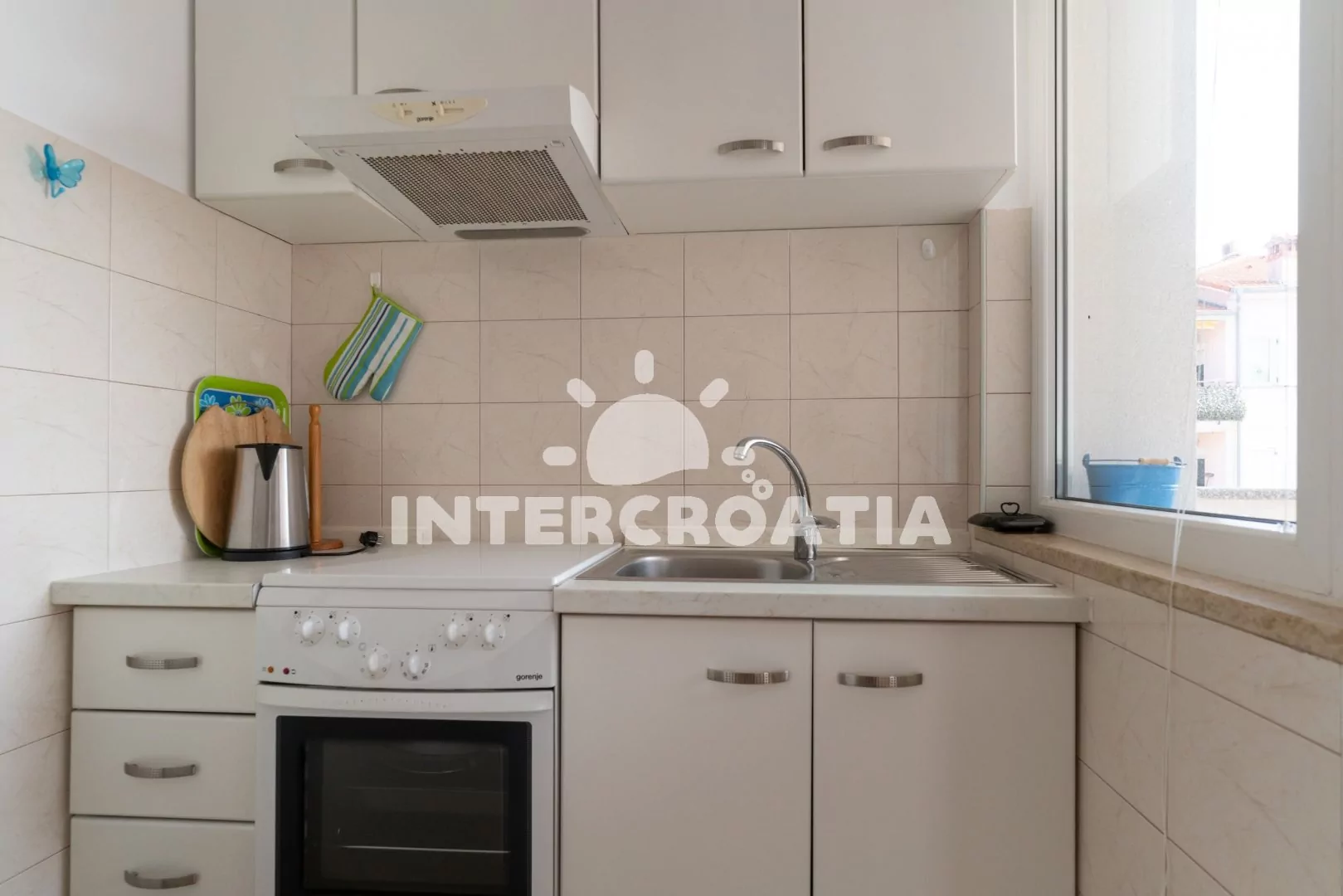 Apartmánový dům se nachází na konci slepé a klidné ulice, ve vilové čtvrti. Dům nabízí ubytování ve 2 klimatizovaných apartmánech s lodžiemi a venkovním posezením. Dům je 1 km vzdušnou čarou od moře a pláže a 1,3 km pěší chůzí od oblázkové pláže jménem Cuvi. Parkovací místa pro automobily přímo u domu.