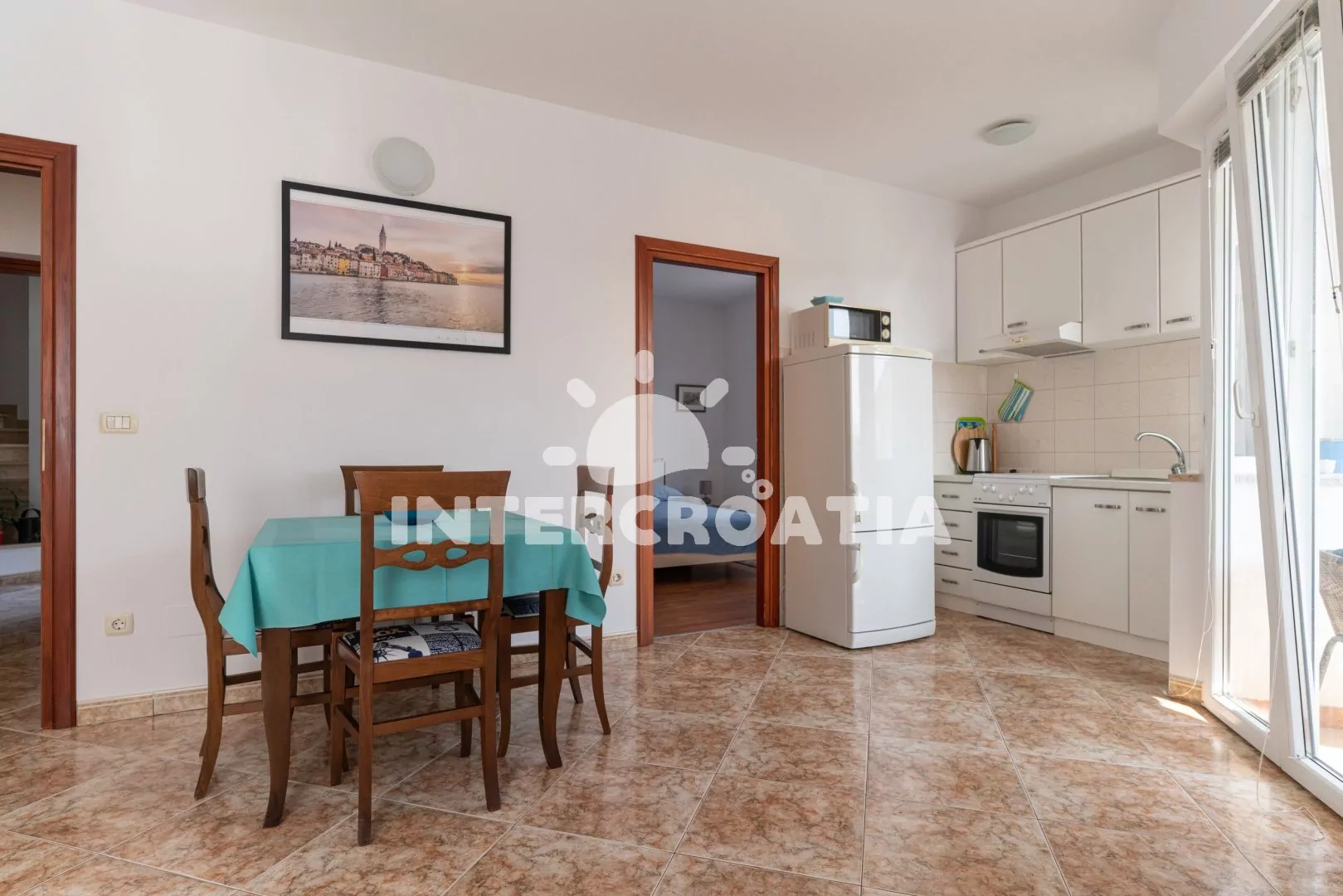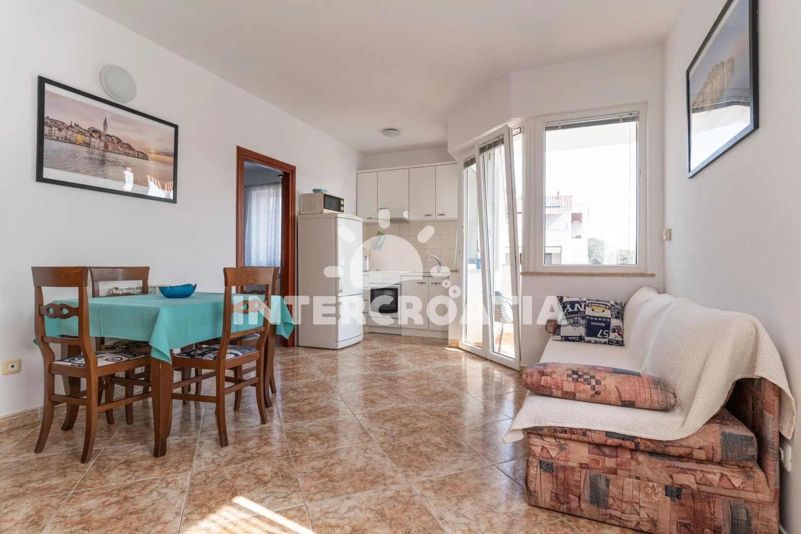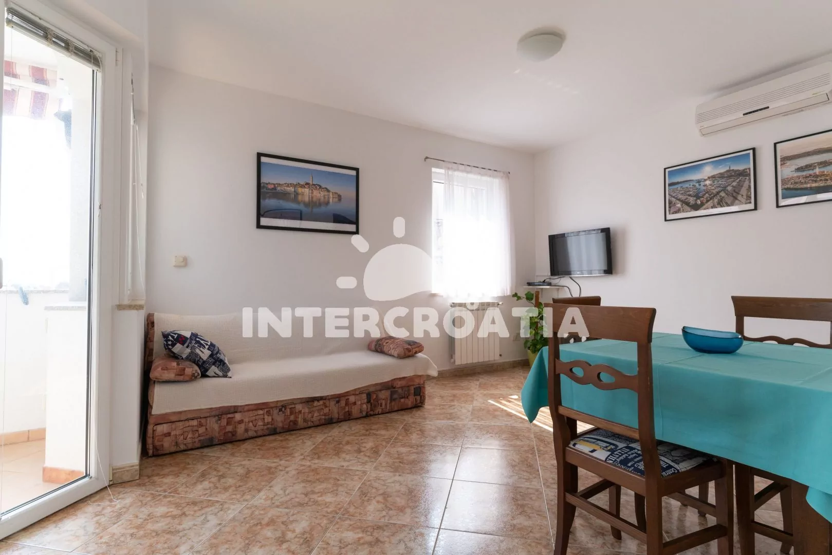 Rovinj je istrijské letovisko vzdálené 36 km od Puly. Apartmán je situovaný 1,3 km od azurového moře a oblázkové pláže.
