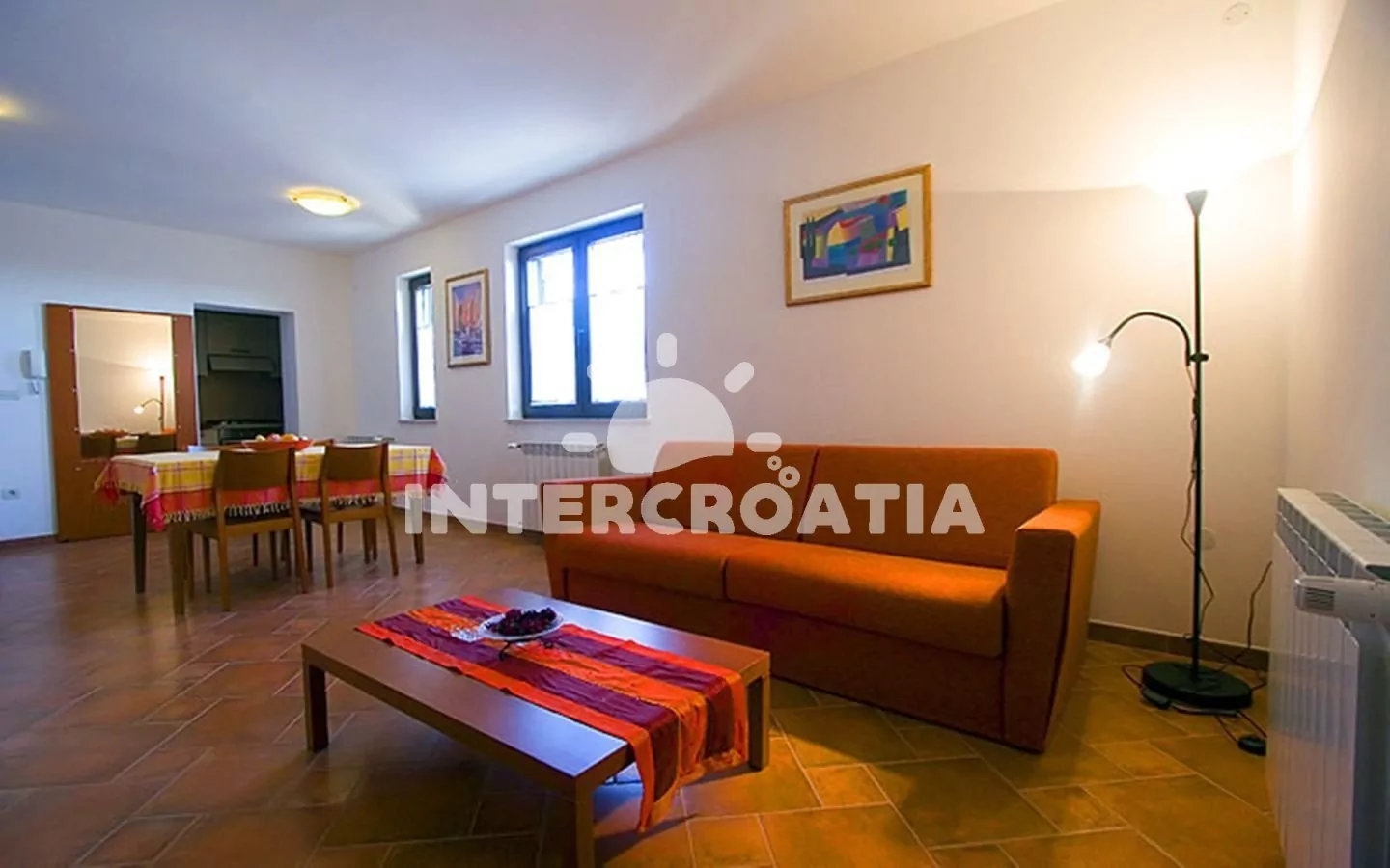 Vzdálenosti: Moře a písčitá-oblázková pláž 650 m, centrum 1,8 km, restaurace 500 m, bar, supermarket, lékárna a směnárna 300 m, ambulance 1,8 km, čerpací stanice 2 km, banka a pošta 1,8 km, veřejná doprava 1,8 km, přístav 35,7 km, park Plitvice 31,5 km, letiště (Pula) 40 km.