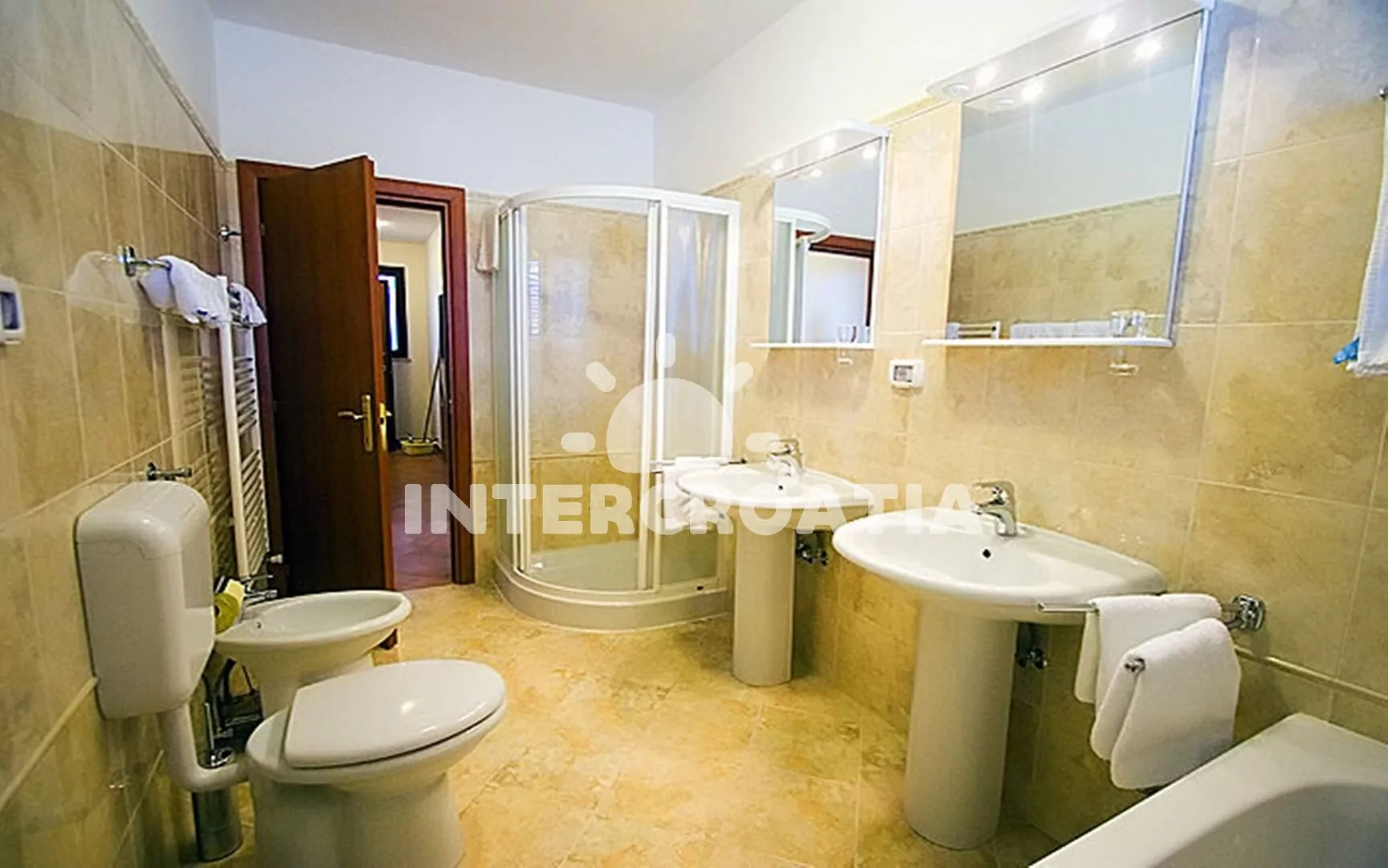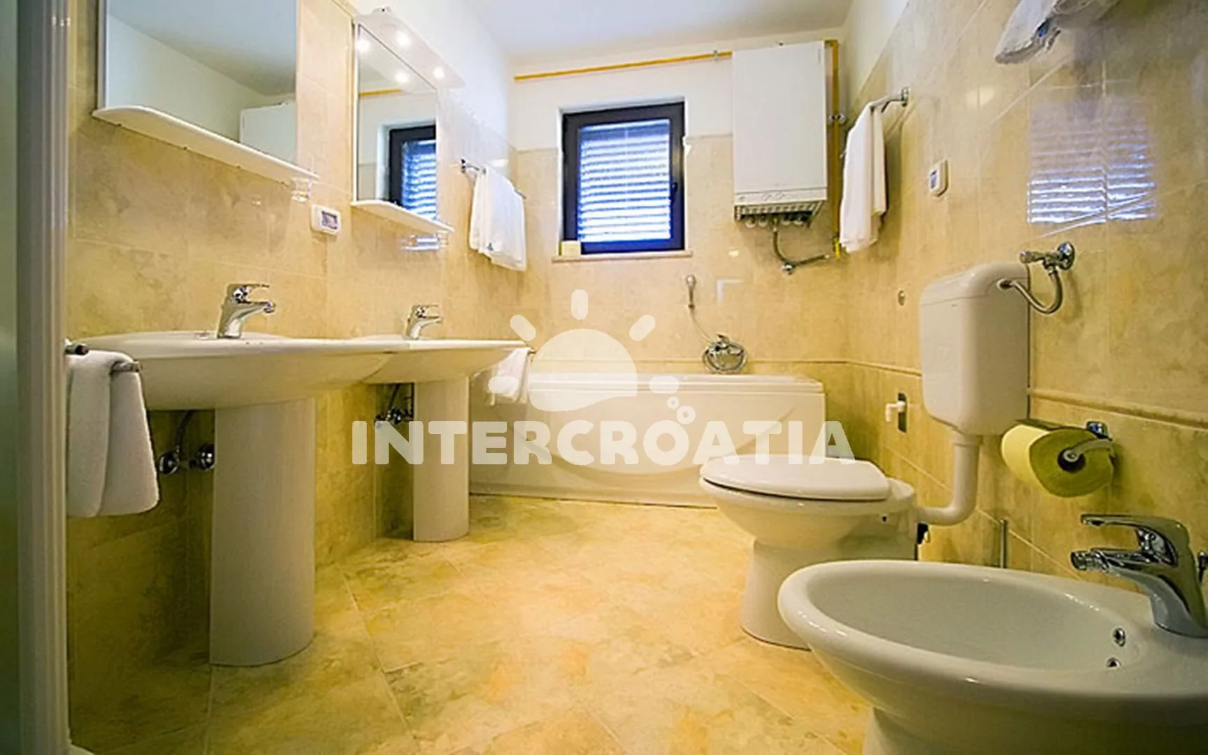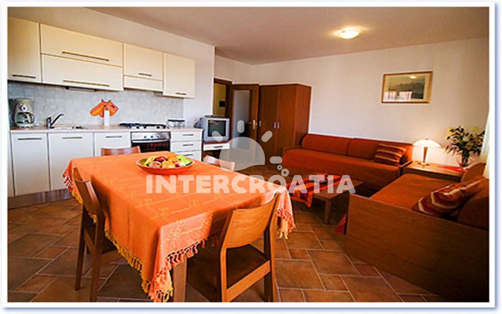Vzdálenosti: Moře a písčitá-oblázková pláž 650 m, centrum 1,8 km, restaurace 500 m, bar, supermarket, lékárna a směnárna 300 m, ambulance 1,8 km, čerpací stanice 2 km, banka a pošta 1,8 km, veřejná doprava 1,8 km, přístav 35,7 km, park Plitvice 31,5 km, letiště (Pula) 40 km.
