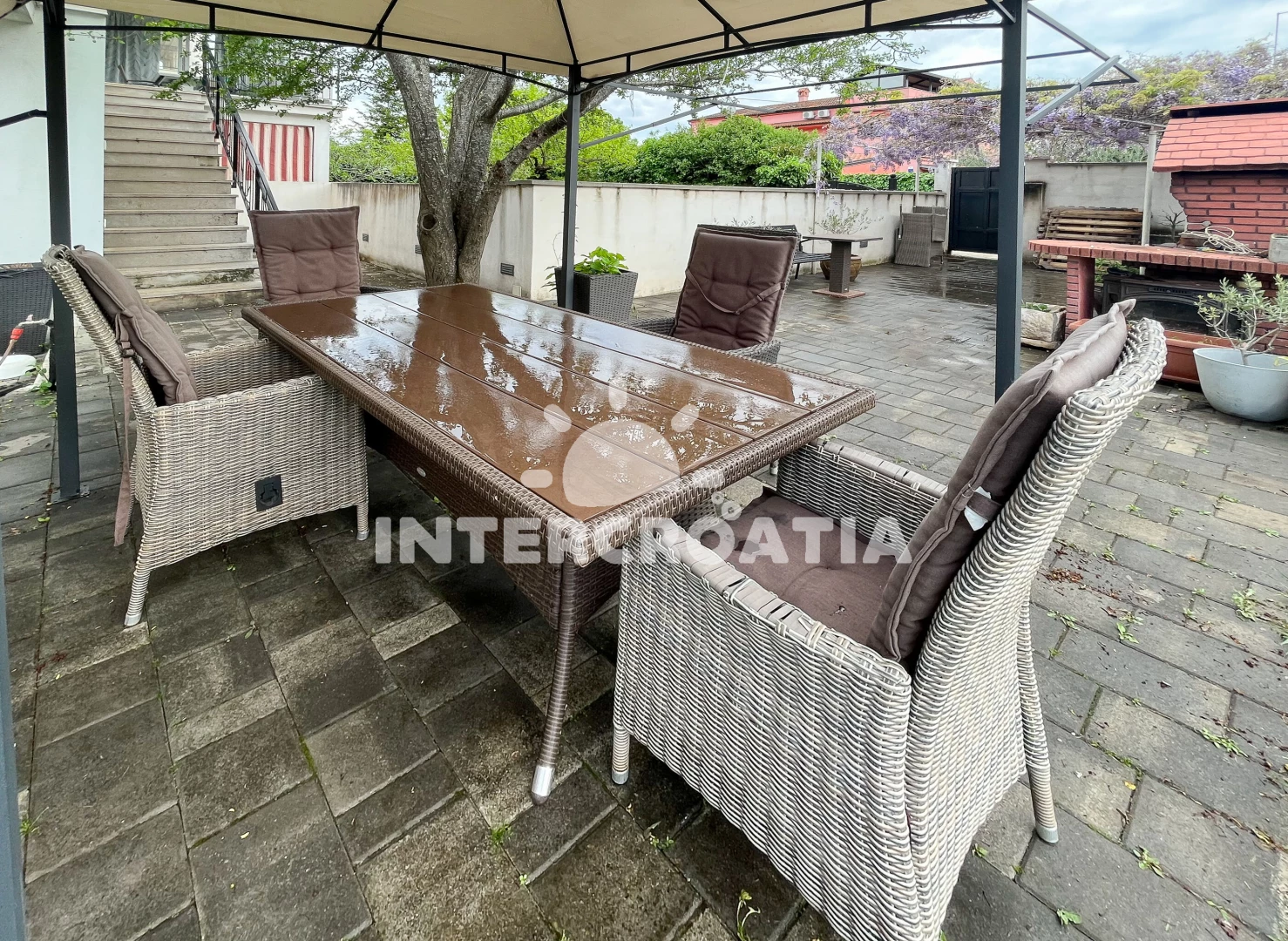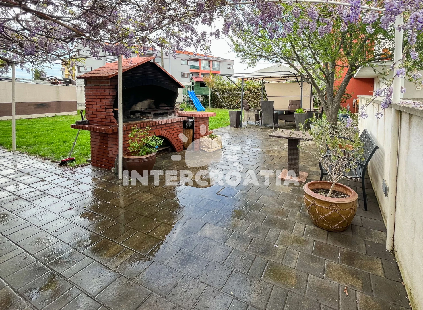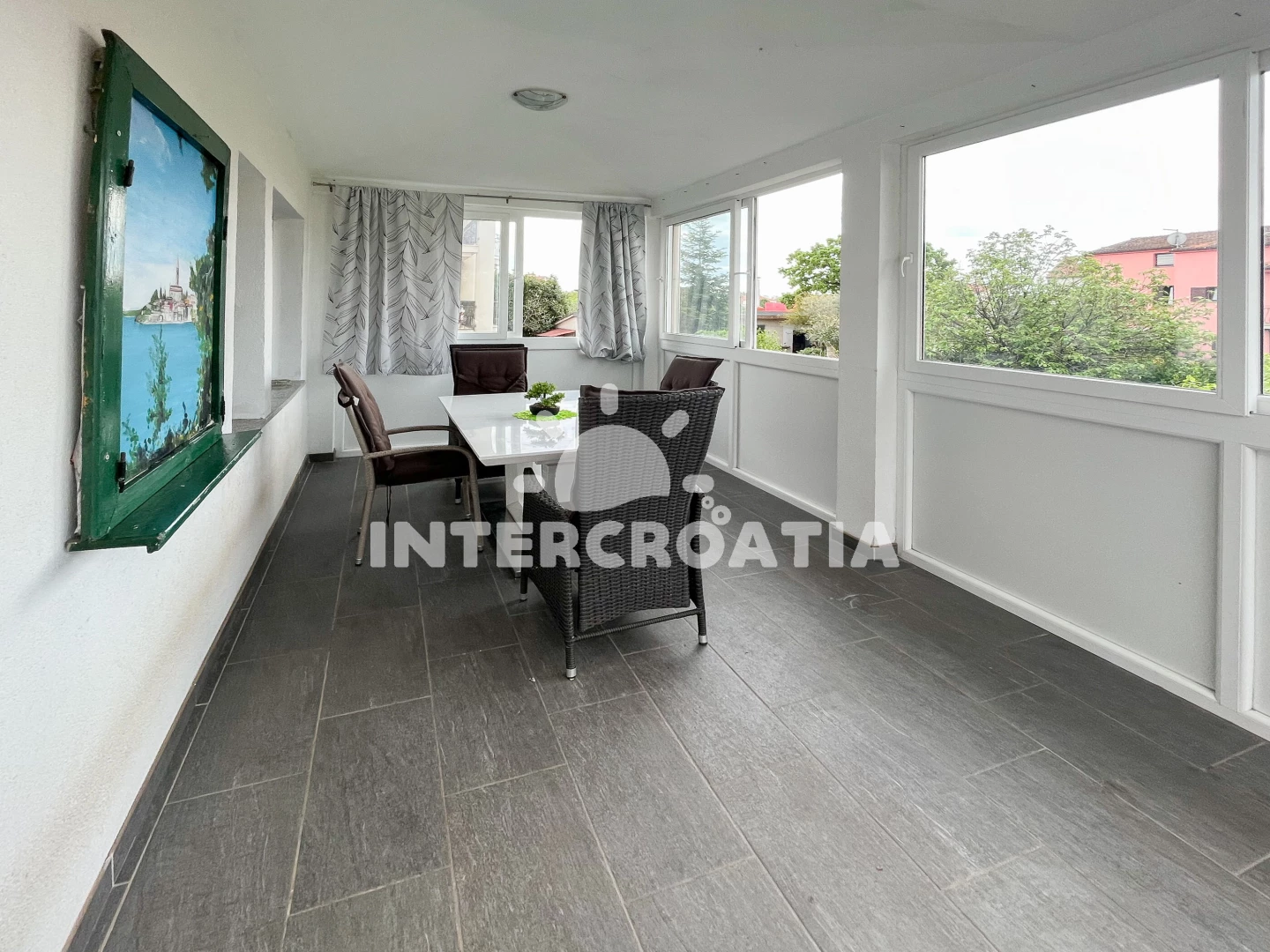 Apartmán se nachází 2000 m od moře a pláže. Pláž je skalnatá, oblázková, větší kamení a betonové desky. U objektu je k dispozici společná zahrada s posezením a grilem. Parkování je před domem.