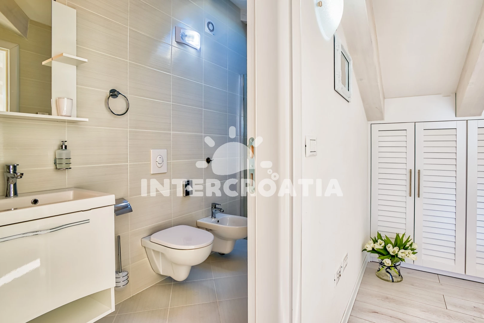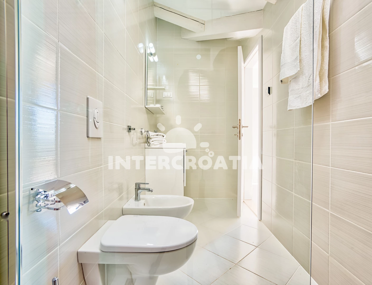 Vzdálenosti: Moře 230 m, pláž 350 m (skalnatá a oblázková), restaurace 350 m, bar 350 m, veřejná doprava 400 m, supermarket 400 m, mini golf 1,5 km, tenisové kurty 1,5 km, čerpací stanice 2 km, muzeum 2,5 km, pošta 2,5 km, banka 2,5 km, ambulance 2,5 km, směnárna 2,5 km, centrum 2,5 km, lékárna 2,5 km, marina 3,5 km, trajekt (Rovinj) 3,5 km, půjčovna motorových člunů 3,5 km, park Plitvice 33 km, letiště (Pula) 47 km,