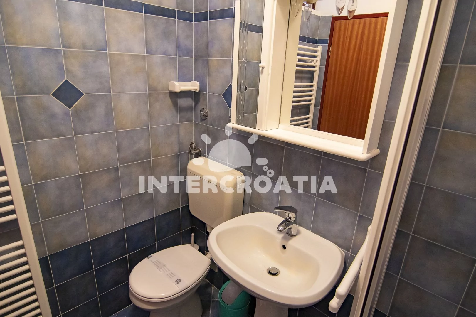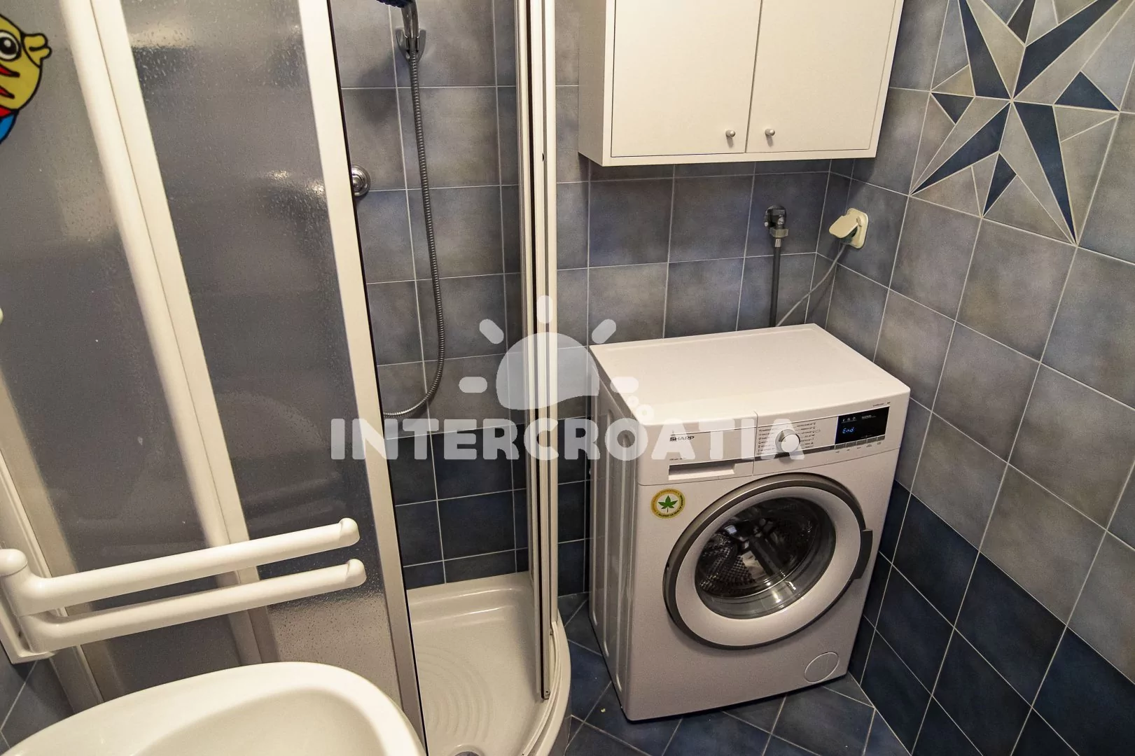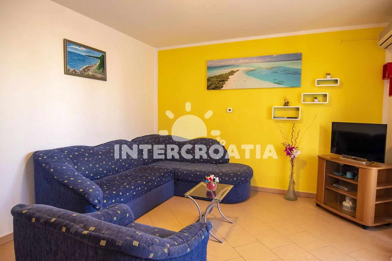 Apartmán (55 m2) s terasou a výhledem do klidné ulice se nachází v prvním patře domu a je vhodný pro 2 až 4 osoby. Kuchyň je vybavena jídelním stolem pro 4 osoby, kuchyňskou linkou se sporákem, troubou, digestoří, kávovarem, rychlovarnou konvicí, nádobím a lednicí s mrazákem. Obývací pokoj se sedací soupravou, rohovou pohovkou (rozložitelná na extra lůžko pro 2 osoby), televizí se satelitním programem, klimatizací a vstupem na terasu. Ložnice s jedním dvoulůžkem a vstupem na terasu. Koupelna se sprchovým koutem, umyvadlem, fénem, pračkou a wc. Hostům je k dispozici parkování 50 až 150 m od objektu.