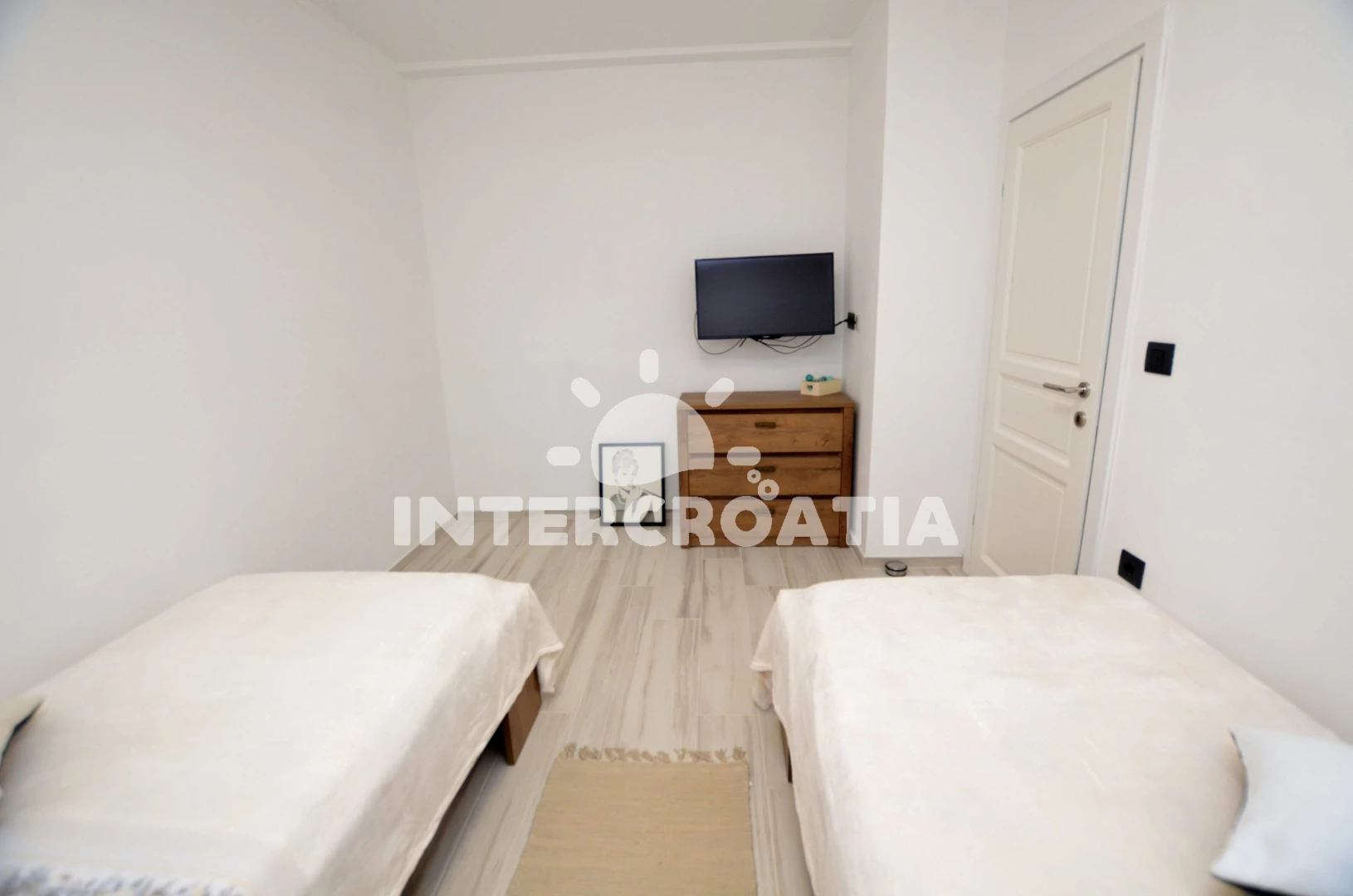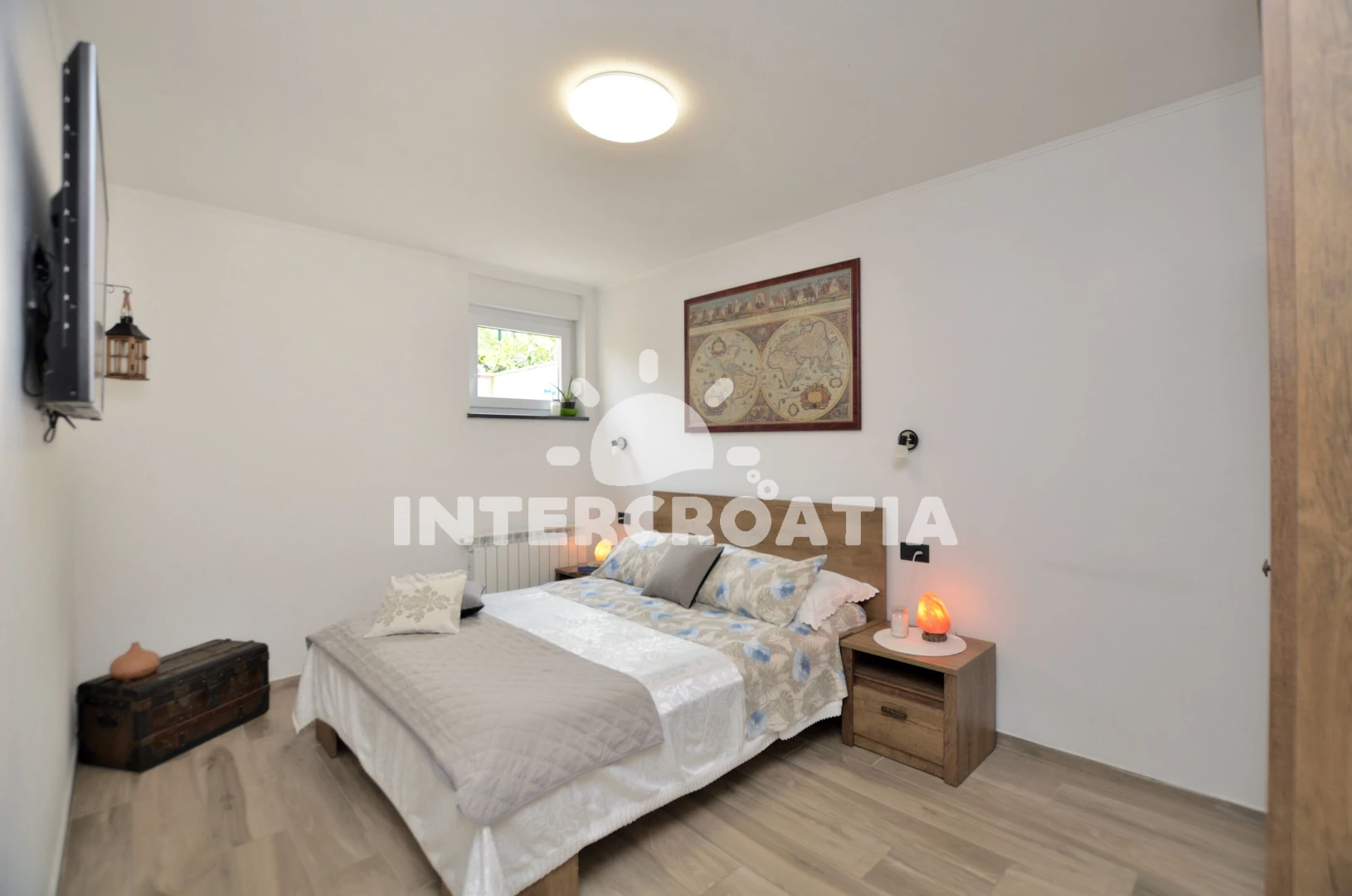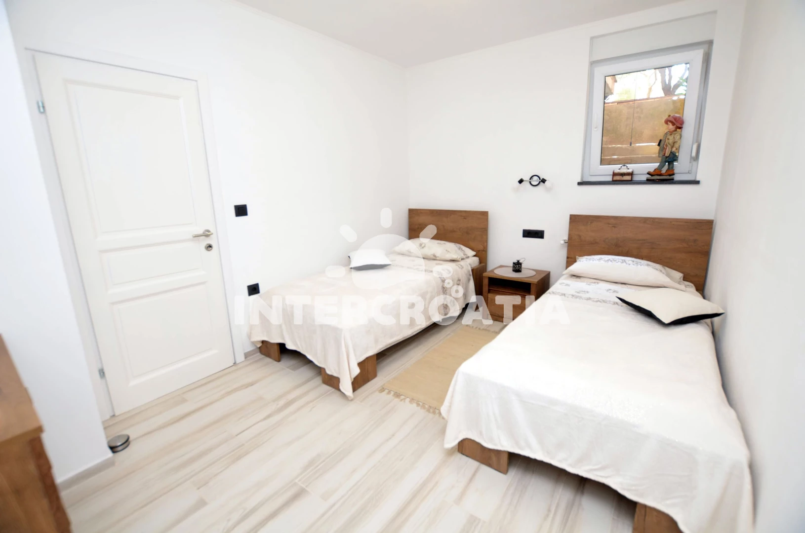 Vzdálenosti: Moře 500 m, pláž 600 m (oblázky), restaurace 100 m, bar 300 m, supermarket 300 m, centrum 300 m, kotviště pro čluny 600 m, potápění 600 m, půjčovna motorových člunů 600 m, tenisové kurty 1,5 km, diskotéka 4 km, muzeum 4 km, pošta 4 km, lékárna 4 km, směnárna 4 km, čerpací stanice 4 km, banka 4 km, park Plitvice 5 km, letiště (Pula) 8 km,