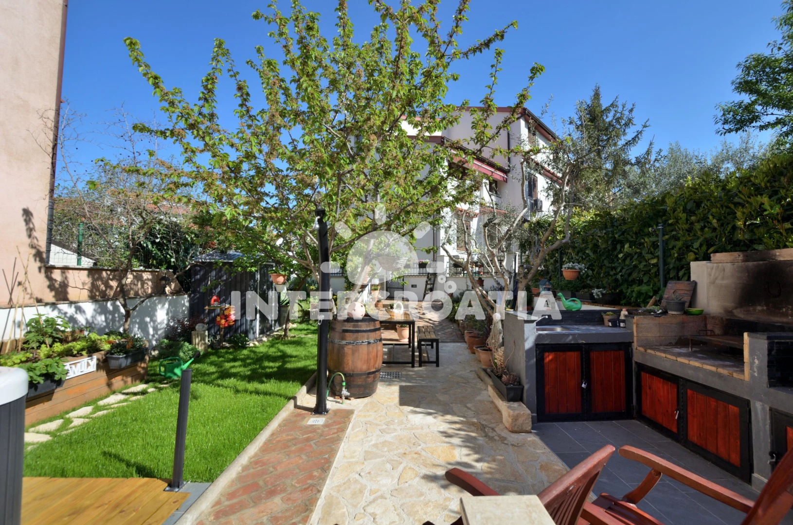 Apartmán se nachází 600 m od moře a pláže. Pláž je oblázková. K dispozici vířivka. U objektu je k dispozici společná zahrada s posezením a grilem. Parkování je 150m - 300 m od domu.