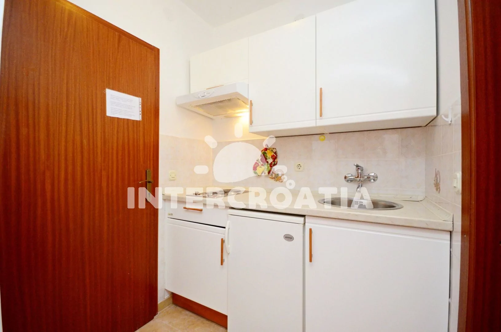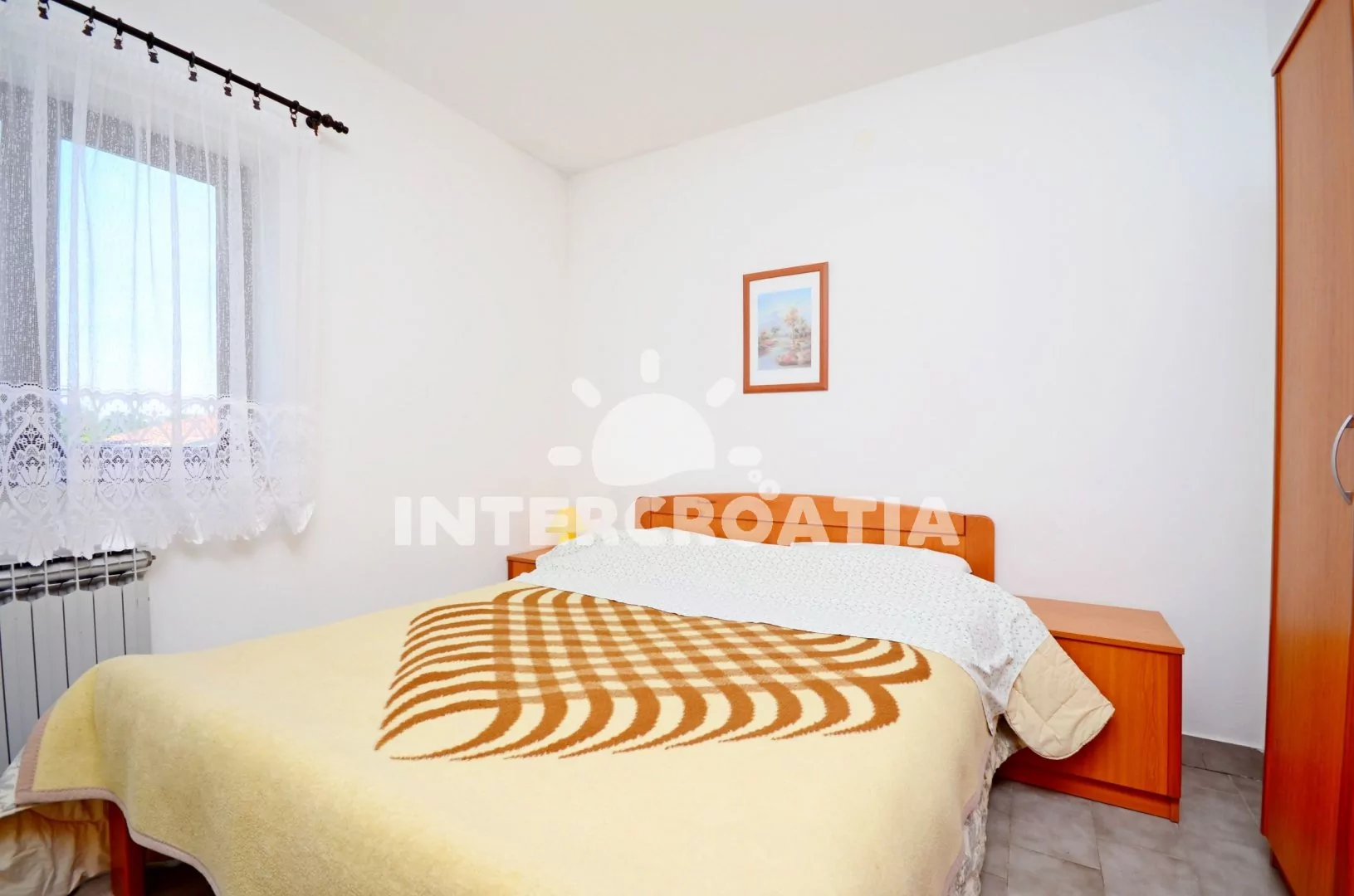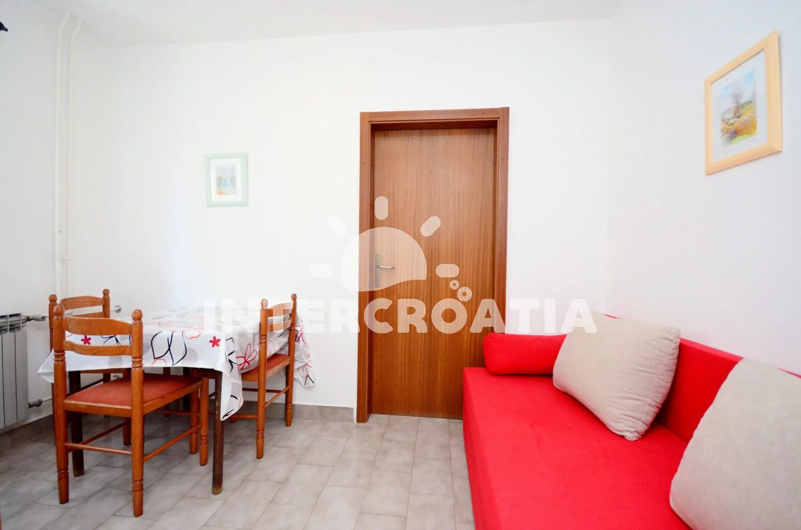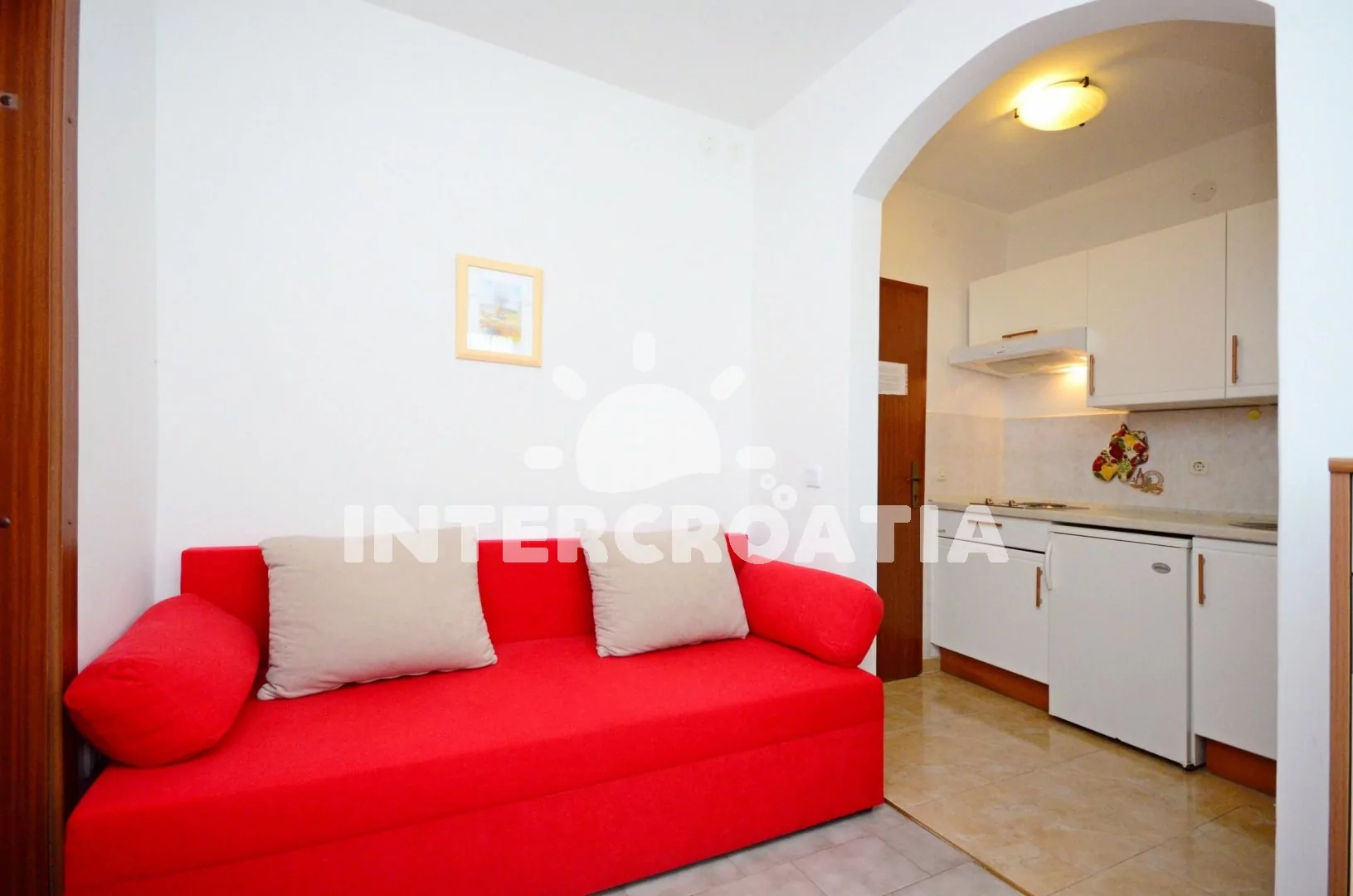 Apartmán pro 2 až 3 osoby v přízemí domu, výhled do zahrady. Kuchyň je částečně oddělena od obývacího pokoje. Kuchyňský kout je vybaven pracovní deskou, nádobím, dvouplotýnkovým elektrickým sporákem, digestoří a lednicí s mrazákem. Obývací pokoj s jídelním stolem a rozkládací pohovkou (extra lůžko pro 1 osobu). Ložnice s manželským dvoulůžkem. Koupelna se sprchovým koutem, umyvadlem a wc. K dispozici: klimatizace, WiFi.