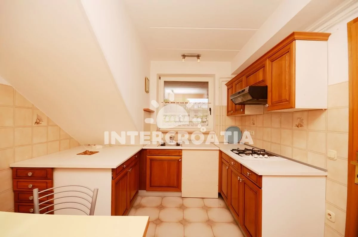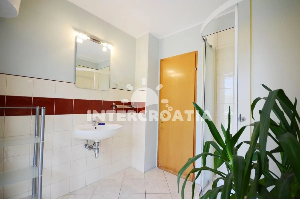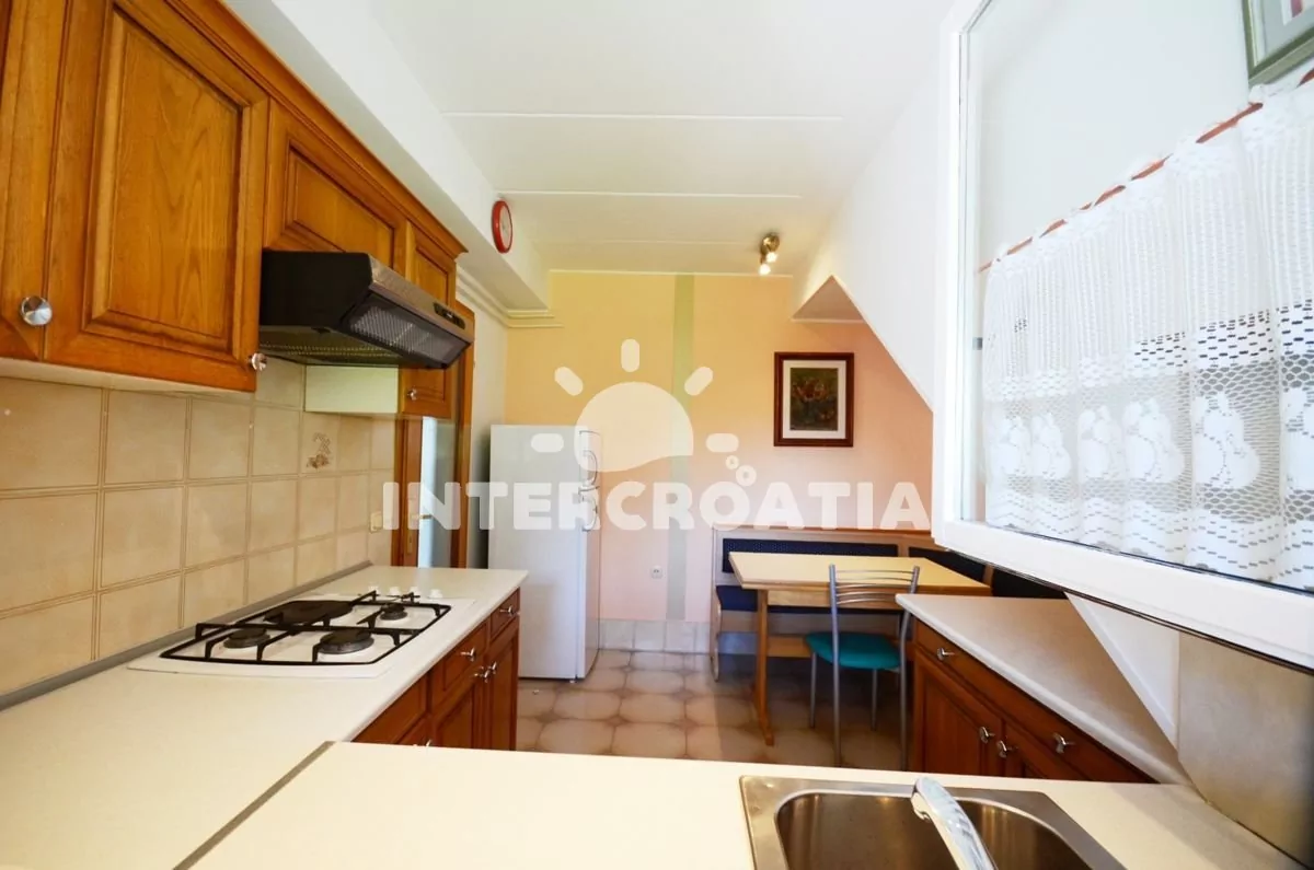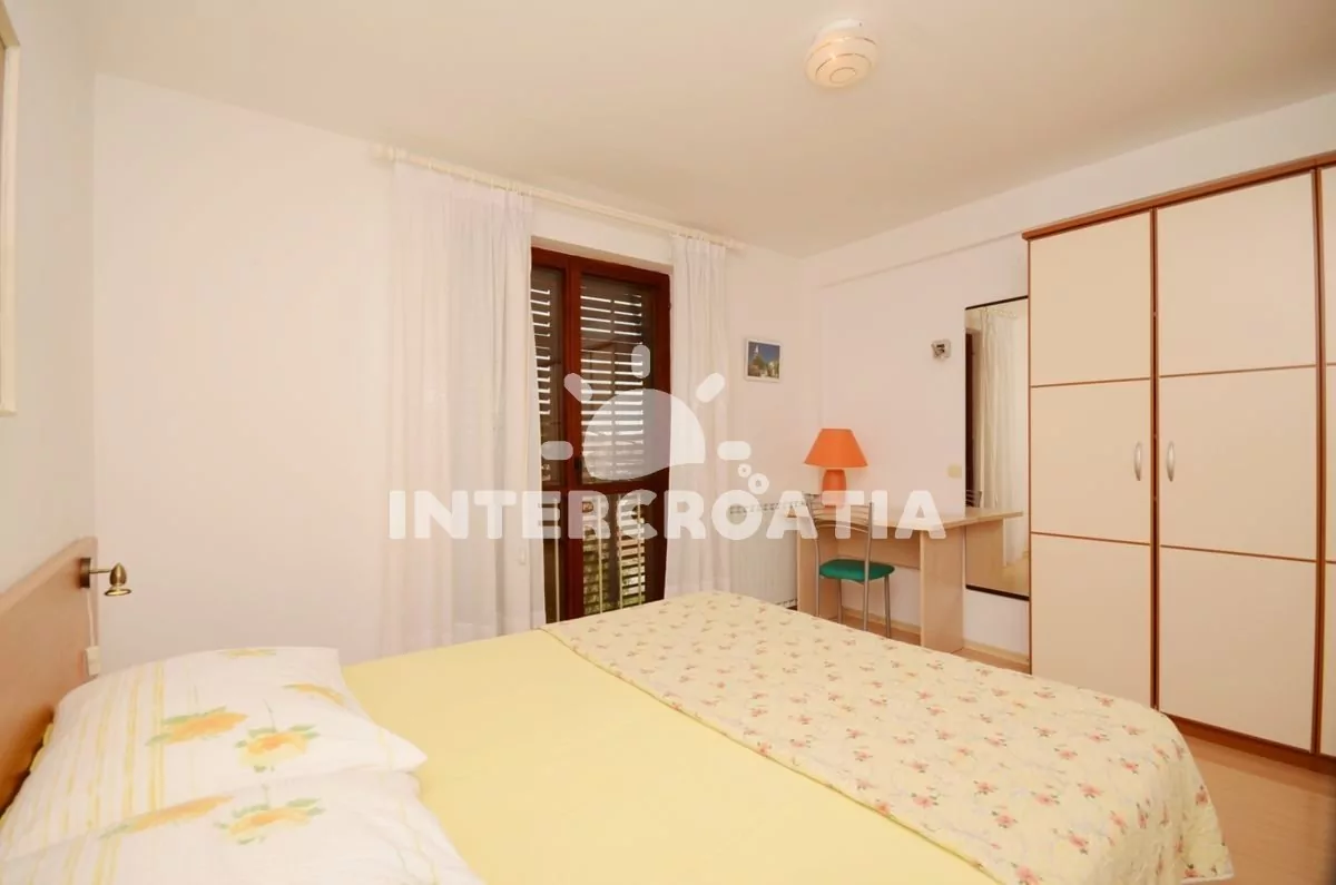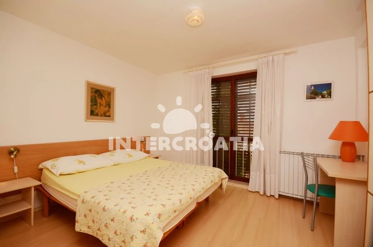 Apartmán (84 m2) v 1. patře s vlastní terasou a částečným výhledem na moře je vhodný pro 4 až 6 osob. Kuchyň je oddělena od obývacího pokoje. Kuchyňská linka je vybavena varnou deskou, rychlovarnou konvicí, nádobím a lednicí s mrazákem. Dále jídelní stůl pro 4 osoby. Obývací pokoj s dvěma pohovkami (rozložitelná na extra lůžko pro 2 osoby), televizí se satelitním programem, klimatizací a vstupem na terasu. První ložnice s dvoulůžkem. Druhá ložnice s dvěma jednolůžky. Koupelna se sprchovým koutem, umyvadlem a wc. Hostům je k dispozici parkování u objektu zdarma.