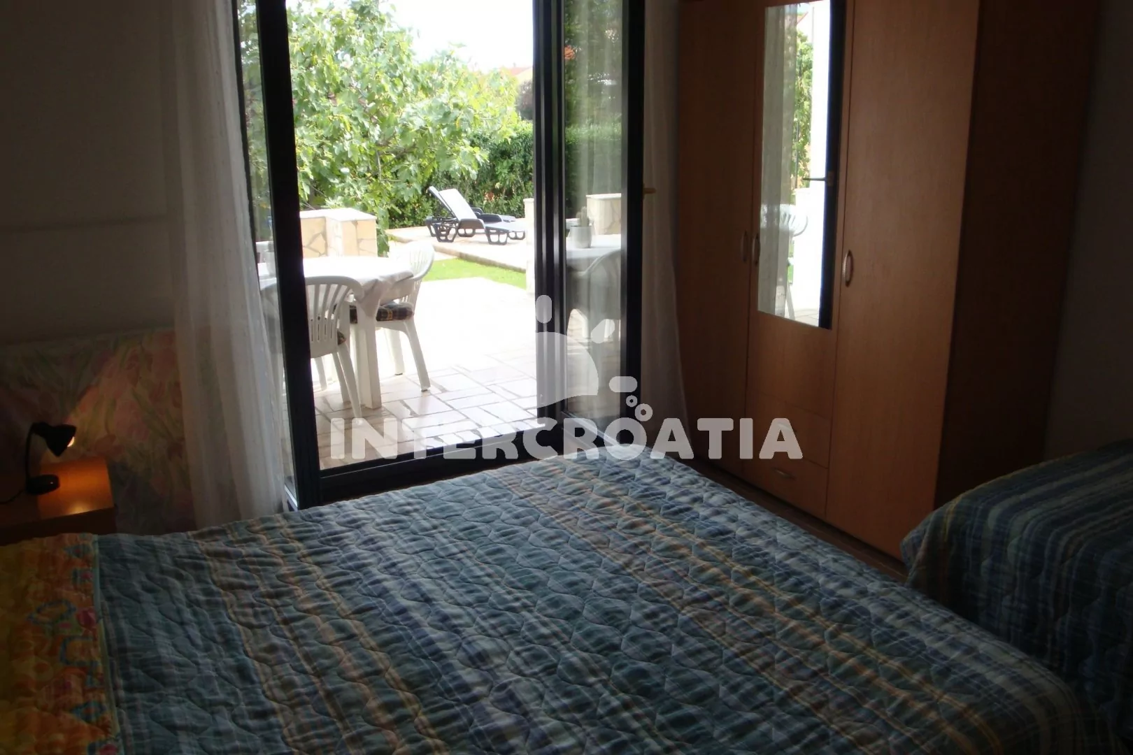 Apartmán s terasou se nachází v přízemí vily a je vhodný pro 3 osoby. Obývací pokoj je spojený s kuchyní. Kuchyňská linka s dvouplotýnkovým sporákem, digestoří, mikrovlnnou troubou, rychlovarnou konvicí, kávovarem, nádobím a lednicí s mrazákem. Obývací pokoj s jídelním stolem pro 4 osoby, pohovkou, televizí se satelitním programem, radiem a klimatizací. Ložnice s jedním dvoulůžkem, jedním jednolůžkem a vstupem na terasu. Koupelna se sprchovým koutem, umyvadlem, fénem a wc. Hosté mají k dispozici parkování u objektu zdarma.