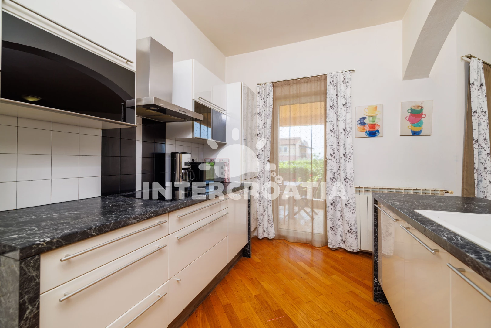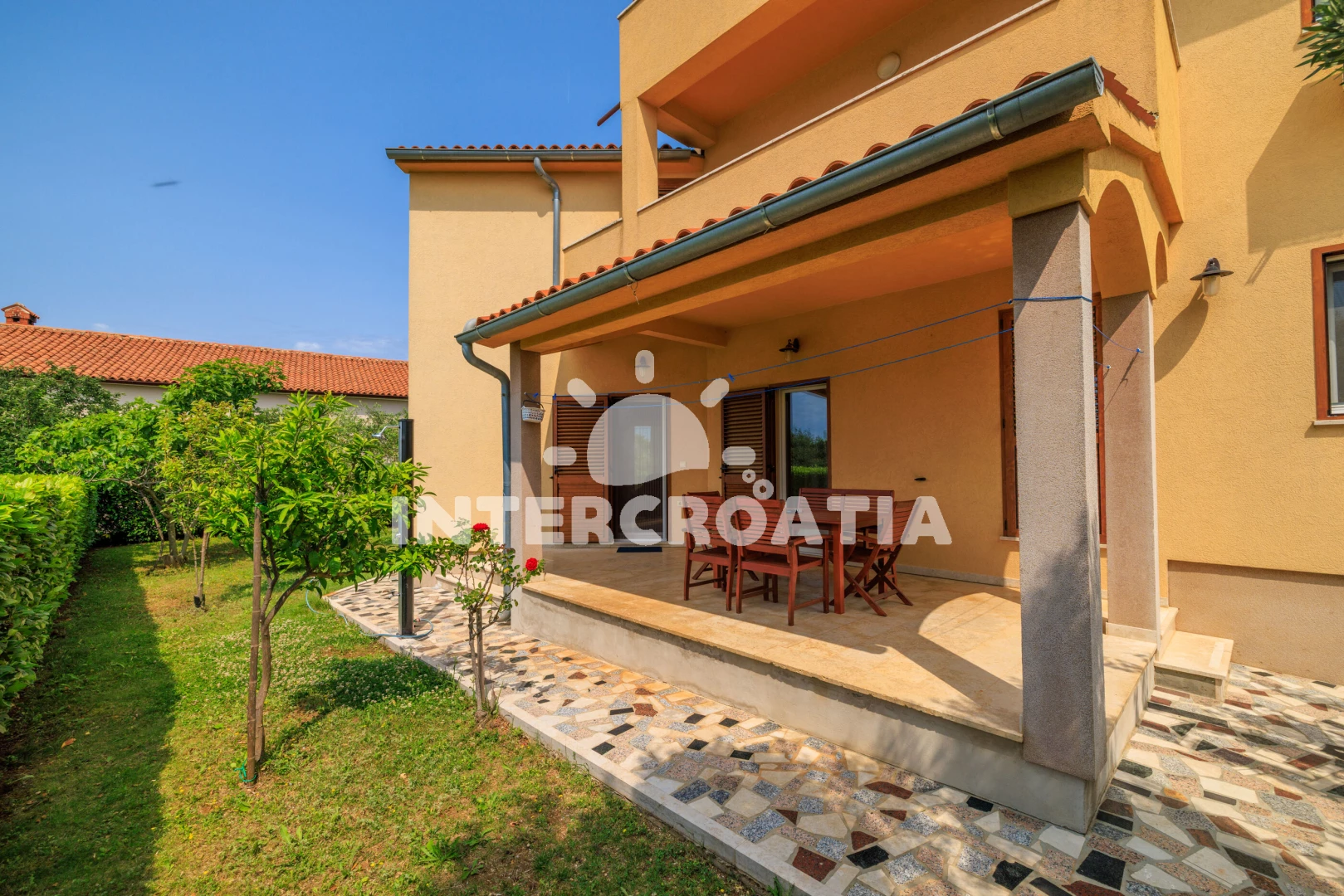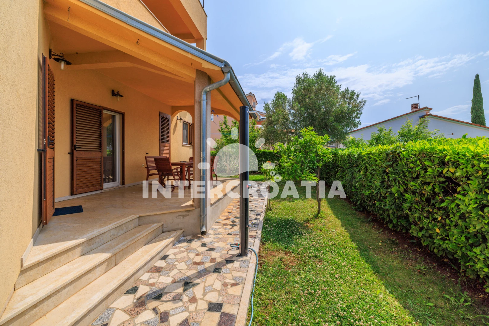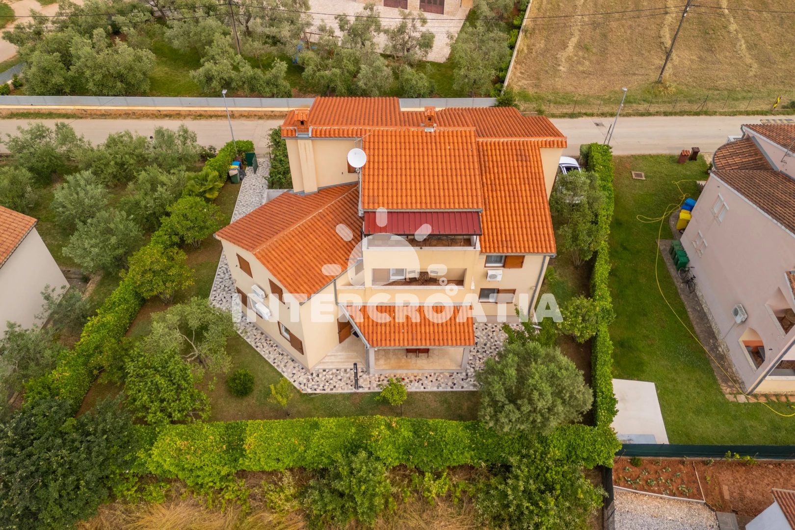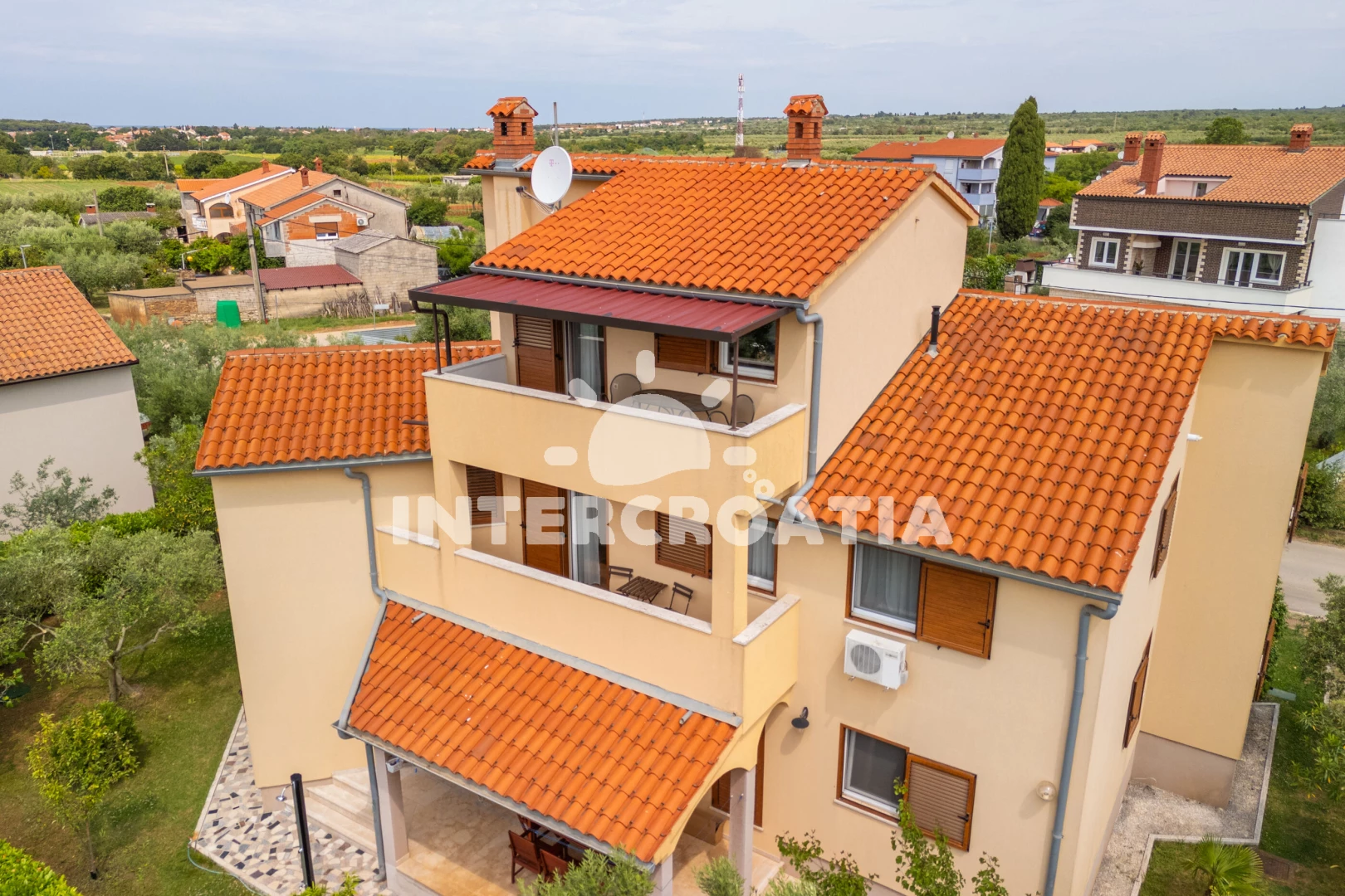 Vzdálenosti: Moře 1 km, pláž 1,2 km (oblázky), supermarket 400 m, restaurace 500 m, bar 1,2 km, centrum 1,5 km, lékárna 1,5 km, banka 2 km, pošta 2 km, ambulance 2 km, čerpací stanice 2 km, letiště 12 km,