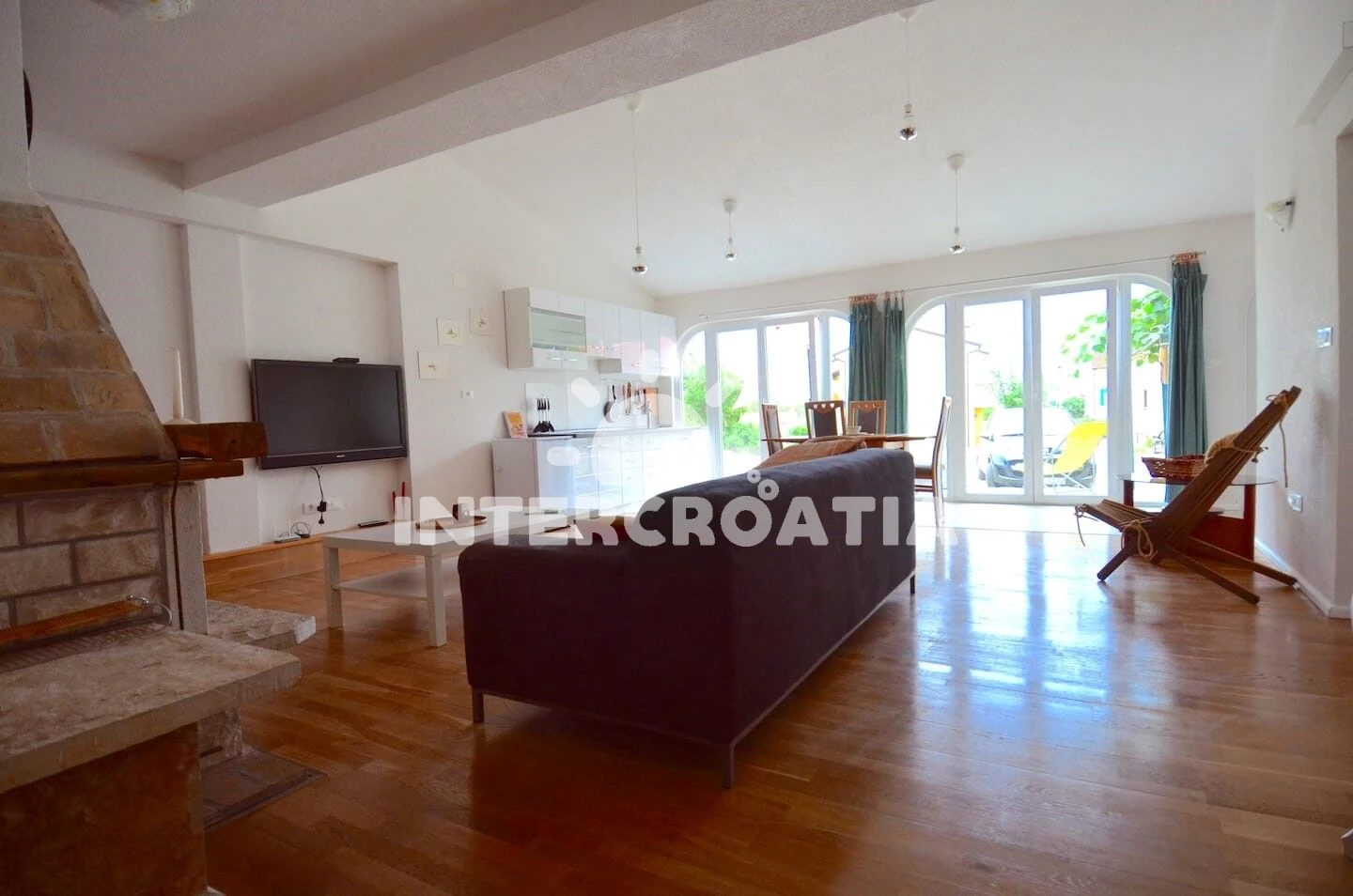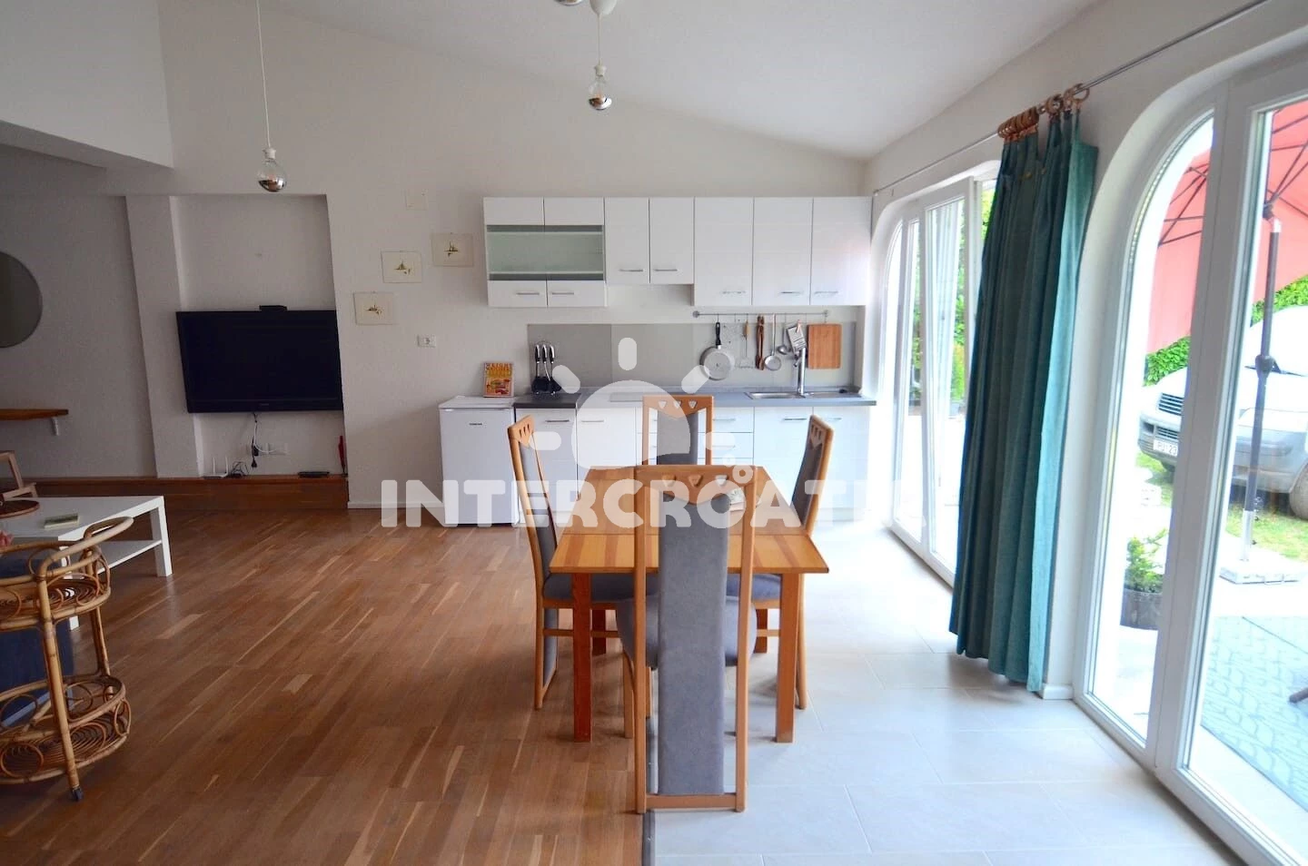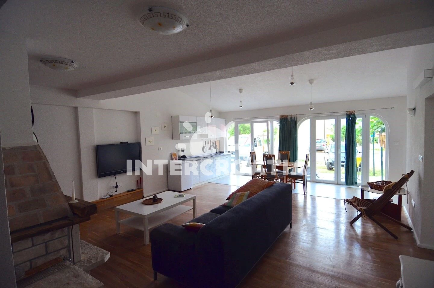Apartmán se nachází 2000 m od moře a pláže. Pláž je skalnatá, oblázková, větší kamení a betonové desky. Parkování je před domem.