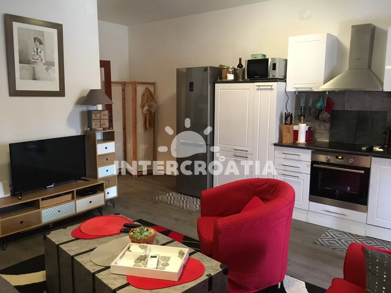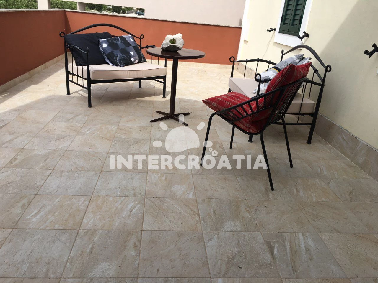 Apartmán (50 m2) s balkonem, s terasou, a výhledem na moře. Apartmán má 1 ložnici a je vhodný pro až 3 osoby. Kuchyňská linka je vybavena varnou deskou, toustovačem, kávovarem, troubou, myčkou na nádobí, mikrovlnnou troubou, rychlovarnou konvicí, nádobím, lednicí, mini lednicí, mrazákem. V obývací místnosti je rozložitelná pohovka (extra lůžko pro 1 osobu). K dispozici televize se satelitním programem. Ložnice s dvoulůžkem. Koupelna se sprchovým koutem, umyvadlem, fénem a WC. Hostům je k dispozici parkování u objektu zdarma.