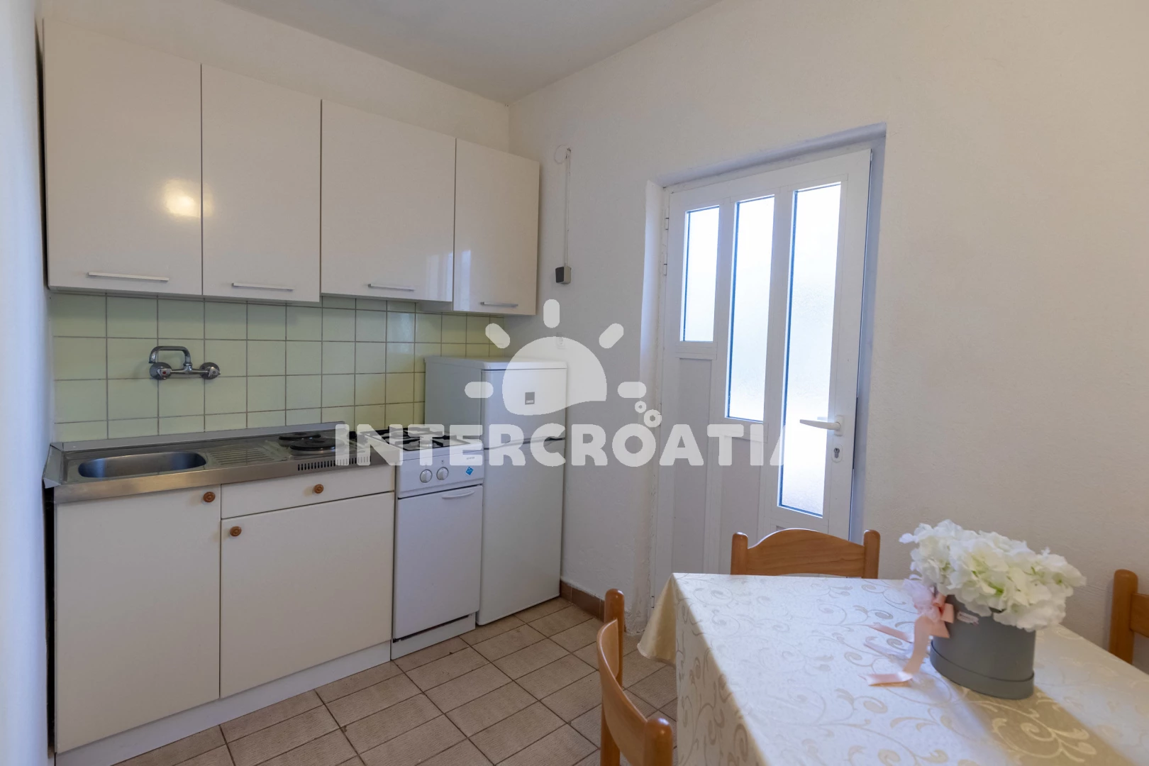 Apartmán se nachází 30 m od moře a pláže. Pláž je oblázková. U objektu je k dispozici společná zahrada s posezením a grilem. Parkování je před domem.