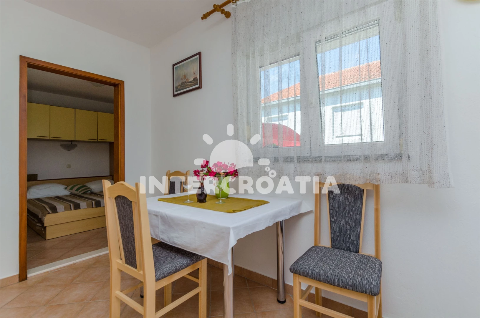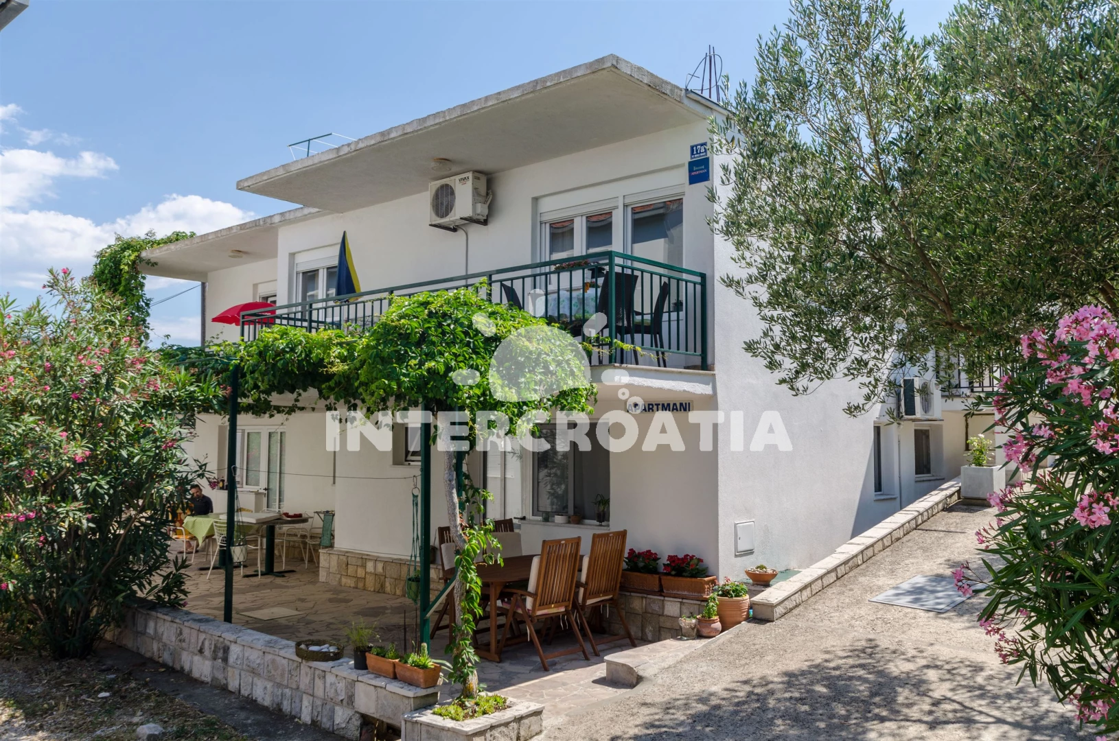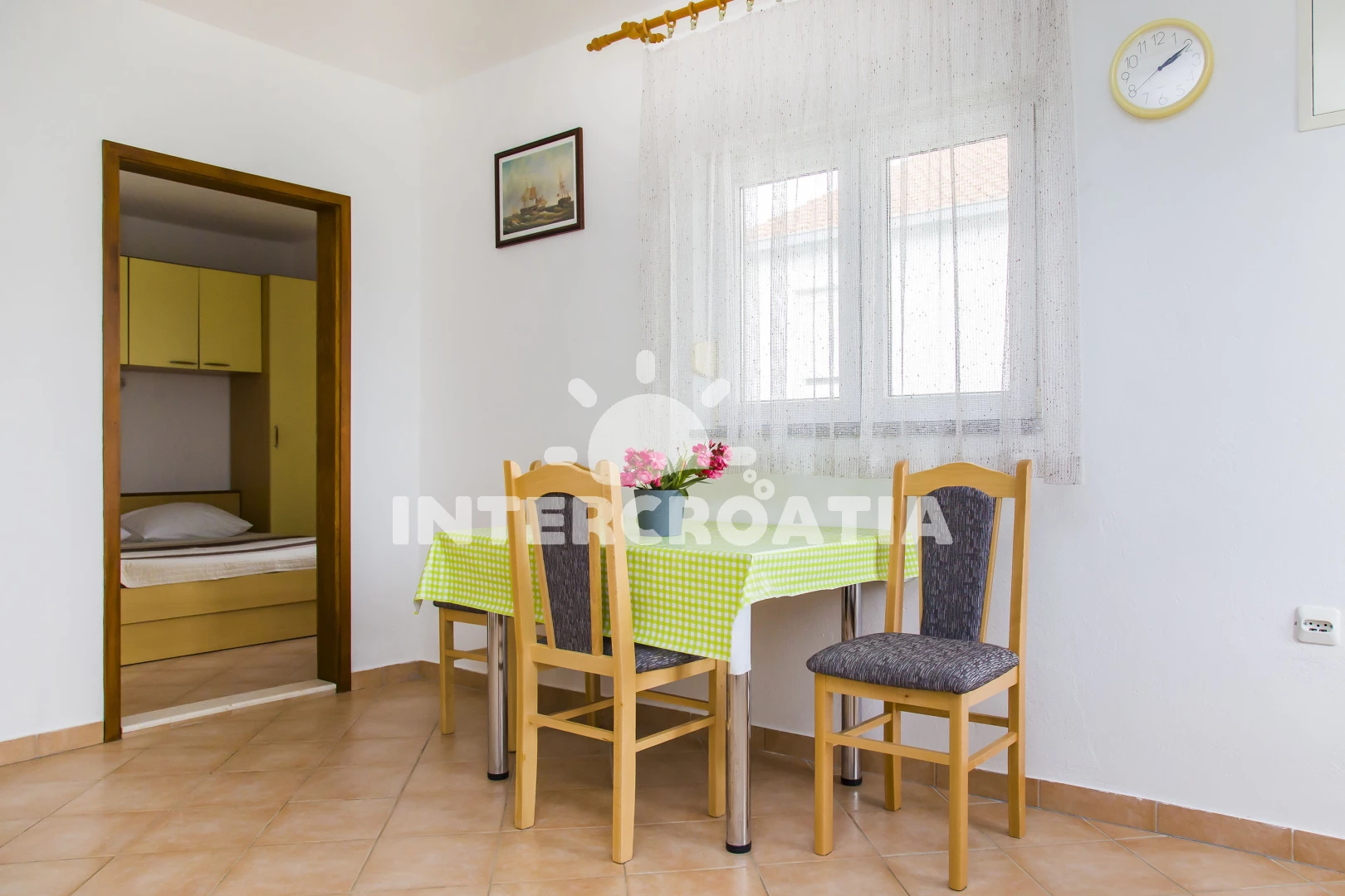 Apartmán se nachází 70 m od moře a pláže. Pláž je oblázková a betonové desky. U objektu je k dispozici společná zahrada s posezením a grilem. Parkování je 150m - 300 m od domu.