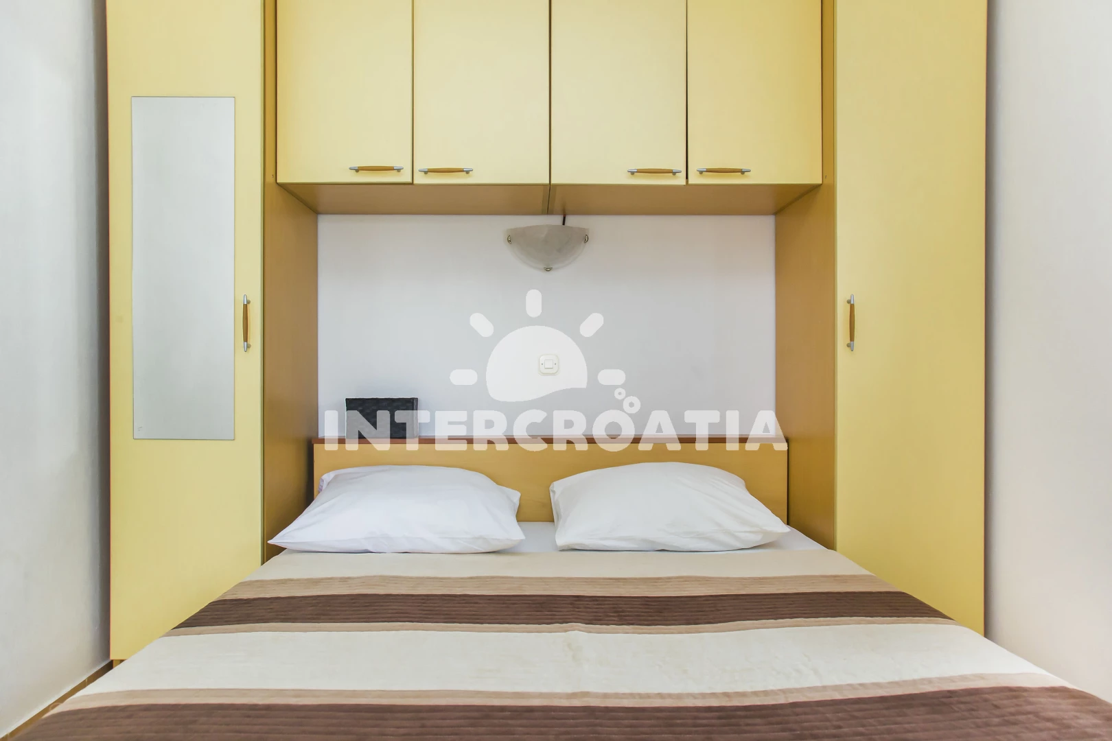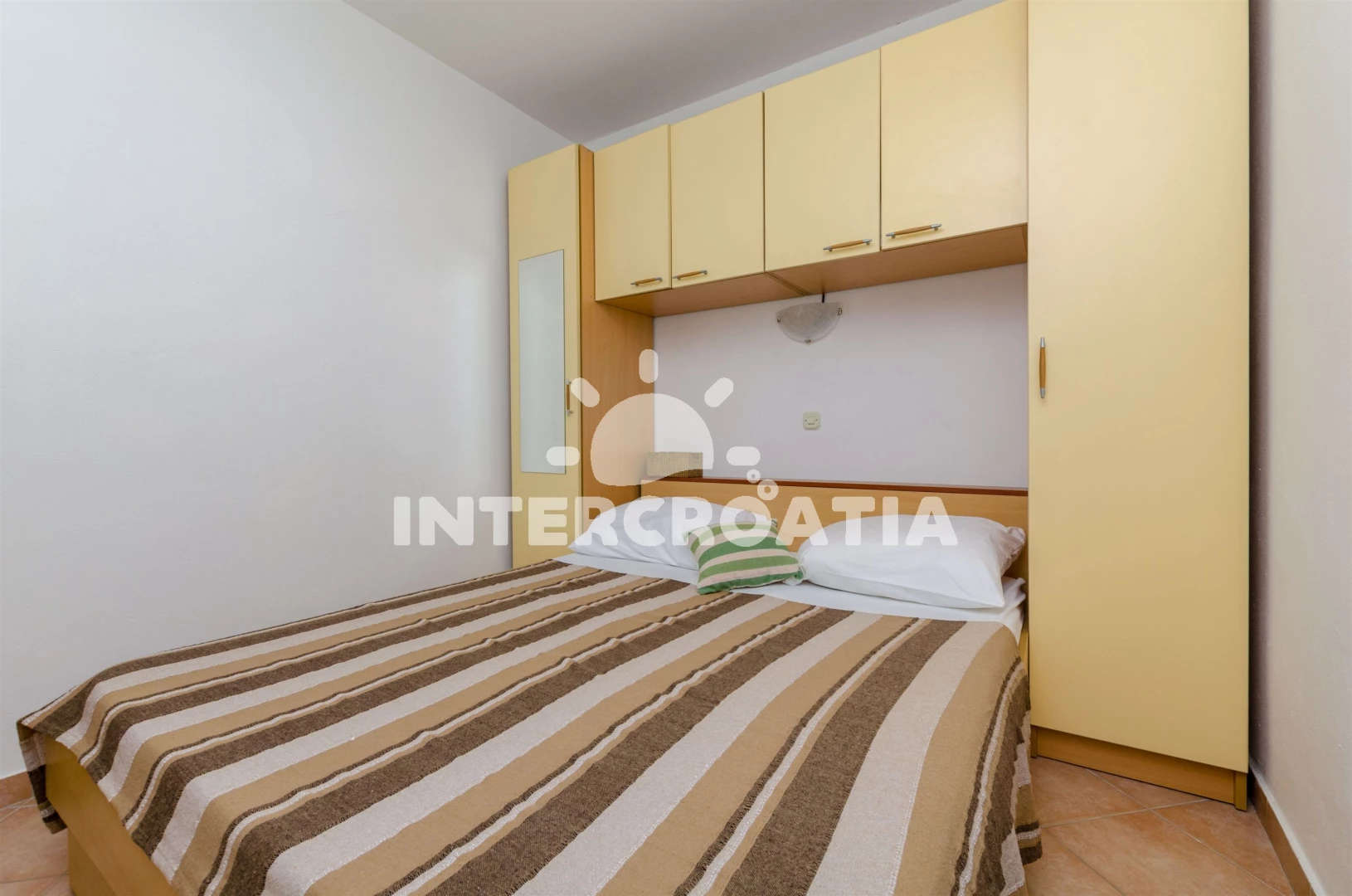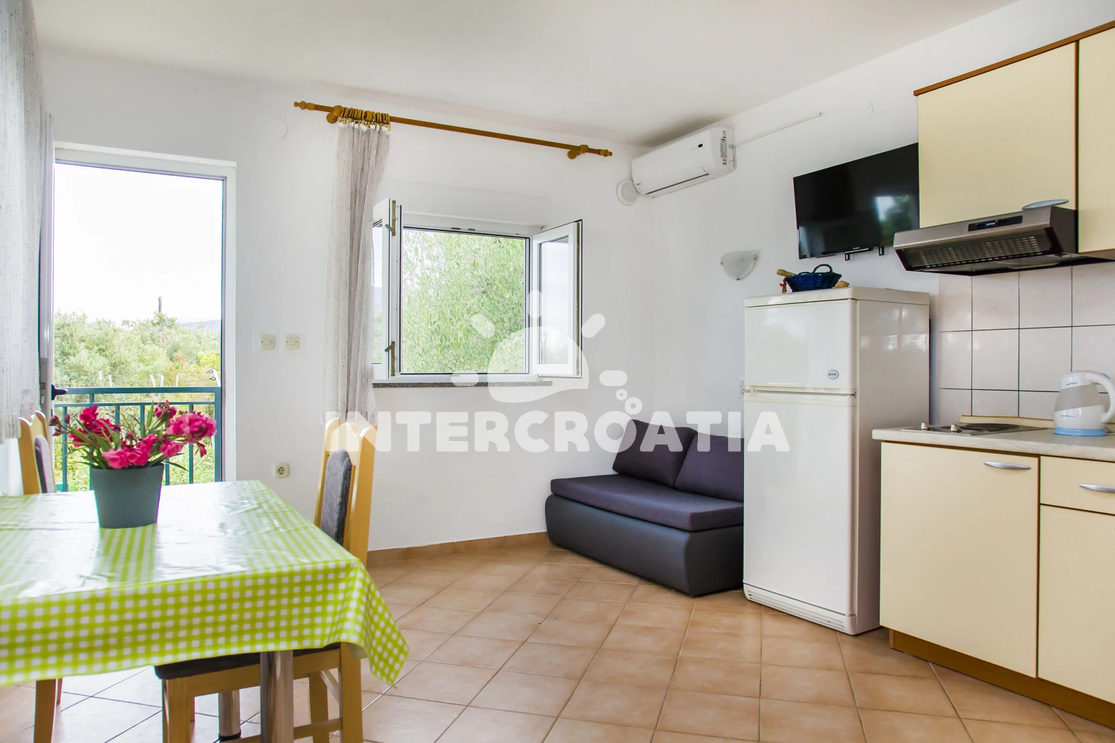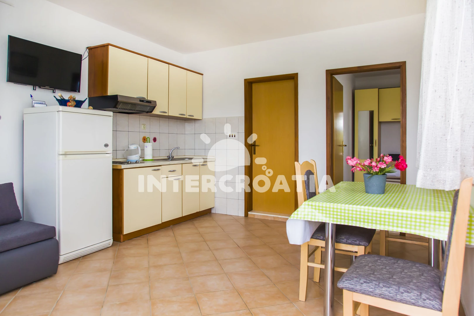 Apartmán (28 m2) s terasou, a výhledem na moře. Nachází se v 1. patře objektu. Apartmán má 1 ložnici a je vhodný pro až 3 osoby. Kuchyňská linka je vybavena varnou deskou, nádobím, lednicí, mrazákem.…