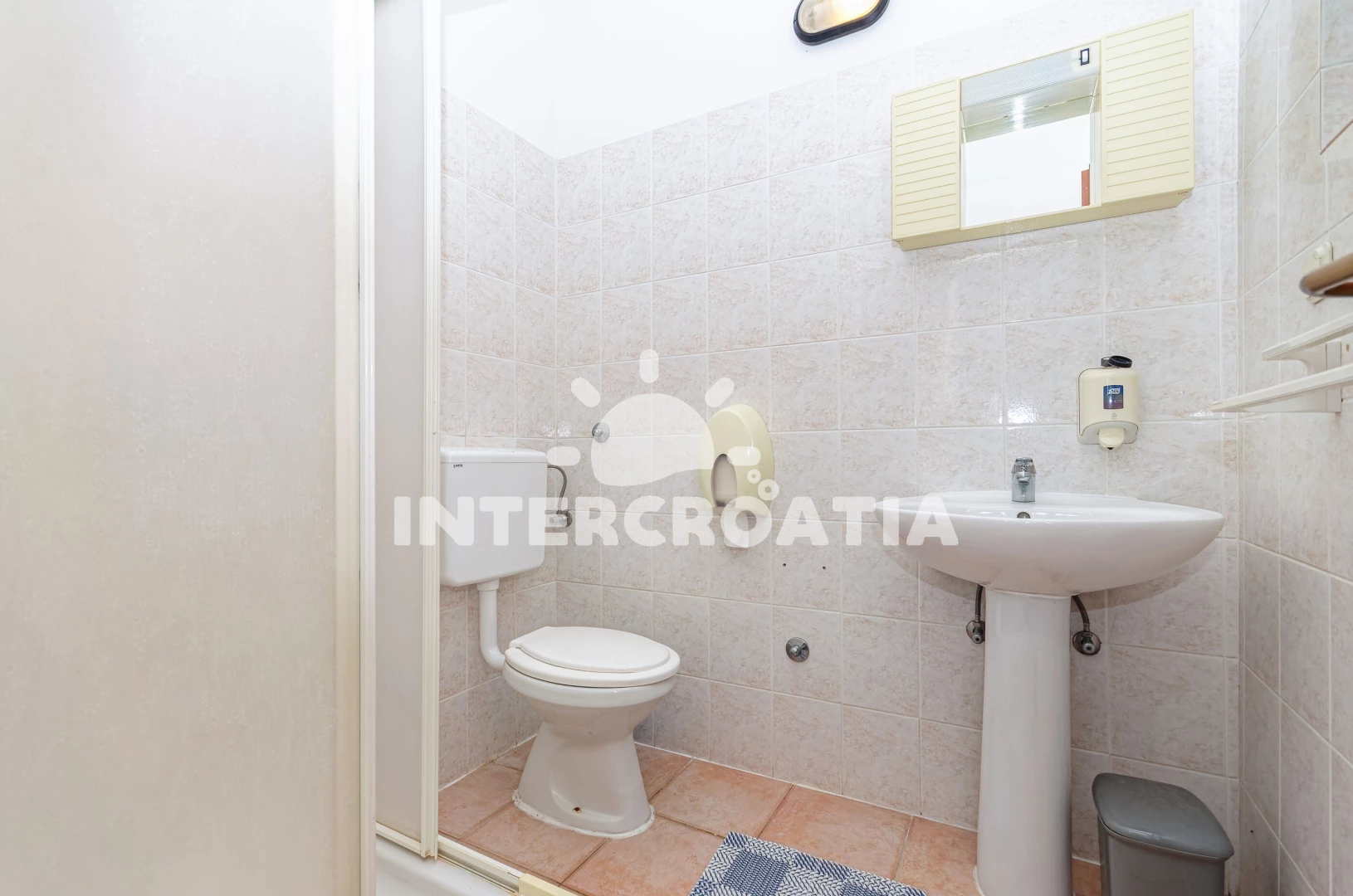 Apartmán se nachází 150 m od moře a pláže. Pláž je oblázková a betonové desky. U objektu je k dispozici společná zahrada s posezením a grilem. Parkování je před domem.