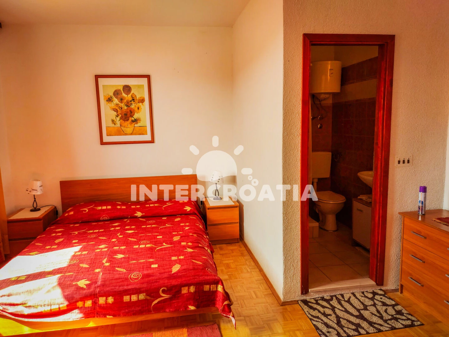 Apartmán se nachází 100 m od moře a pláže. Pláž je oblázková.