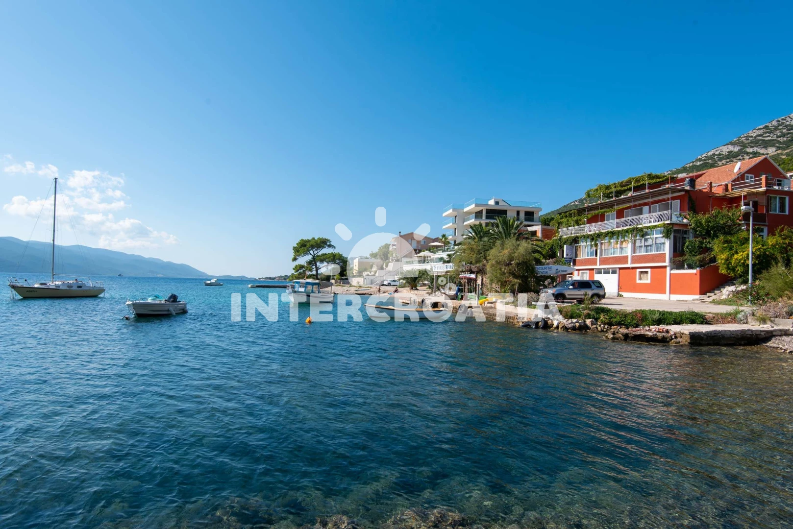 Vzdálenosti: Moře 10 m, restaurace 2 m, pláž 10 m (oblázková a betonové desky), bar 2 m, směnárna 200 m, supermarket 200 m, centrum 300 m, lékárna 3 km, banka 3 km, trajekt (Orebić) 3 km, marina 3 km, pošta 3 km, půjčovna kol 3 km, ambulance 3 km, muzeum 3 km, tenisové kurty 4 km, čerpací stanice 5 km, mini golf 5 km, diskotéka 5 km, letiště (Dubrovnik) 135 km,