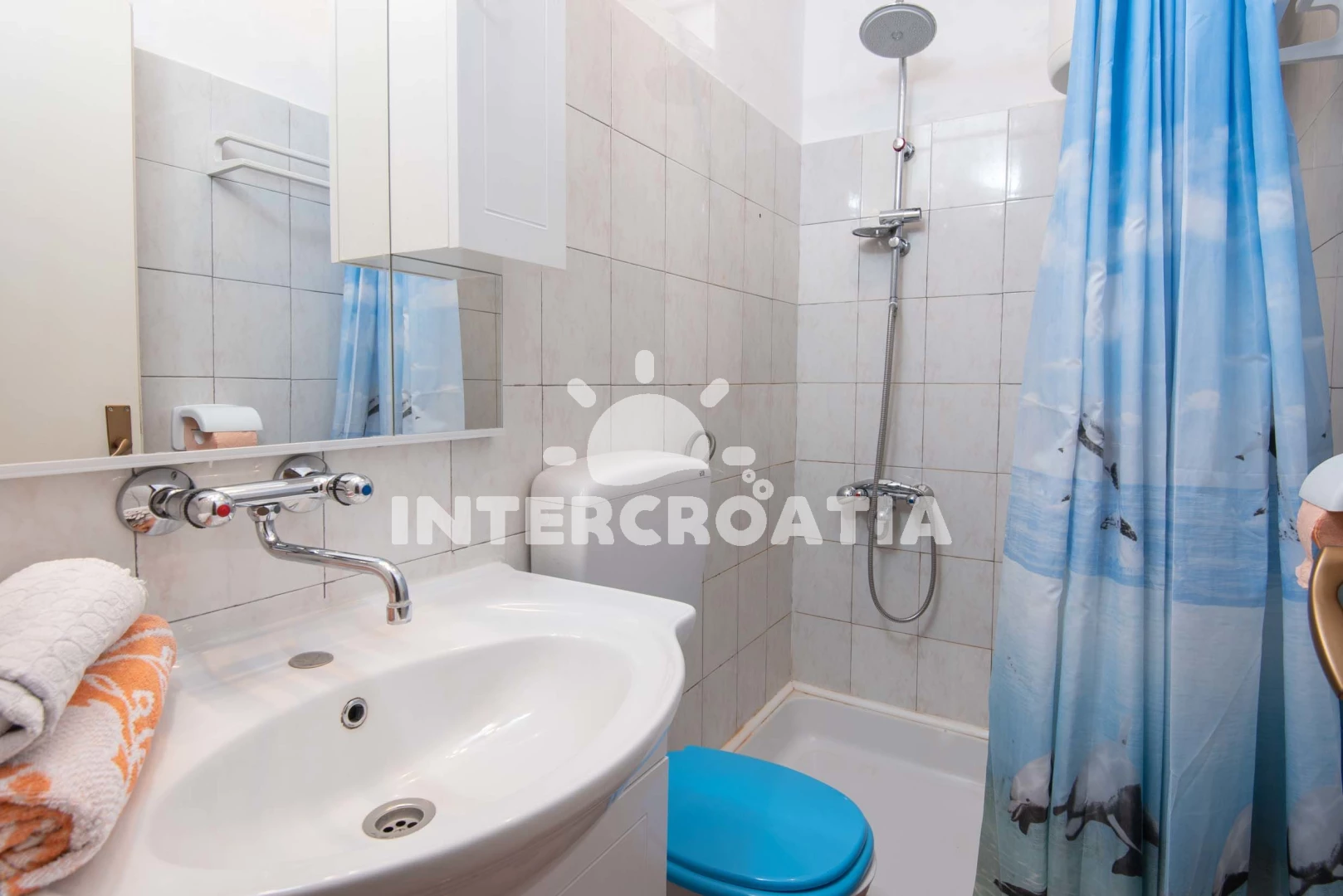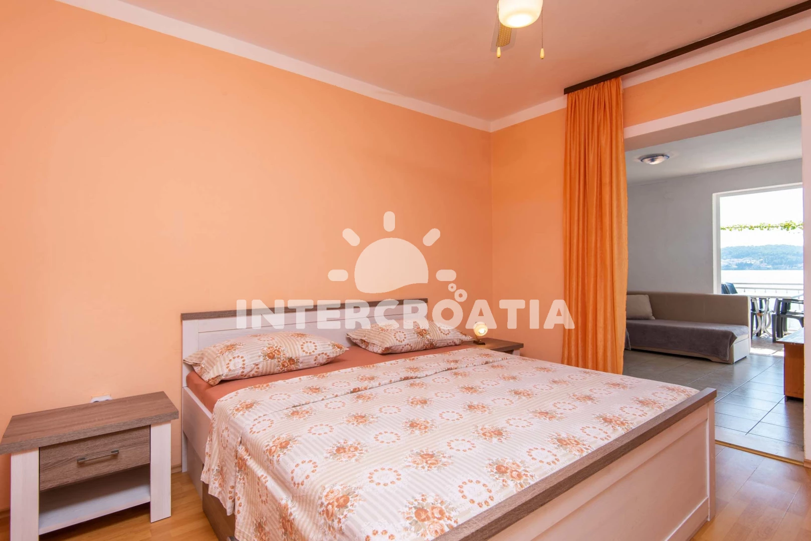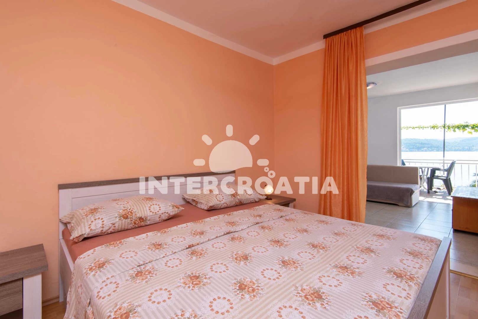 Apartmán (60 m2) s terasou, a výhledem na moře. Nachází se v 1. patře objektu. Apartmán má 2 ložnice a je vhodný pro až 6 osob. Kuchyňská linka je vybavena varnou deskou, troubou, rychlovarnou…