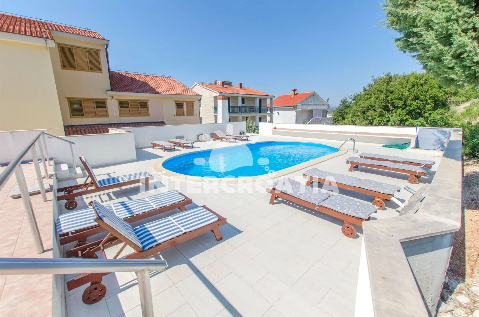 Apartmánový dům s vlastním zapuštěným bazénem, saunou a parkováním zdarma u objektu.