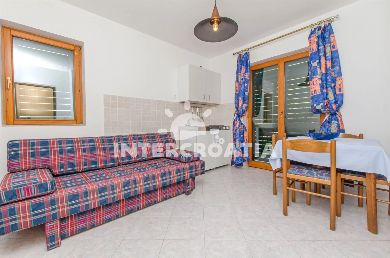 Apartmán (35 m2) v přízemí nabízí ubytování pro 4 osoby a disponuje jednou ložnicí. Obytná místnost s jídelním stolem, pohovkou (rozložitelnou na 2 extra lůžka) a kuchyňským koutem s lednicí, kávovarem a nádobím. Ložnice s dvoulůžkem, šatní skříní a klimatizací. Koupelna se sprchou, umyvadlem a WC. K dispozici balkon s posezením. Dále k dispozici společný zapuštěný bazén. Parkování u objektu.