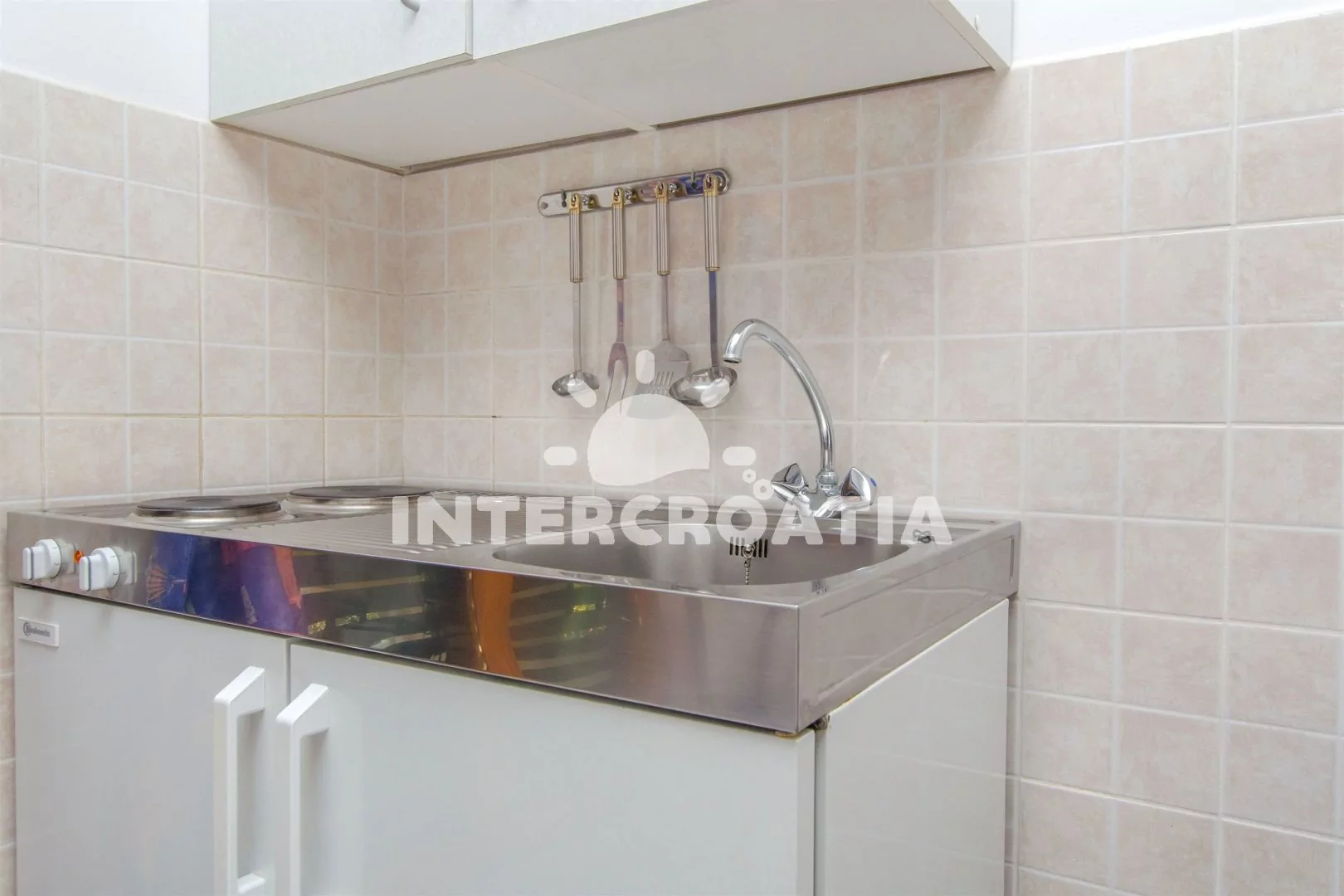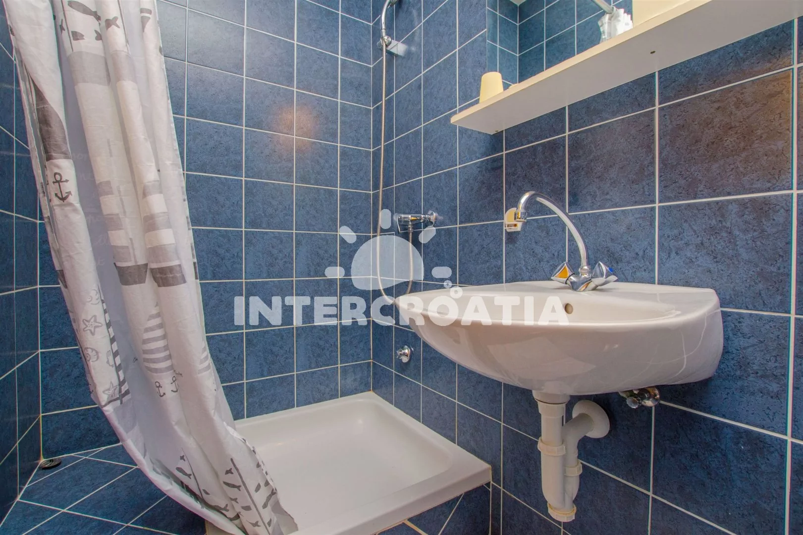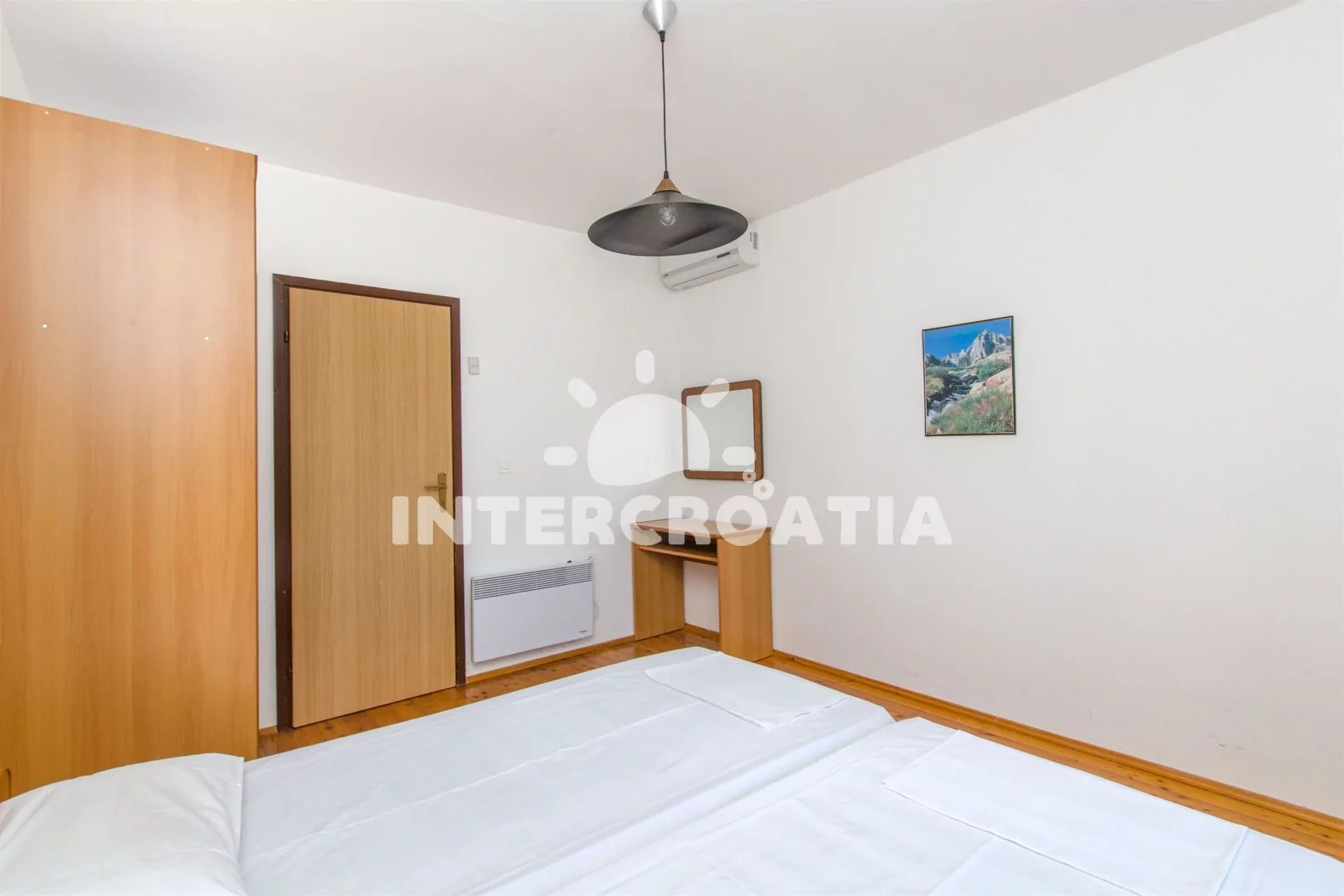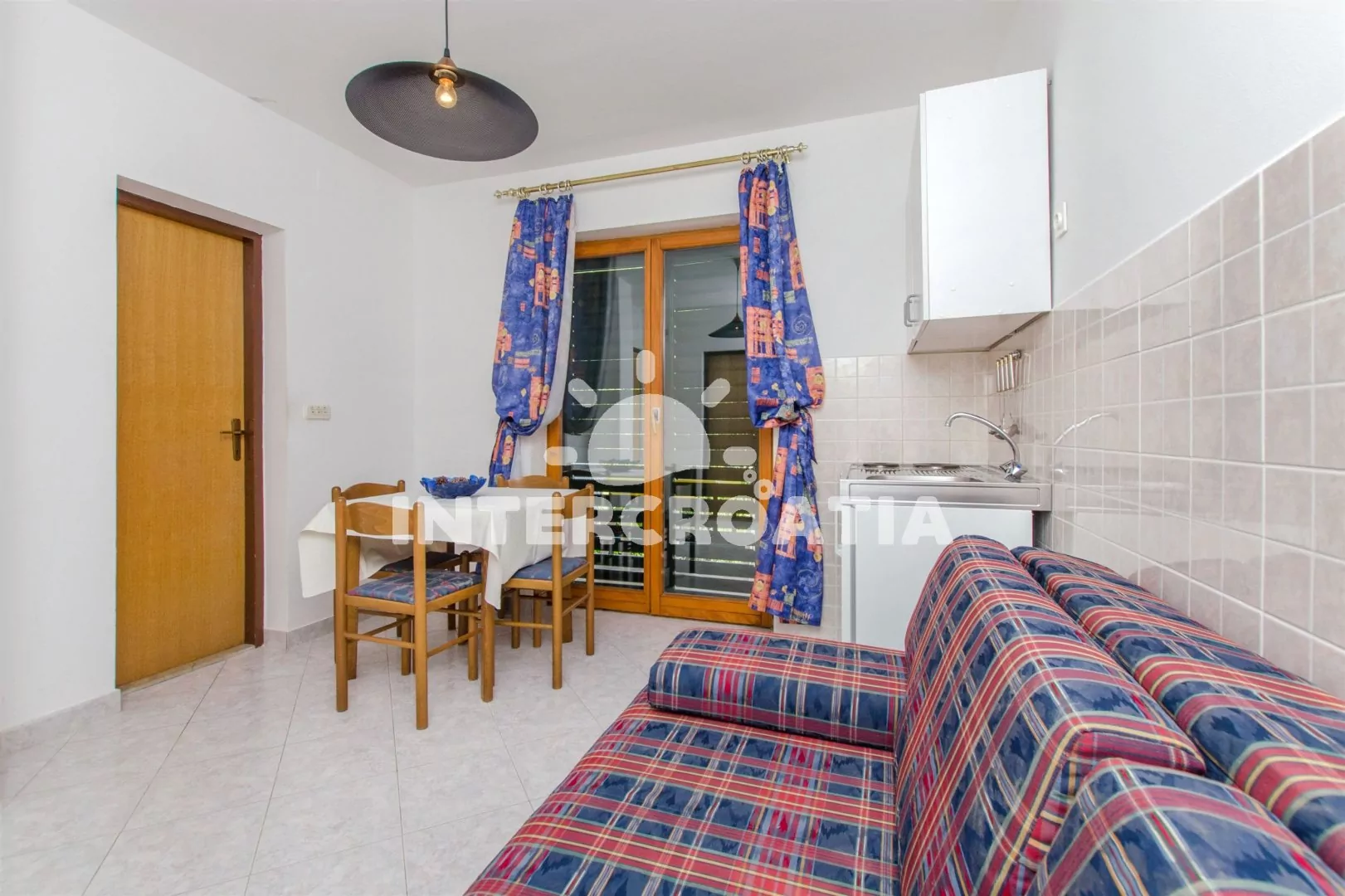 Apartmán (40 m2) v přízemí nabízí ubytování pro 4 osoby a disponuje jednou ložnicí. Obytná místnost s jídelním stolem, pohovkou (rozložitelnou na 2 extra lůžka) a kuchyňským koutem s lednicí, kávovarem a nádobím. Ložnice s dvoulůžkem, šatní skříní a klimatizací. Koupelna se sprchou, umyvadlem a WC. K dispozici balkon (10m2) s posezením. Dále k dispozici společný zapuštěný bazén. Parkování u objektu.