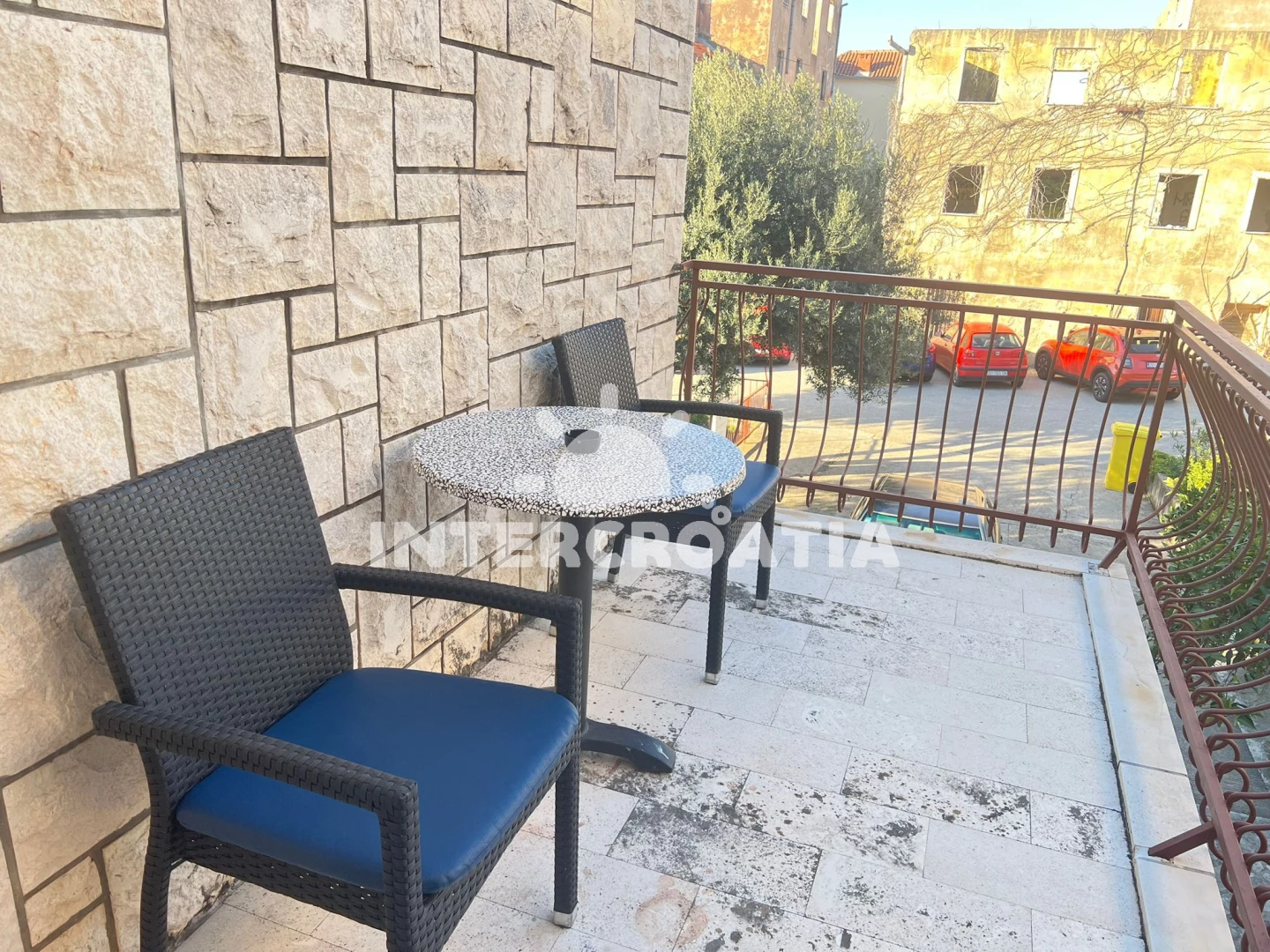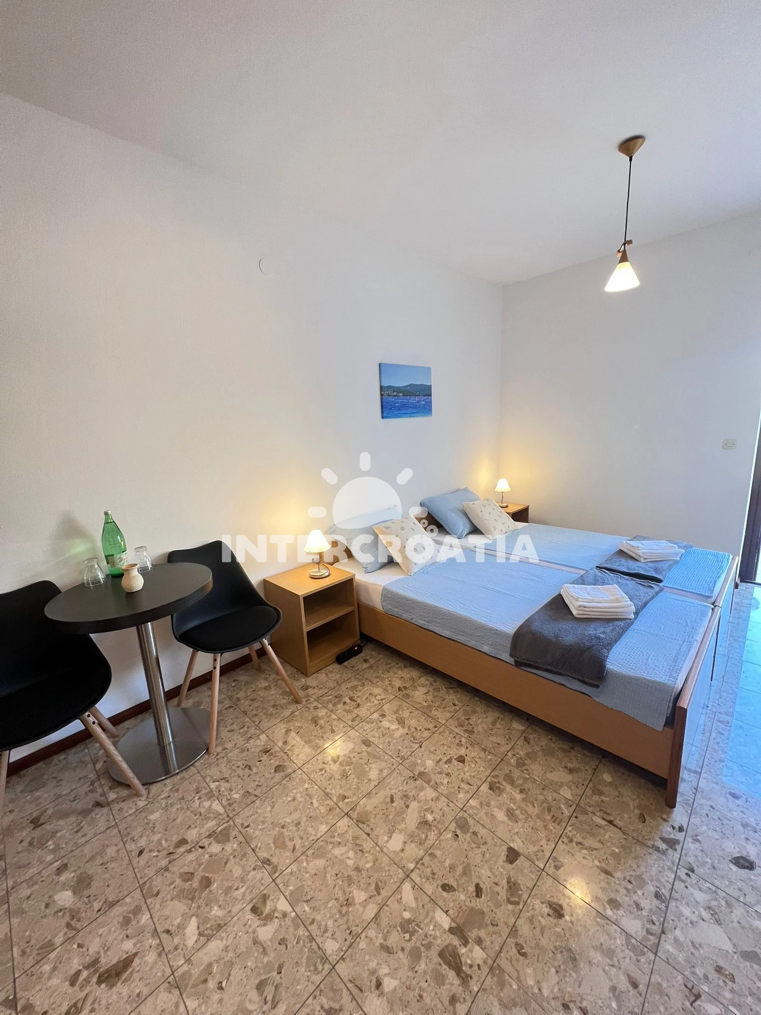 Vzdálenosti: centrum 1 m, Moře 30 m, pláž 50 m (písčitá, oblázková a skalnatá), restaurace 15 m, supermarket 70 m, ambulance 150 m, veřejná doprava 200 m, trajekt 2 km, park Plitvice 80 km, letiště 130 km,